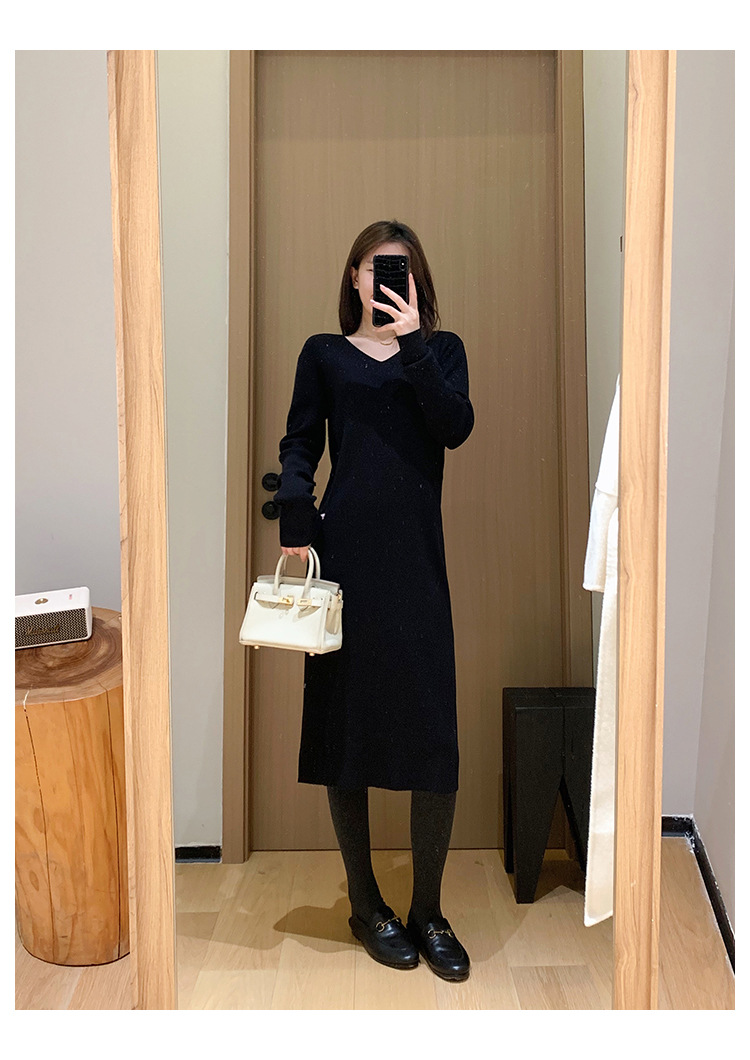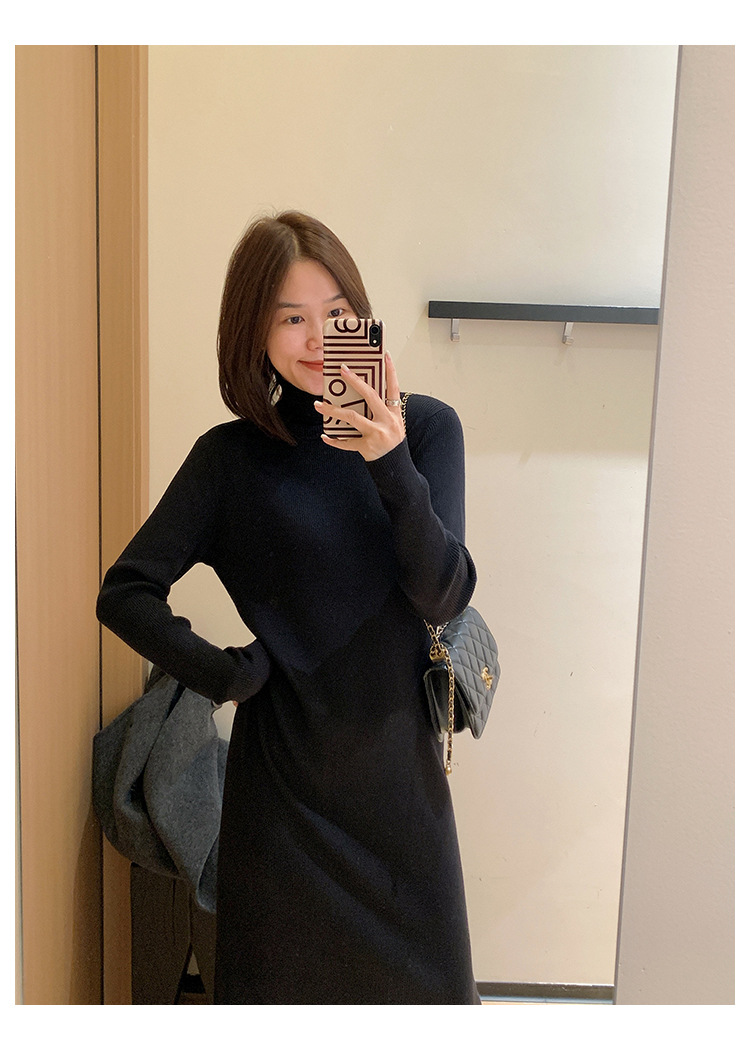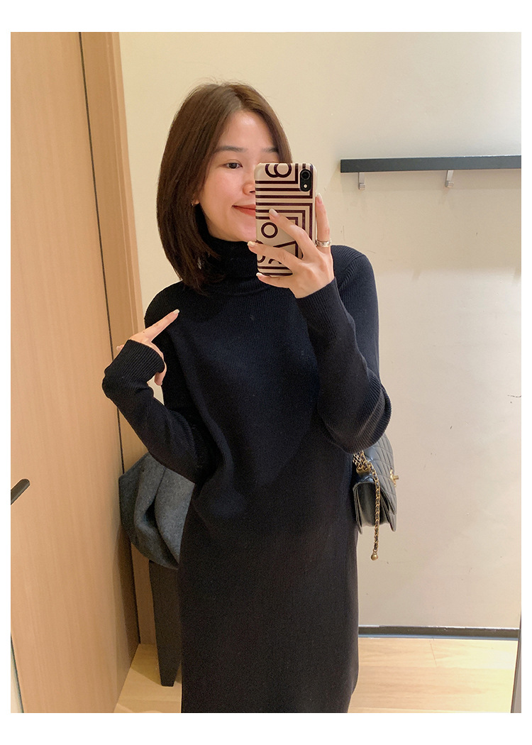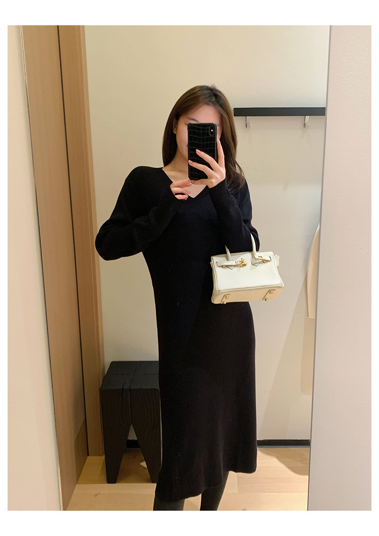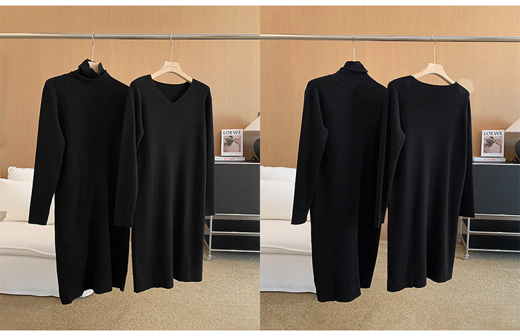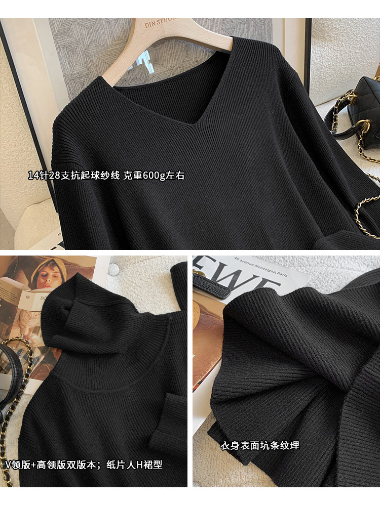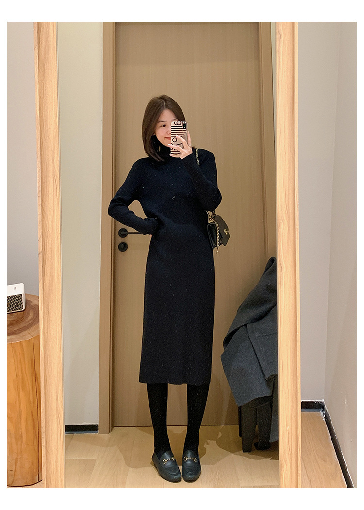 双领型28支抗起球显瘦坑条针织连衣裙!#