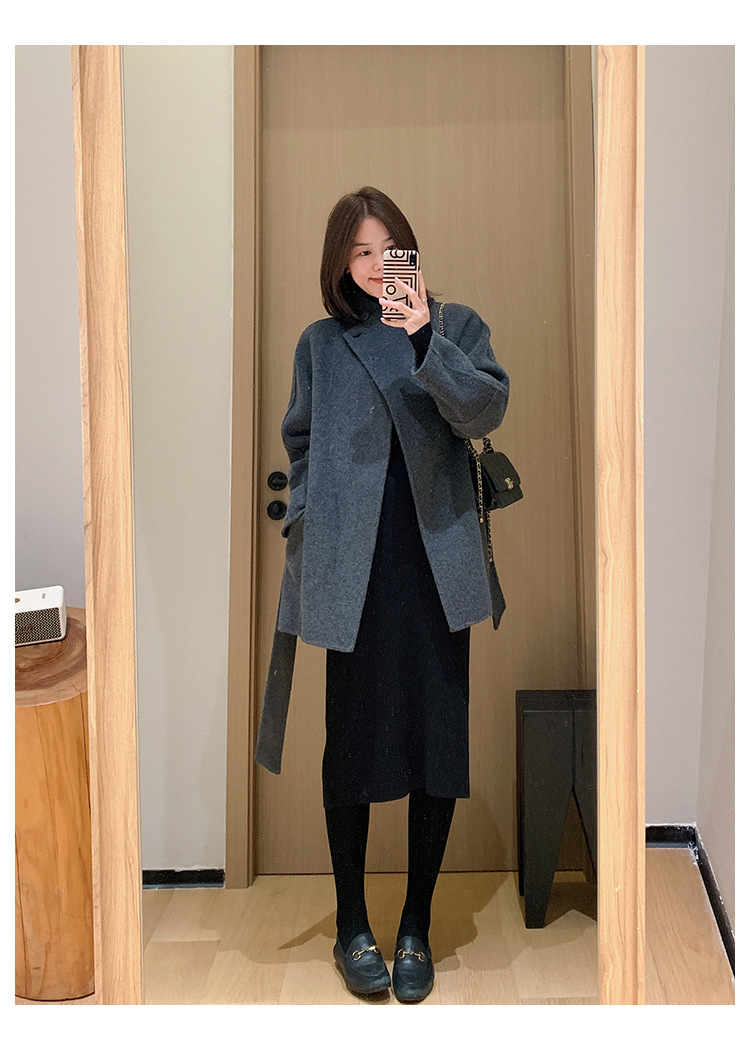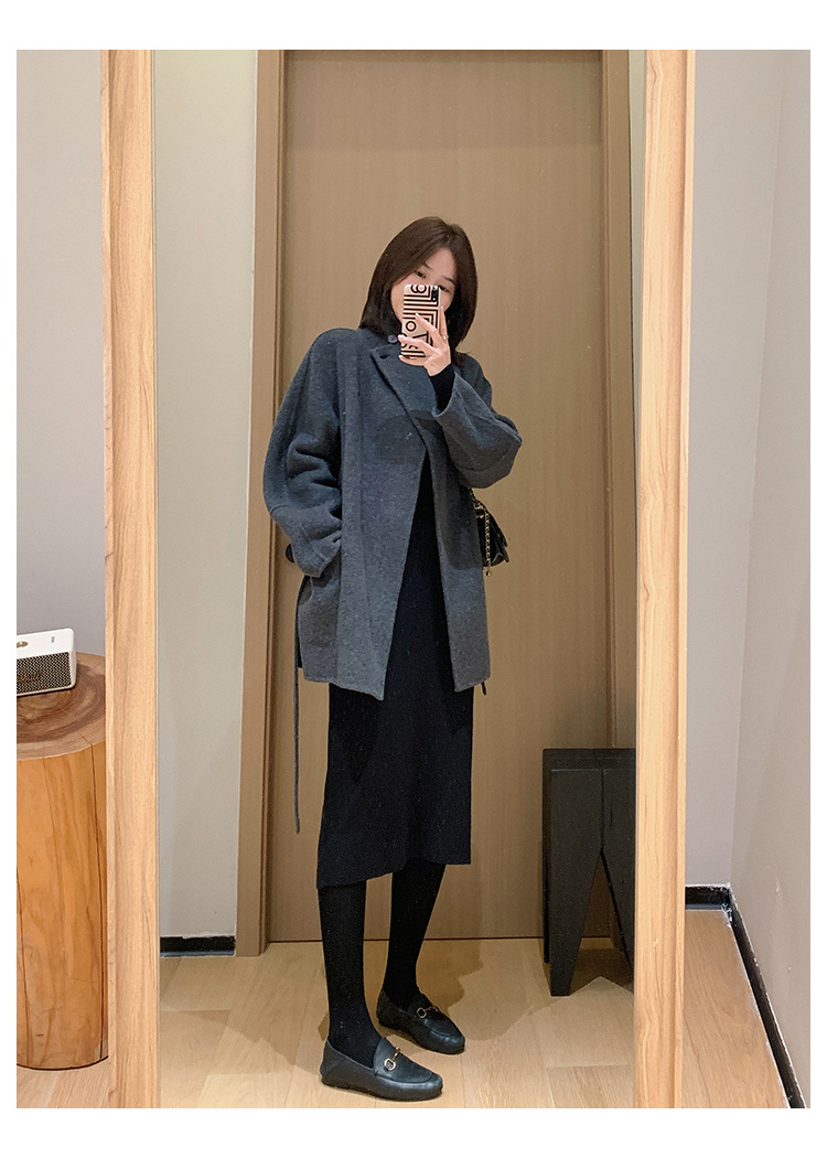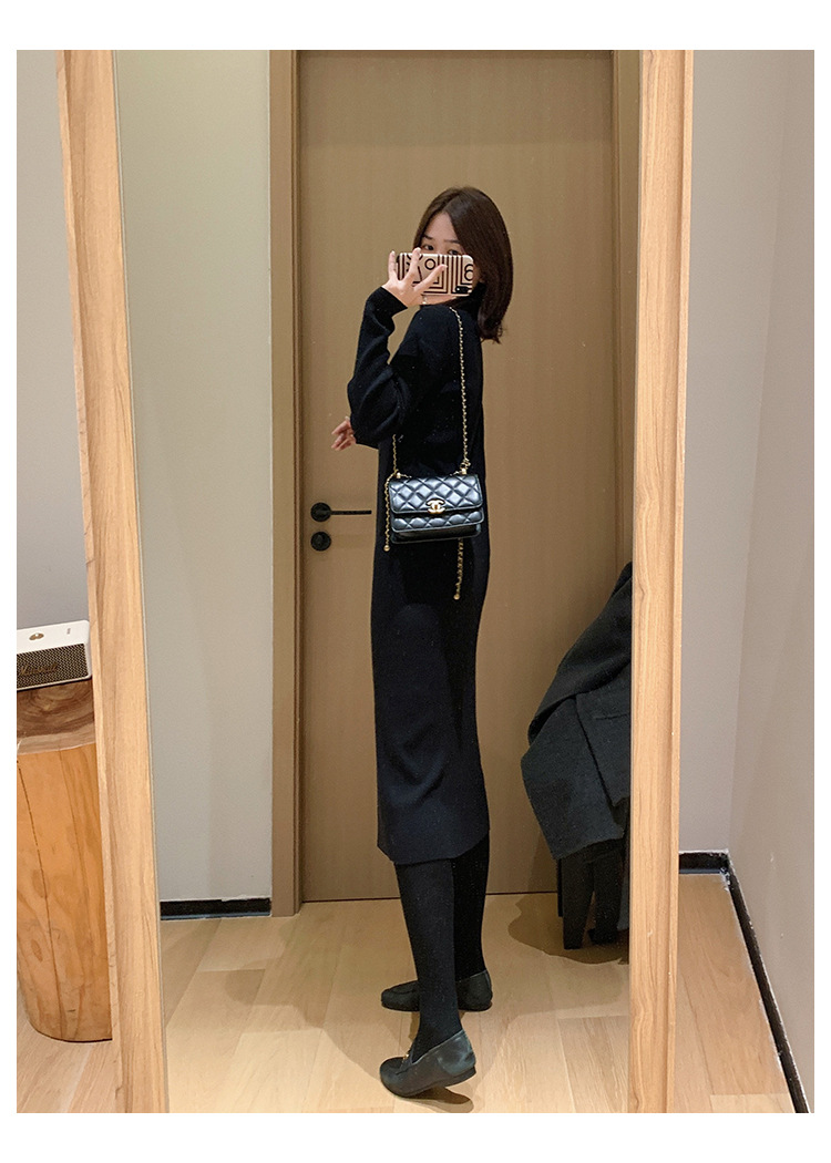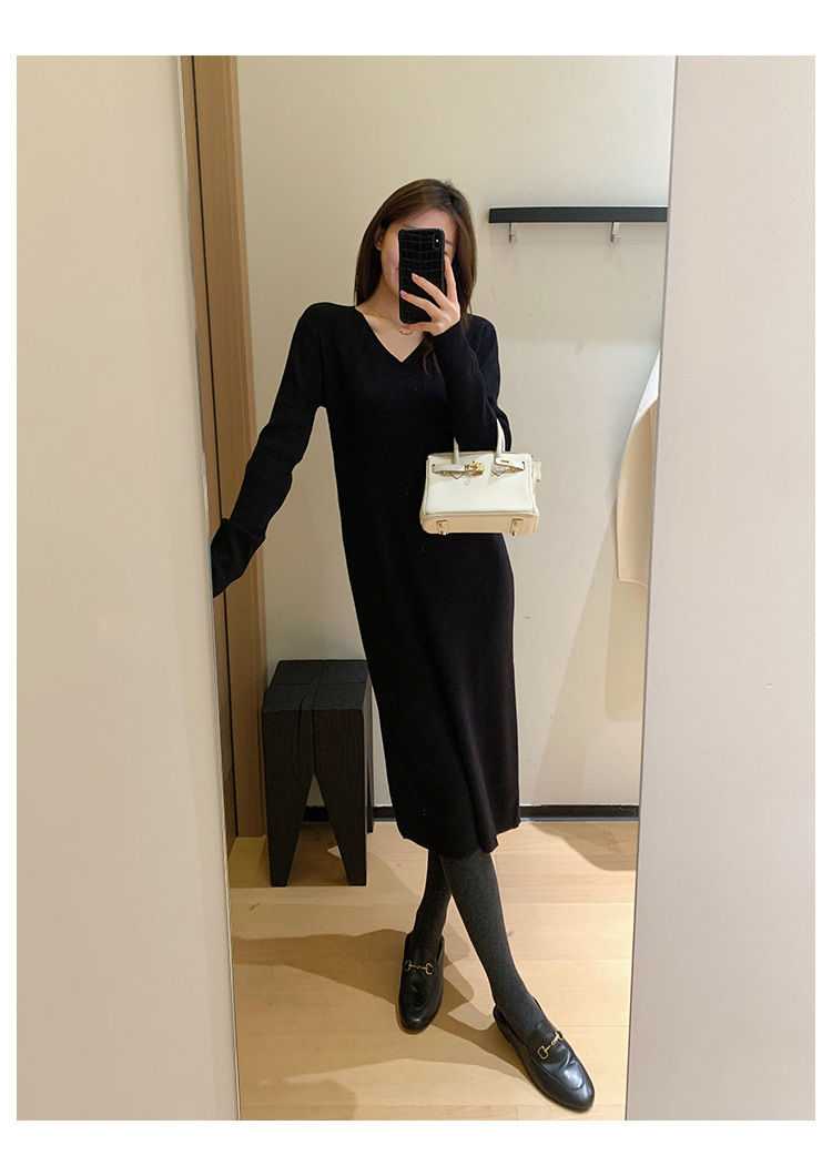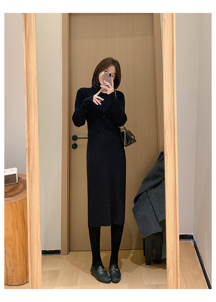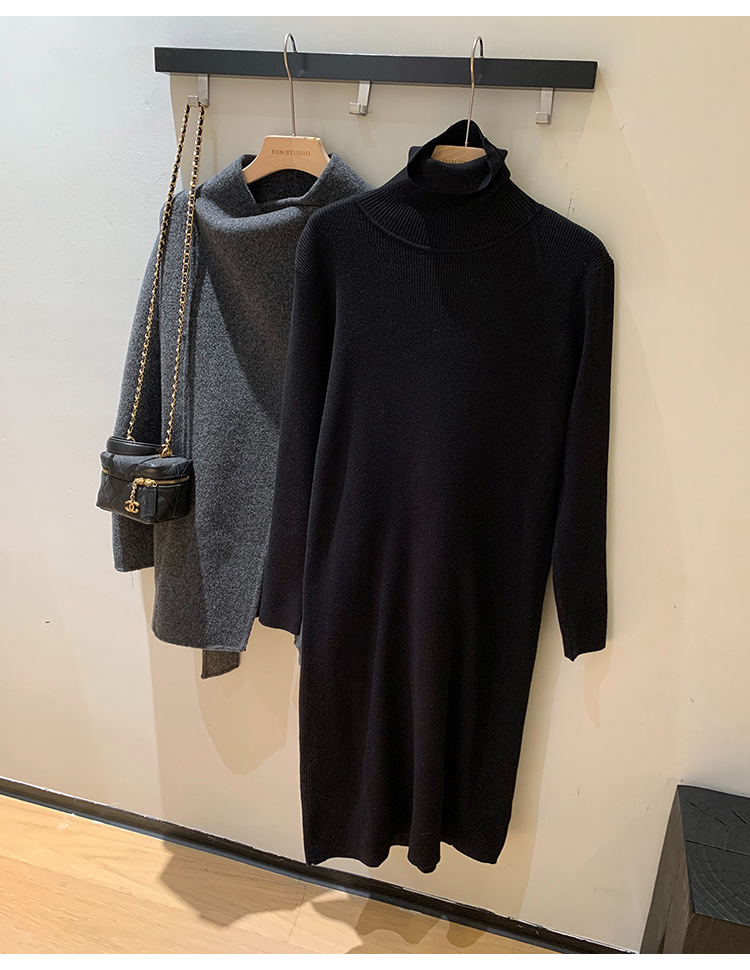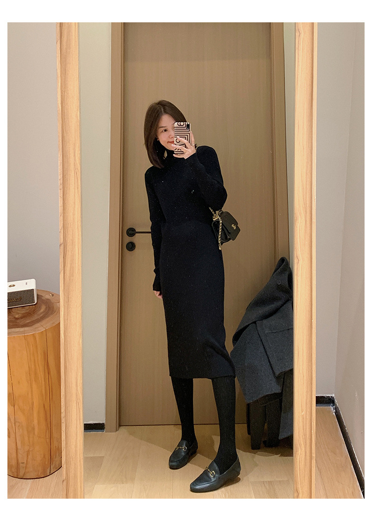 双领型28支抗起球显瘦坑条针织连衣裙!#