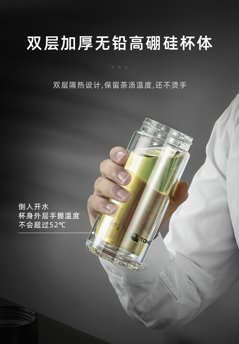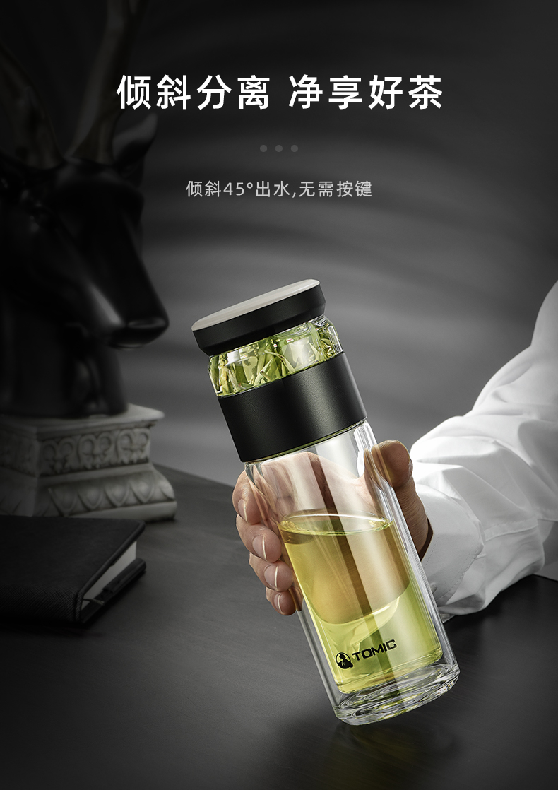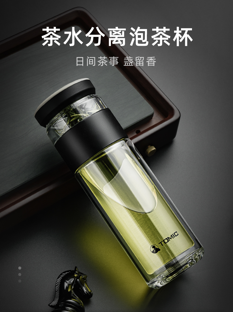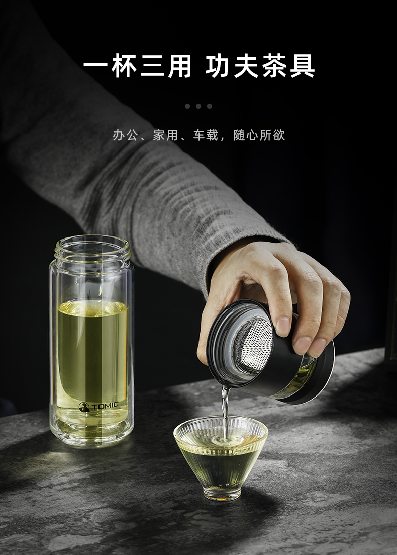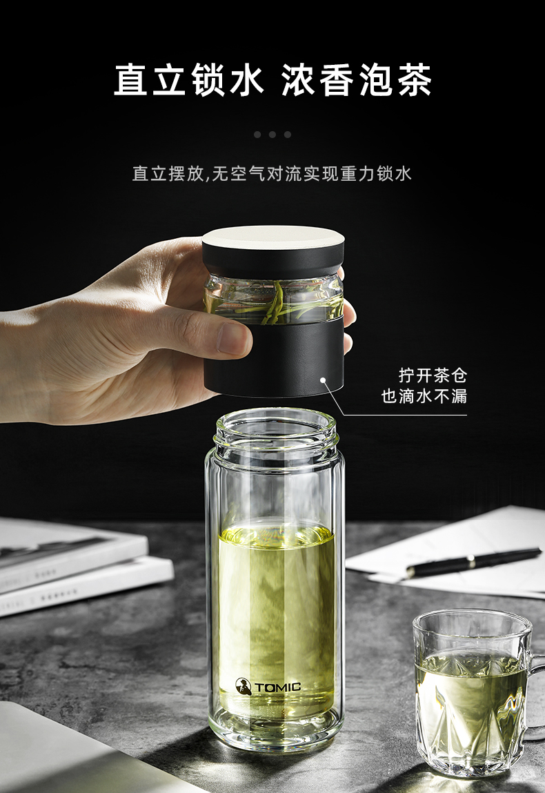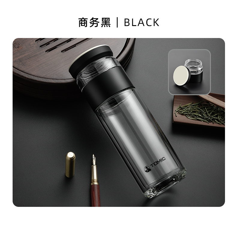 特美刻(TOMIC)玻璃杯茶水分离杯家用双层玻璃水杯便携商务办公泡茶杯 TG80703 黑色400ML