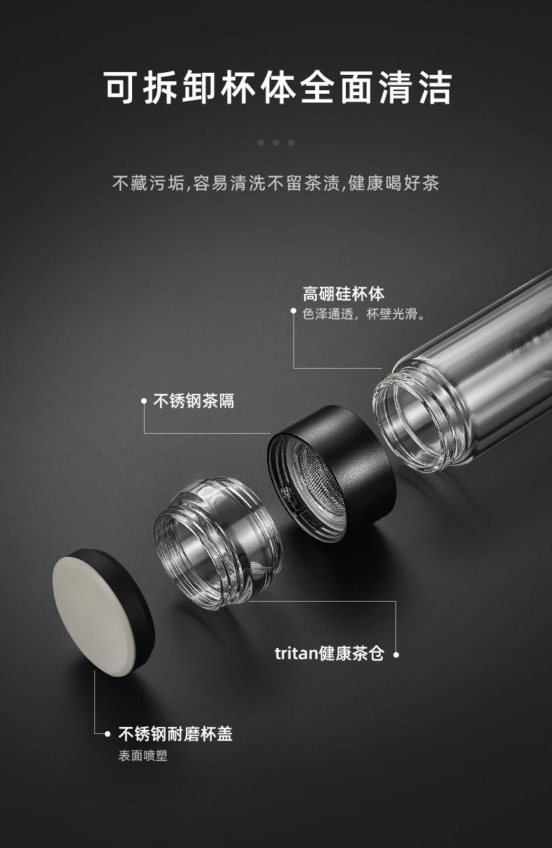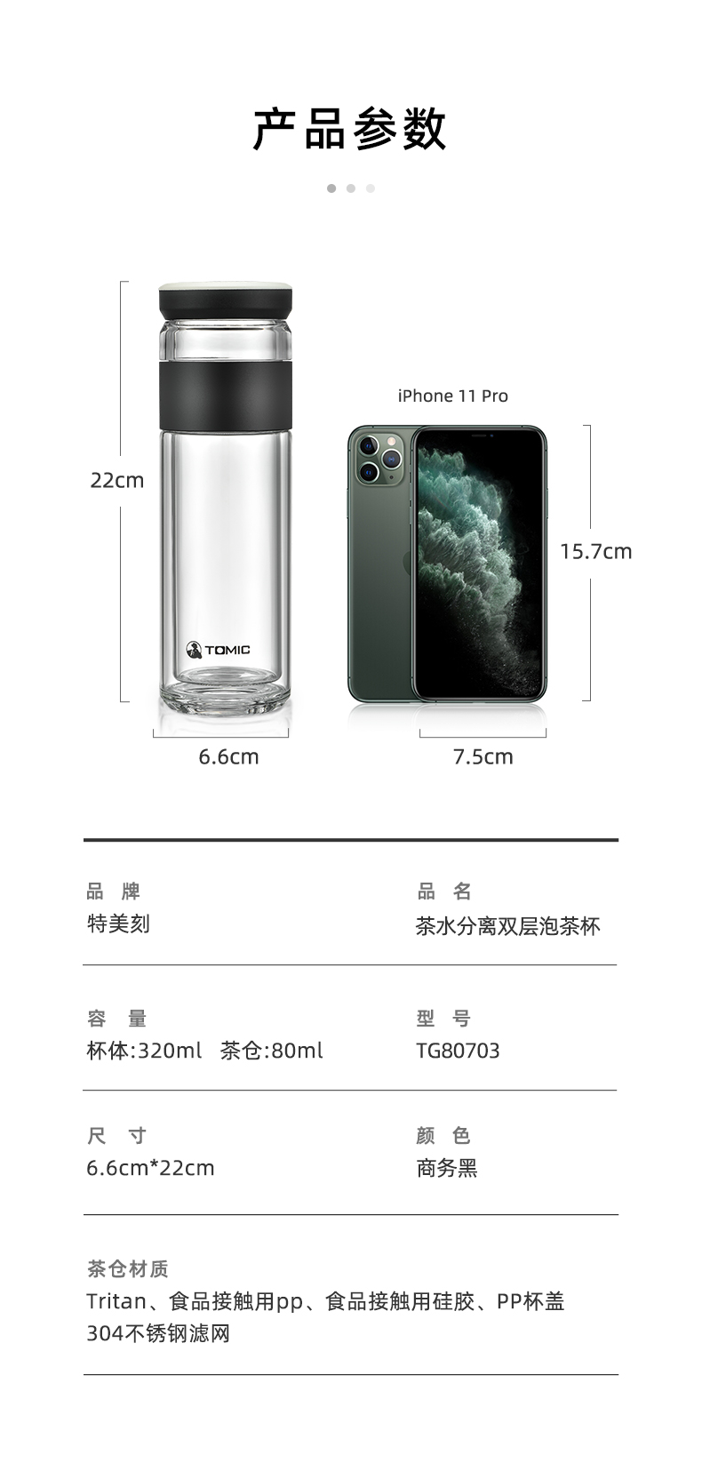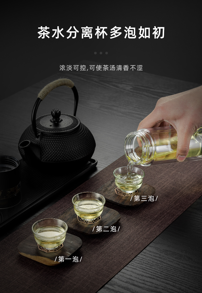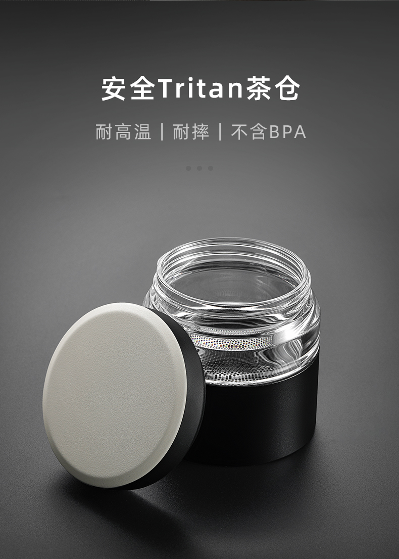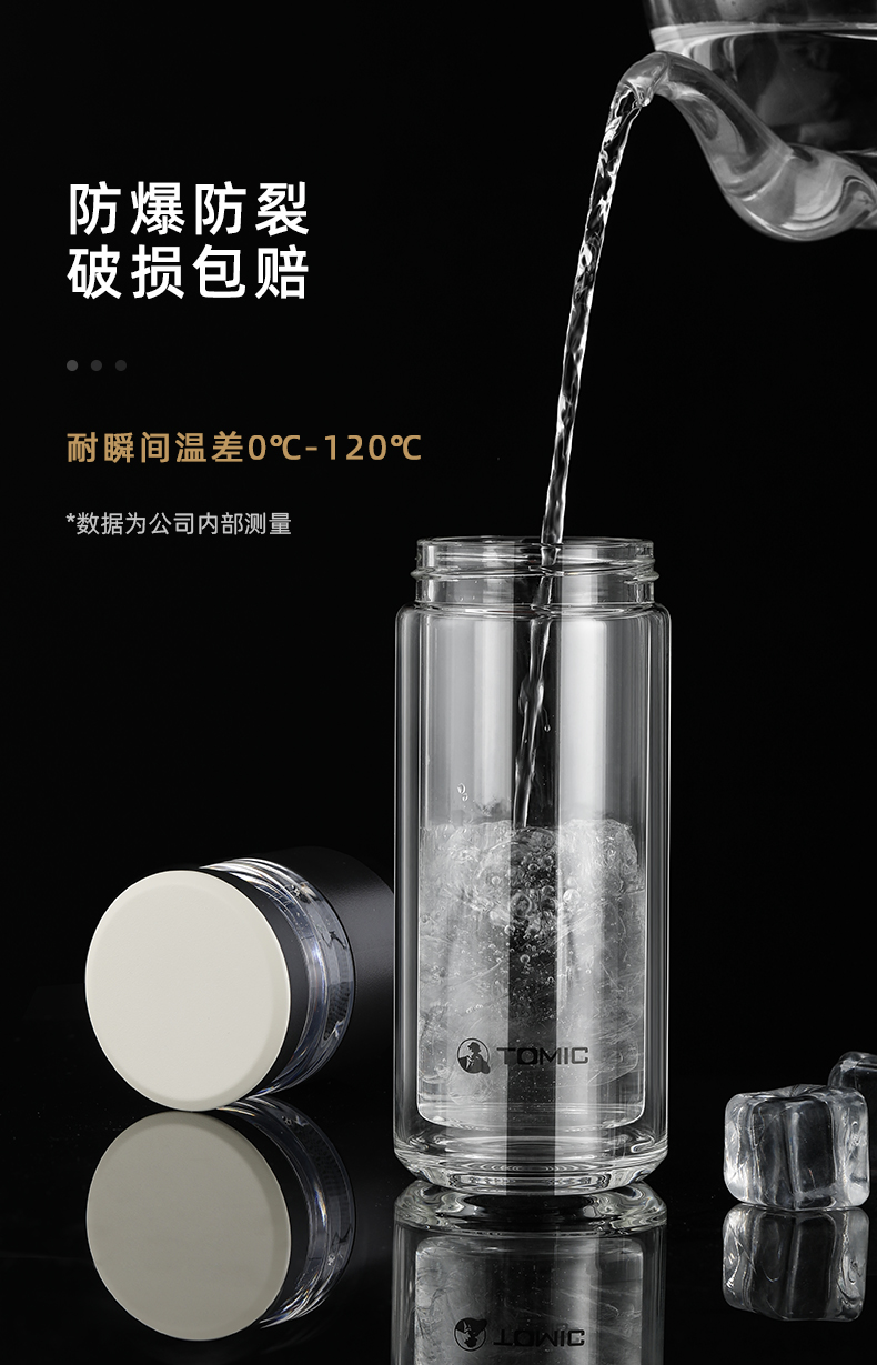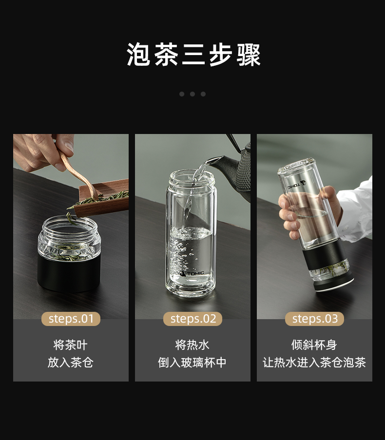 特美刻(TOMIC)玻璃杯茶水分离杯家用双层玻璃水杯便携商务办公泡茶杯 TG80703 黑色400ML