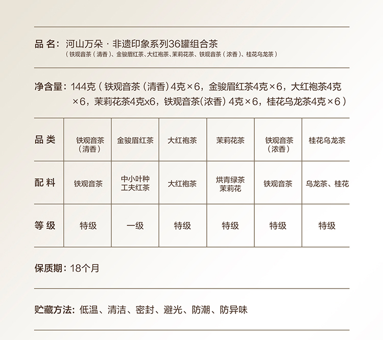 小罐茶 河山万朵·非遗印象系列36罐组合茶 (大红袍x6,金骏眉×6,桂花乌龙茶×6,清香铁观音×6,浓香铁观音茶×6,茉莉花茶×6) 送礼优选商务礼【现货】
