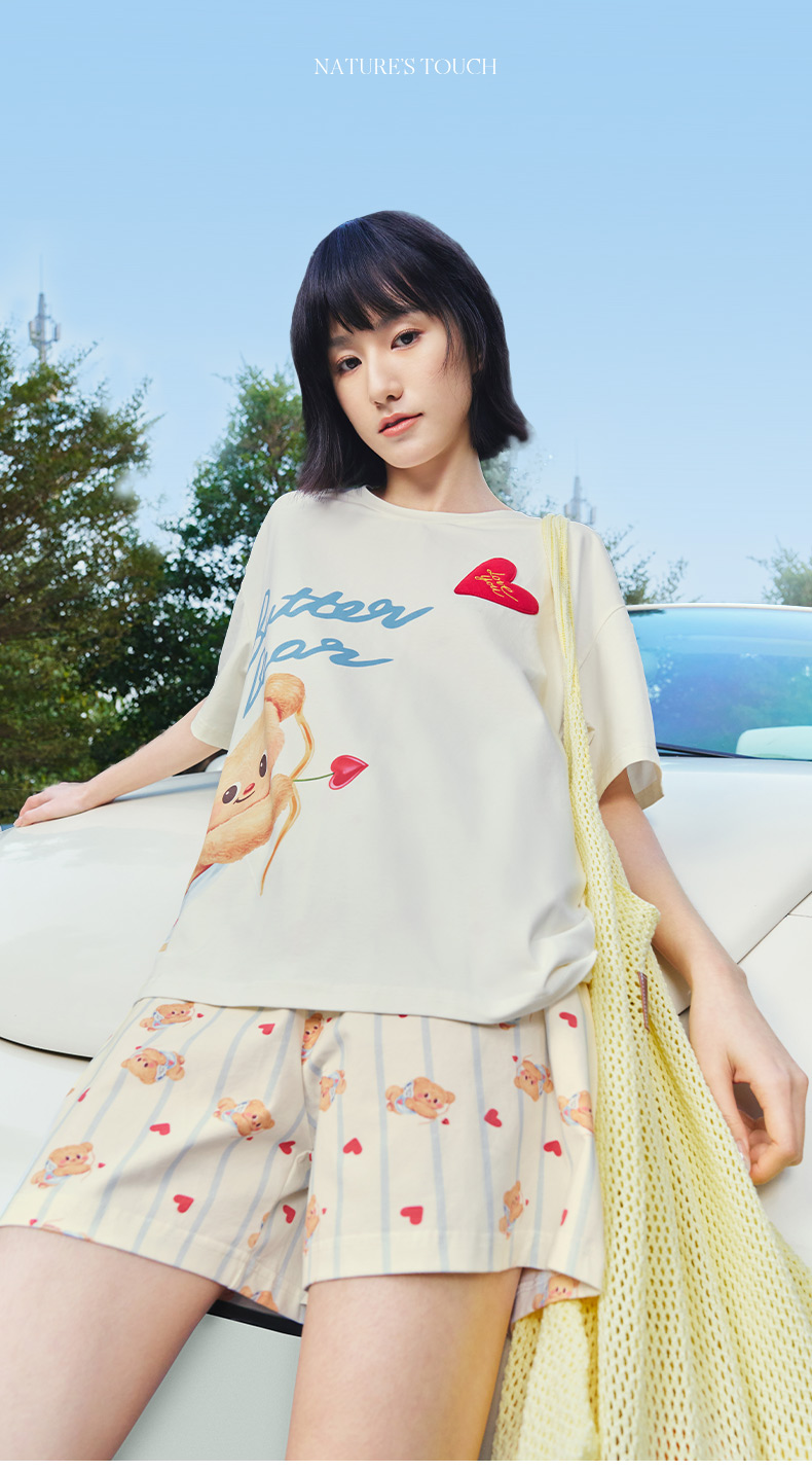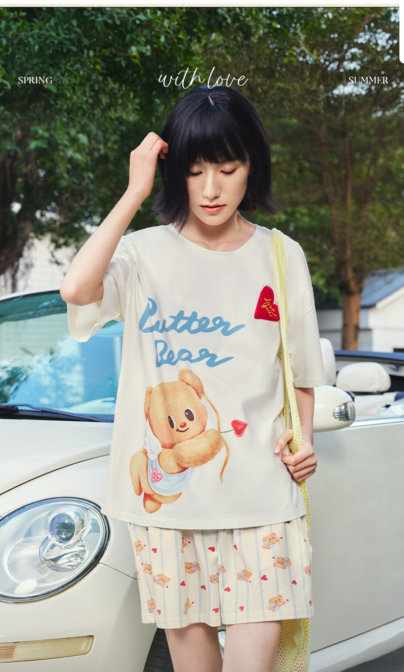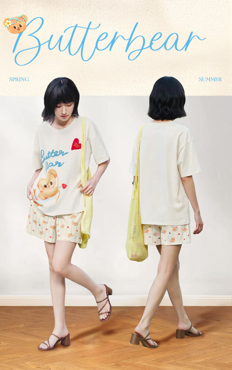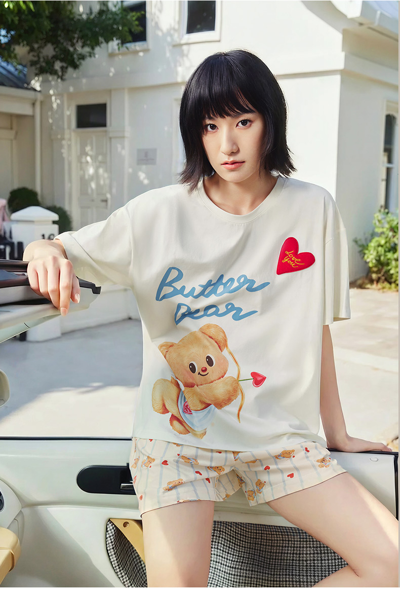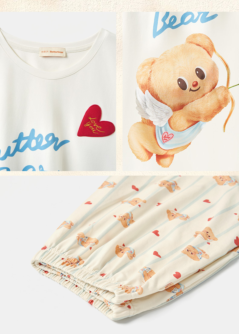 奶糖派睡衣女2026新款春夏短袖凉感黄油小熊联名天使熊圆领家居服