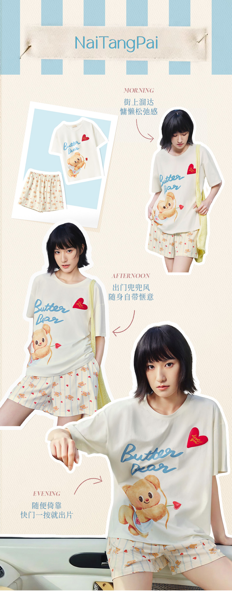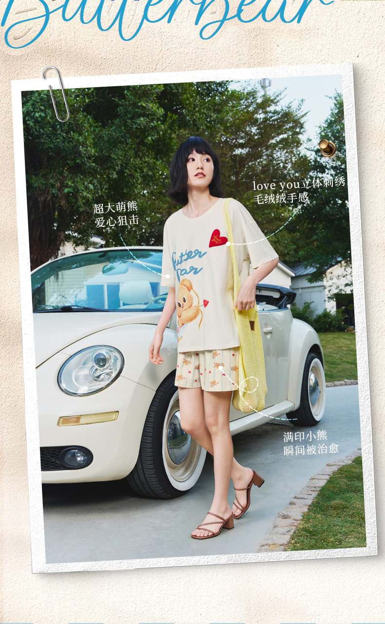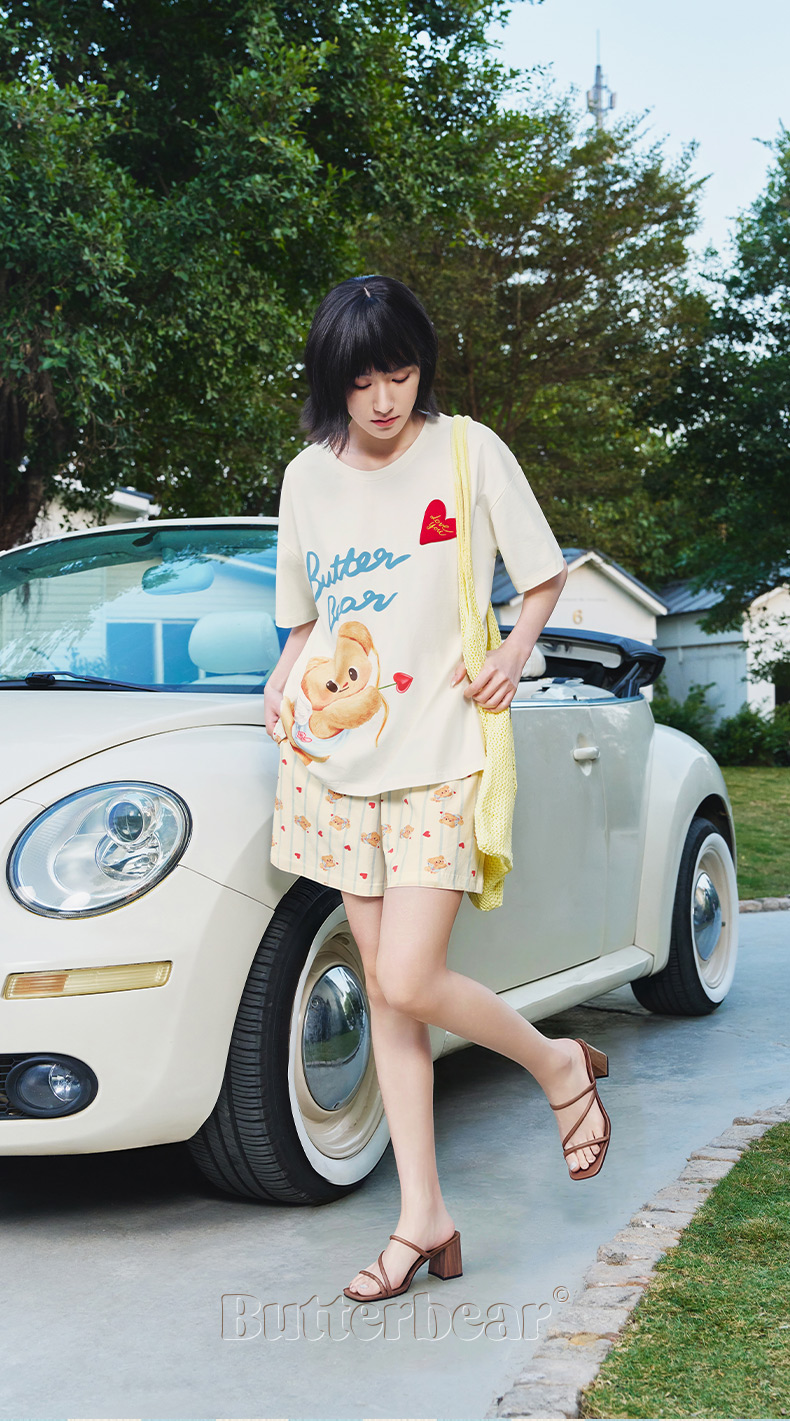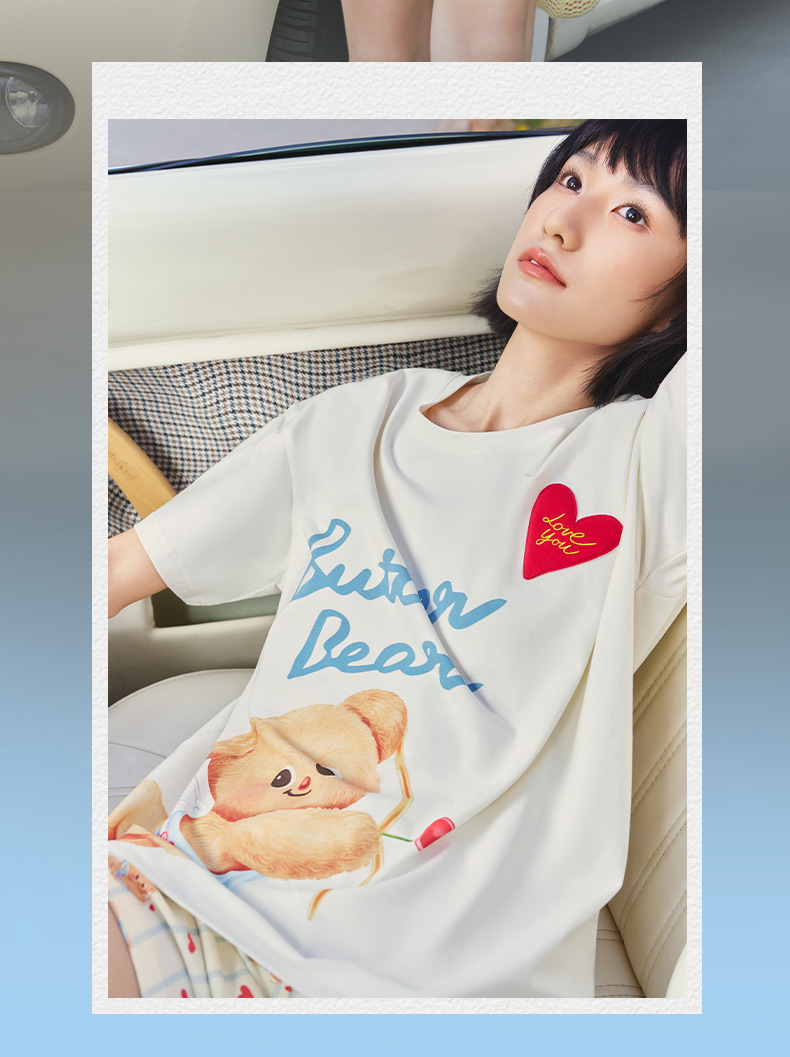 奶糖派睡衣女2026新款春夏短袖凉感黄油小熊联名天使熊圆领家居服