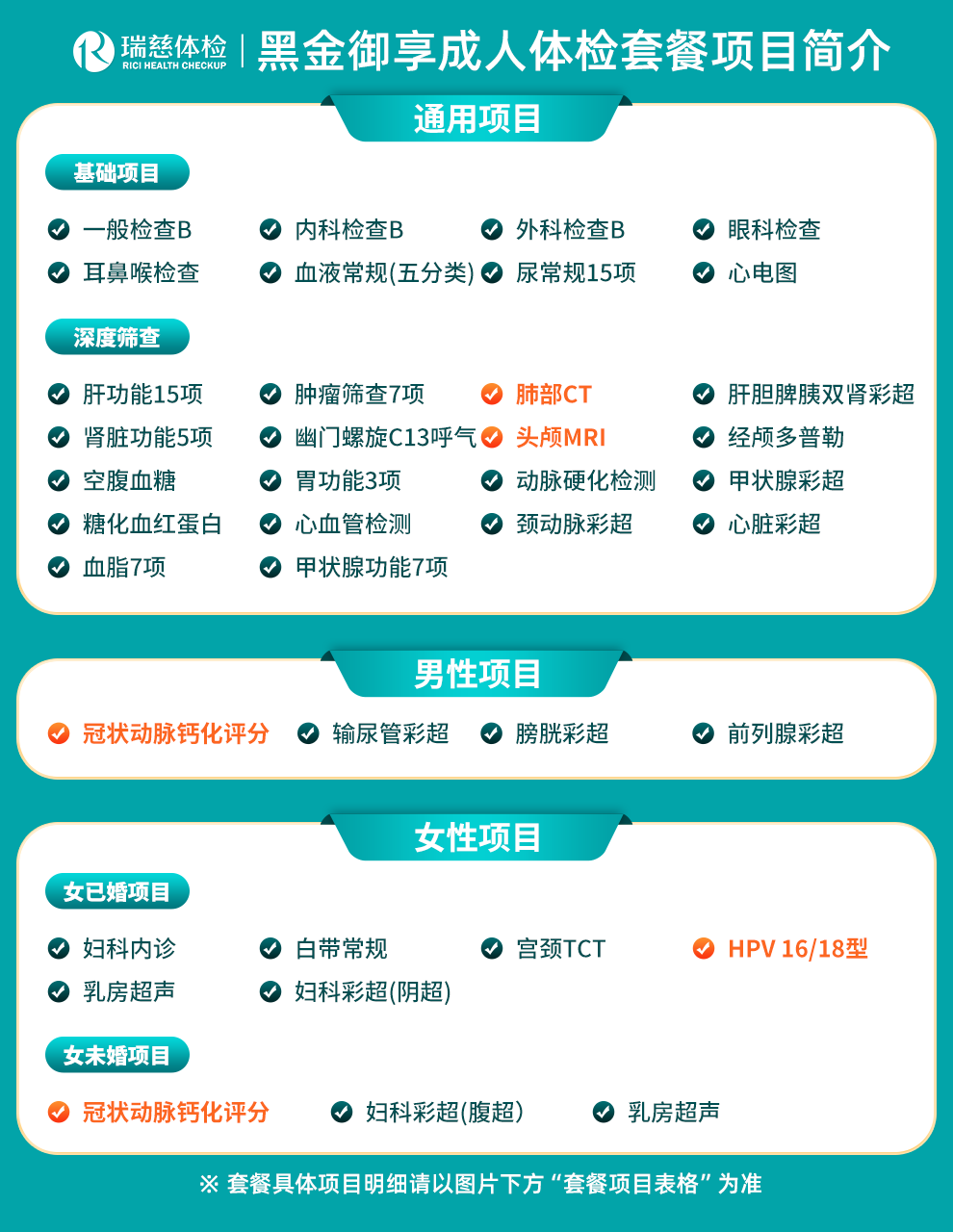 | 套餐名称:黑金御享成人体检套餐 | |||||