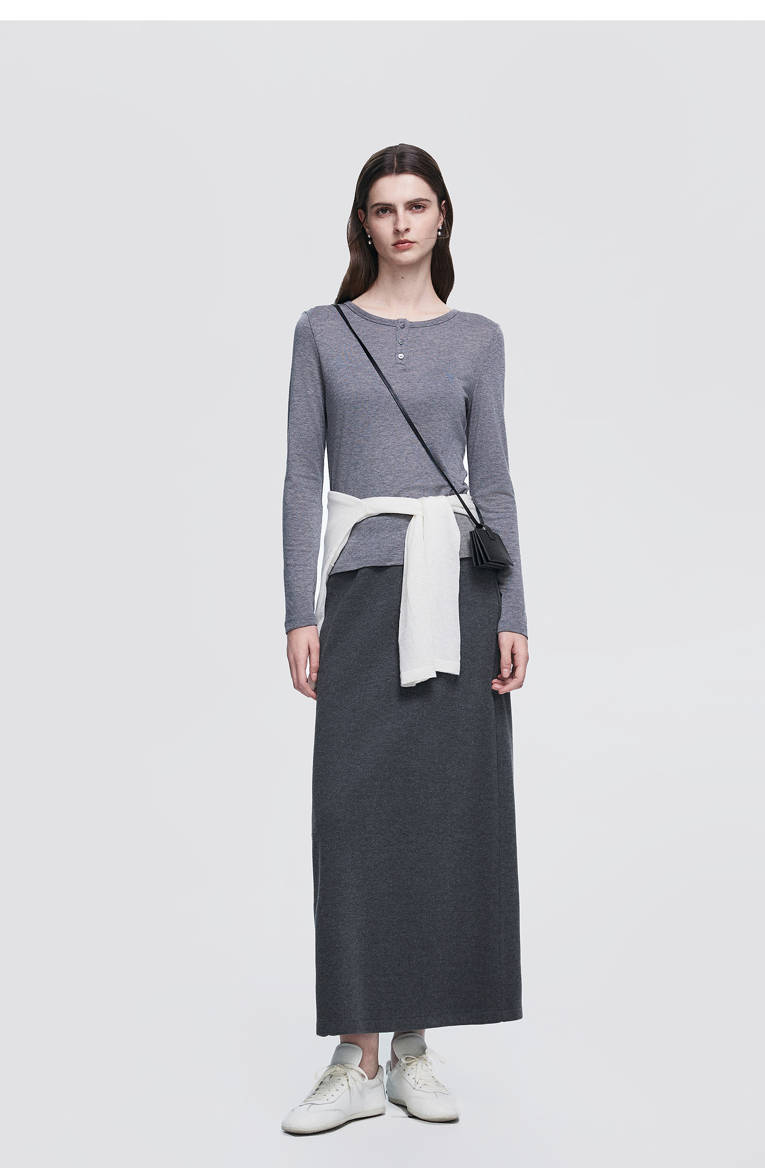 棉仓356801001 -法国罗纹微宽松长袖T恤