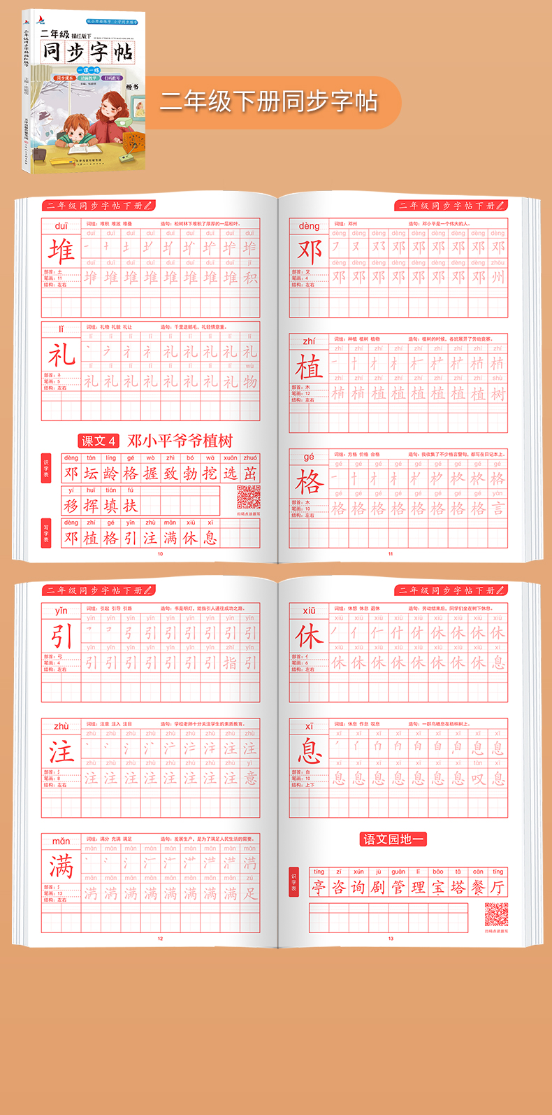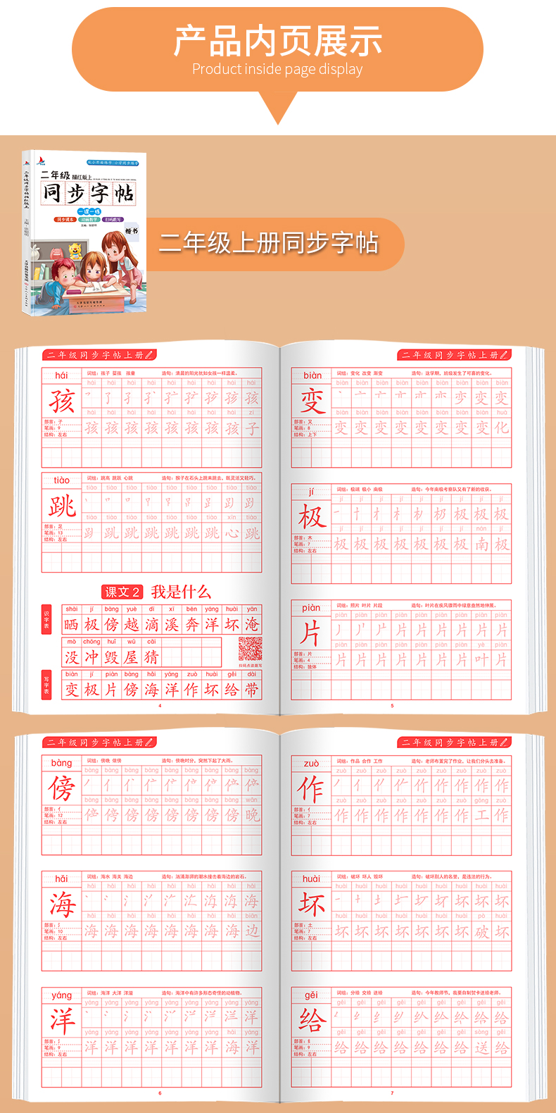 二年级上下册语文楷书练字帖,小学生儿童课本同步人教版
