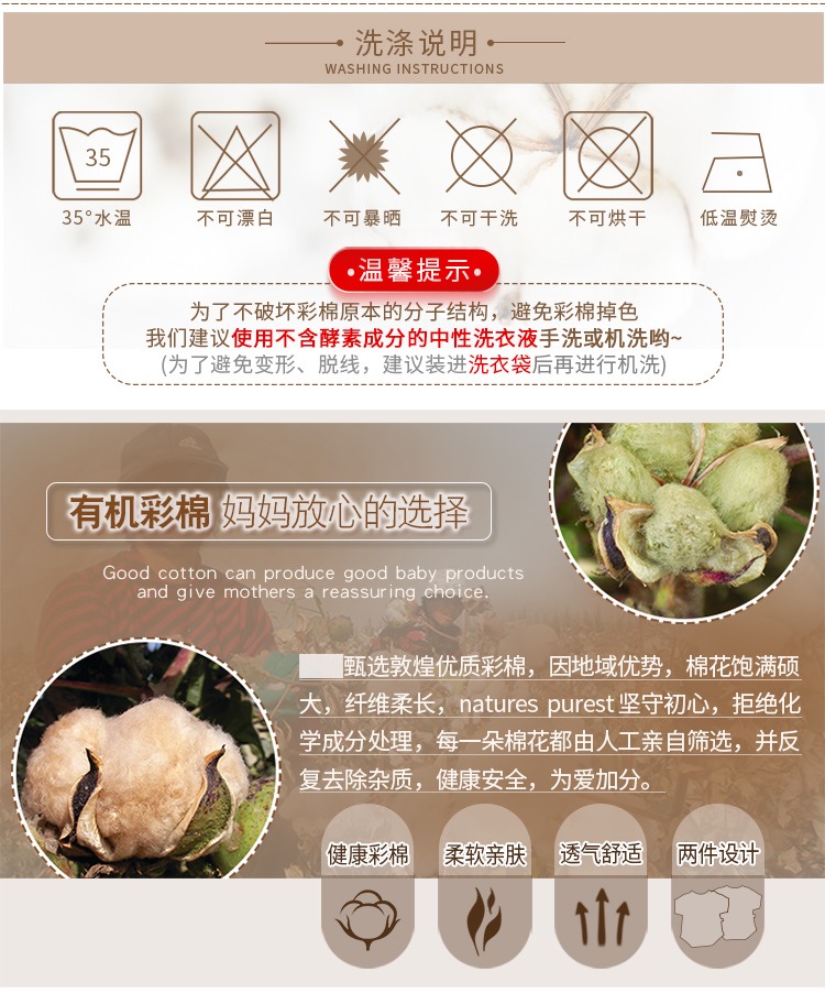 【云粉节】9楼英国natures purest(天然素彩)宝宝有机彩棉连体哈衣爬服男女哈衣两件装丨吊牌价:388元