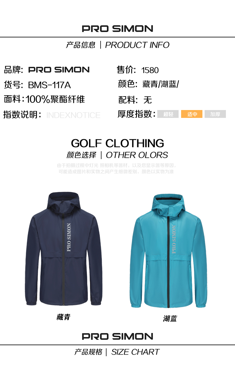 BMS-117A(PROSIMON高尔夫男款春夏轻薄防风防雨连帽外套风衣)