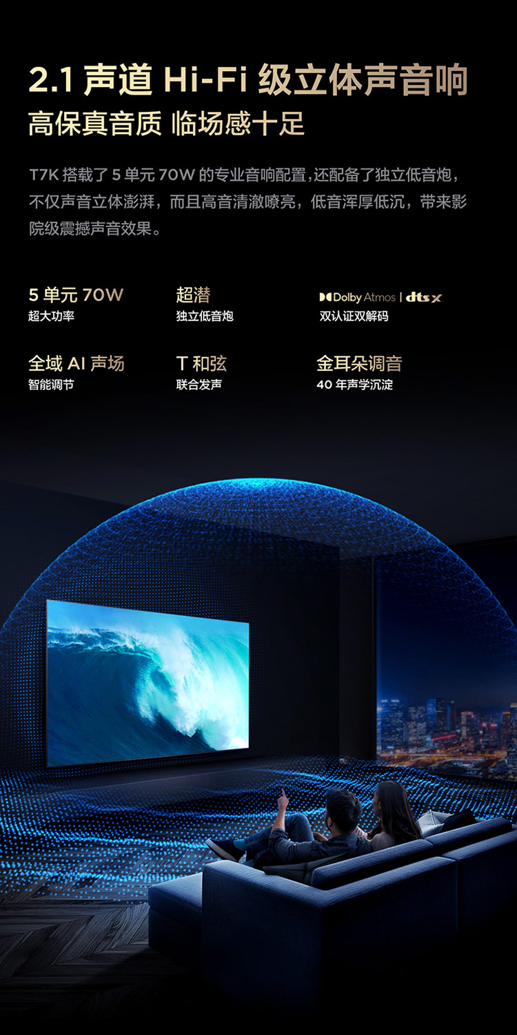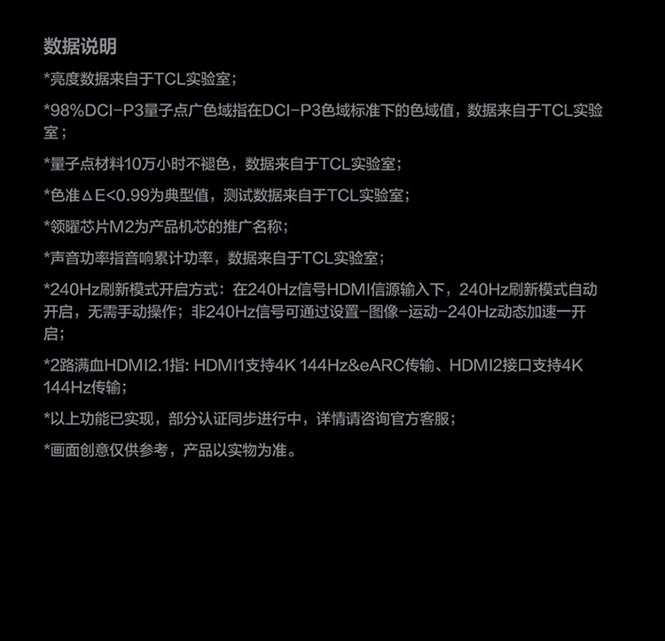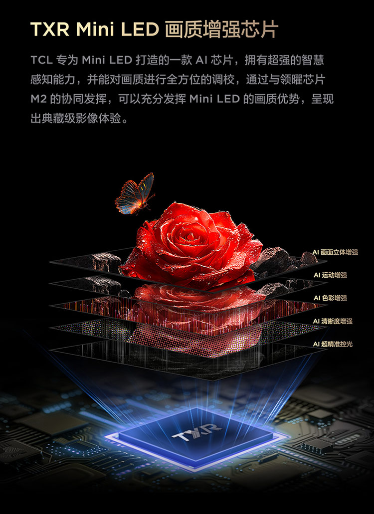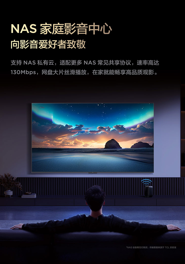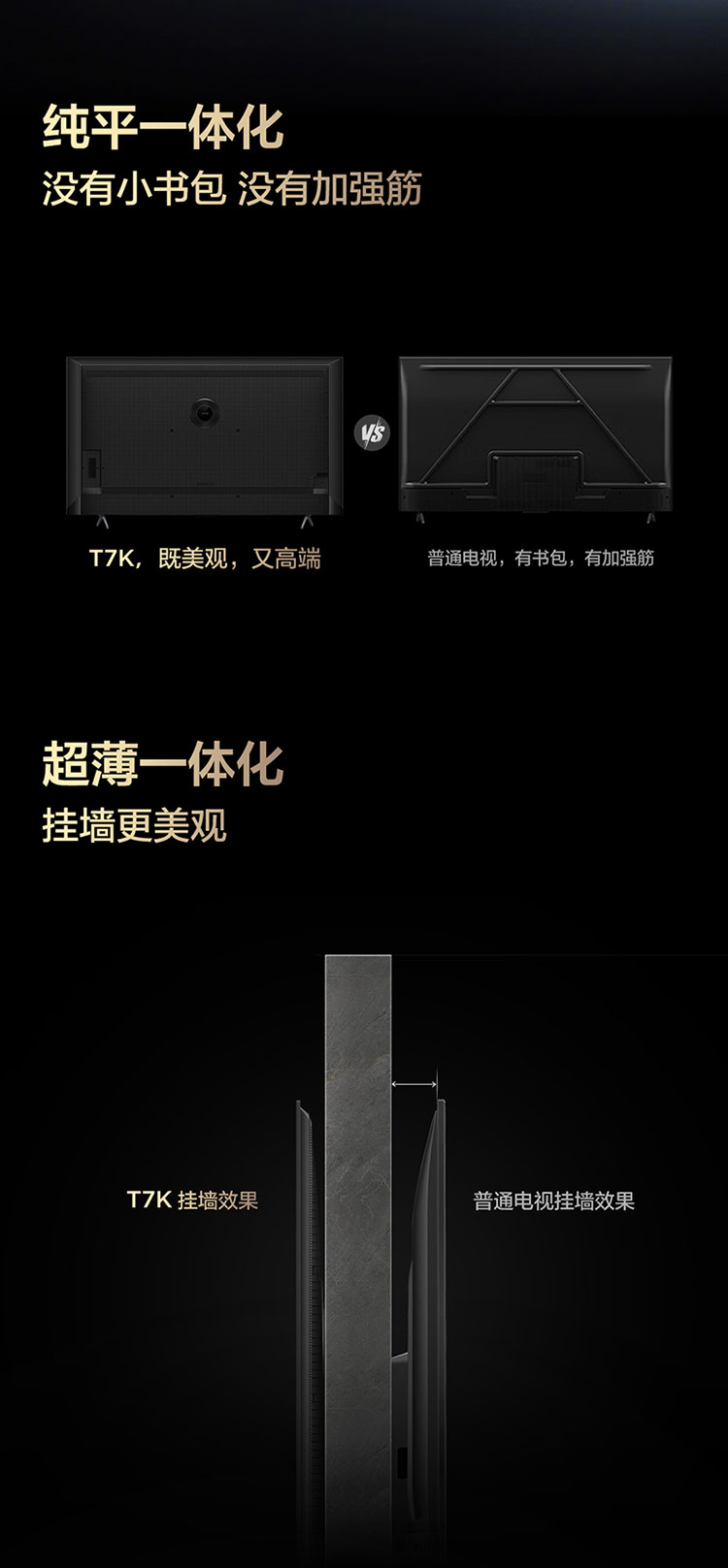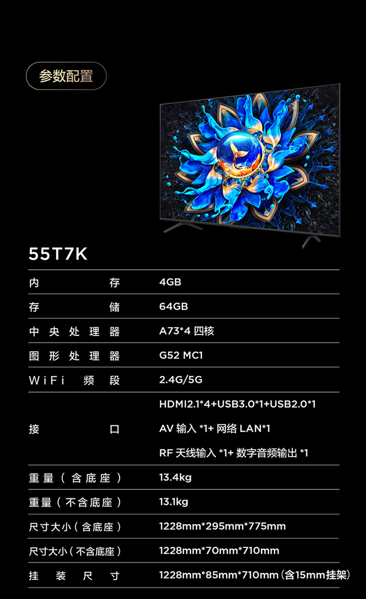 TCL电视 55T7K 55英寸 QD-Mini LED 384分区 XDR 1600nits QLED量子点 超薄电视