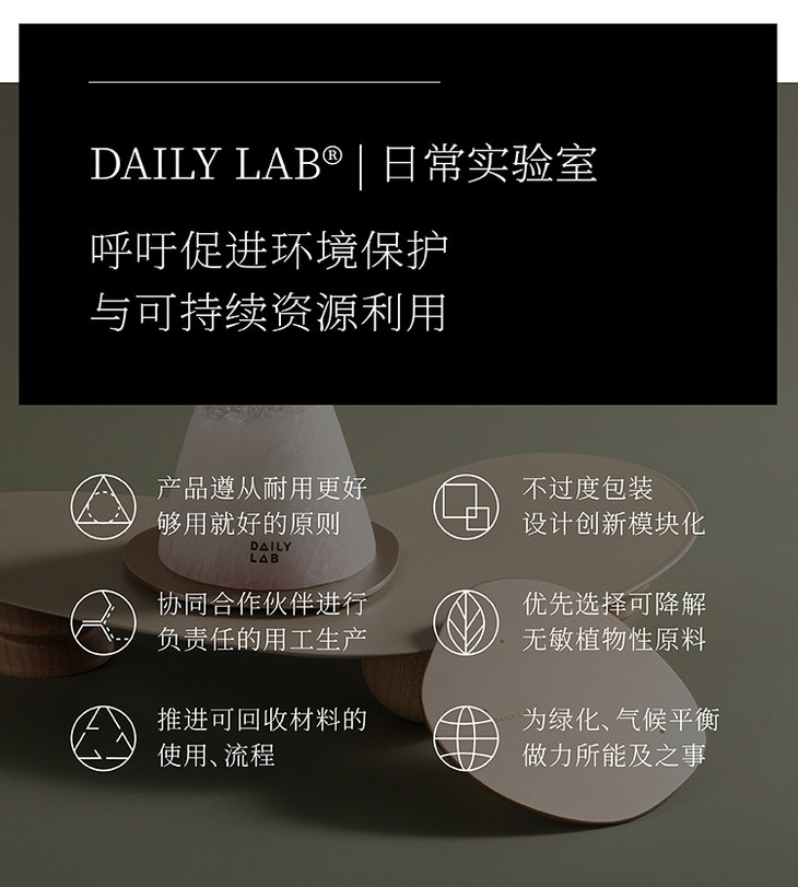 - DAILY LAB|日常实验室,立足东方美学,是专注于「香气可视化」的轻奢空气交互品牌。