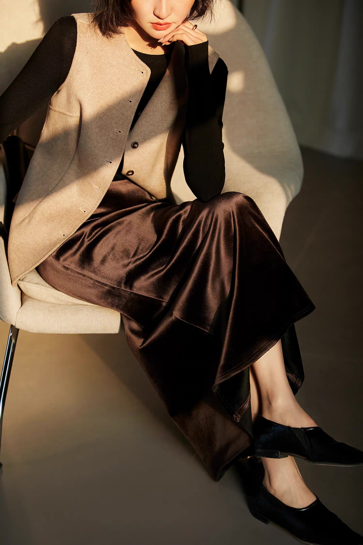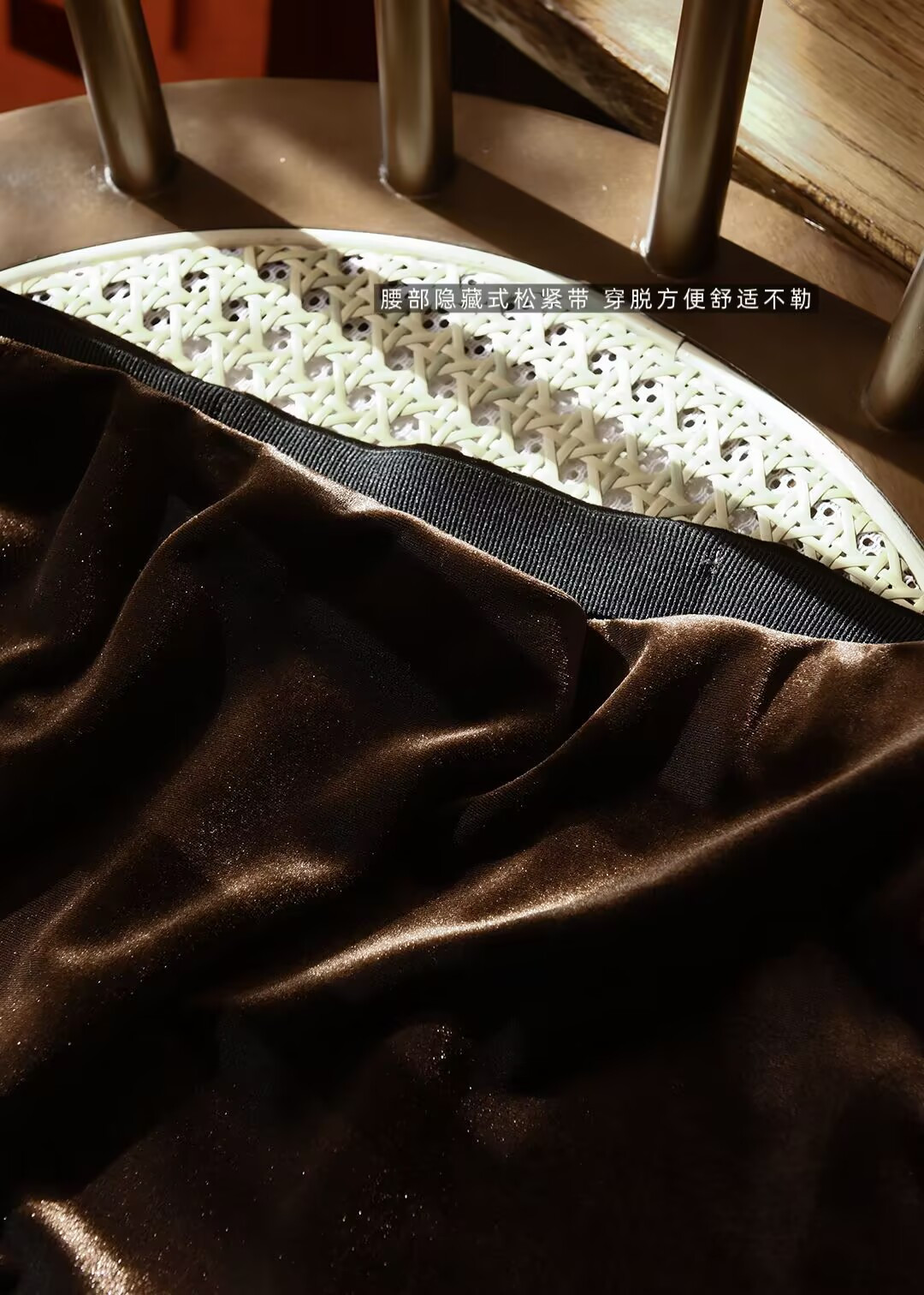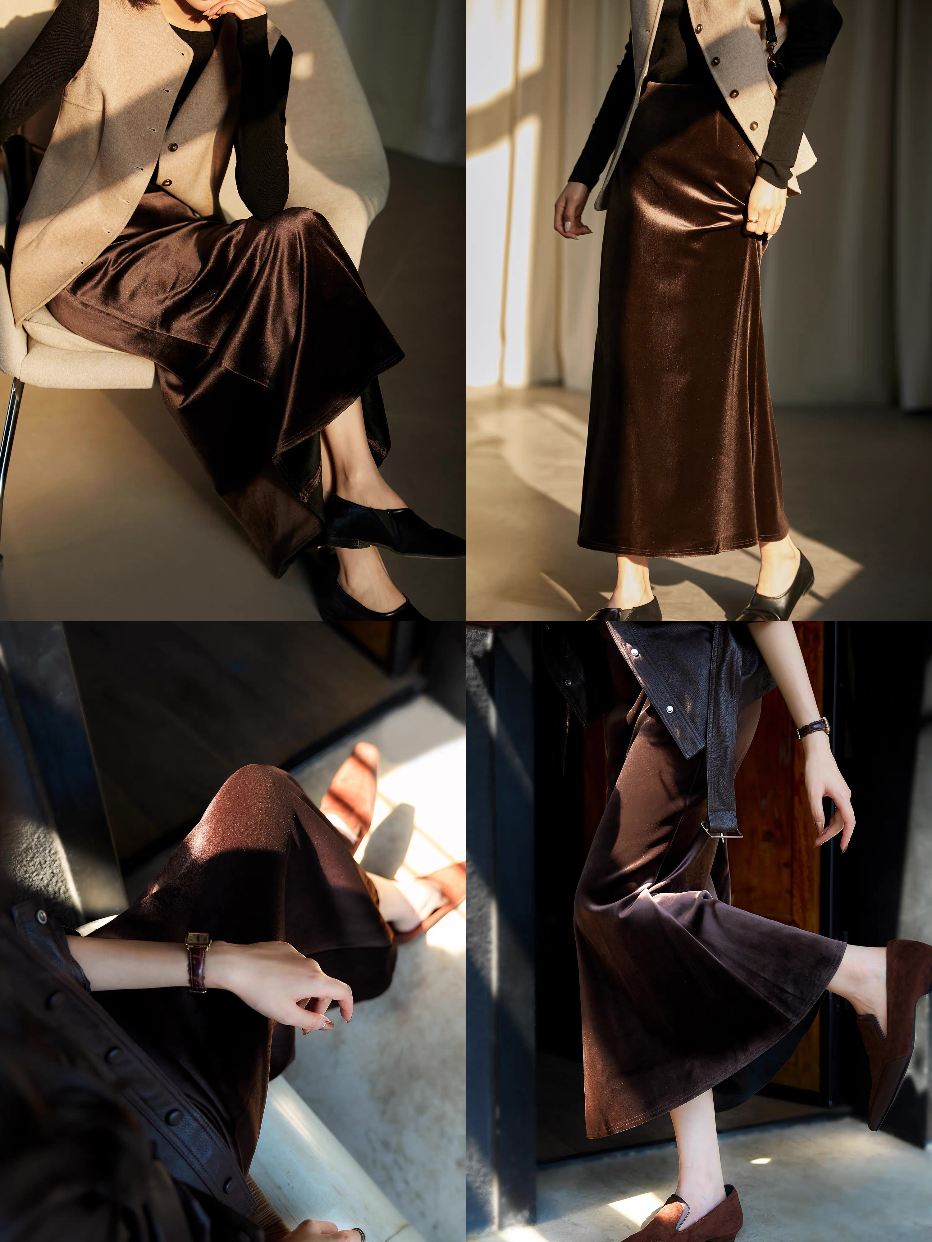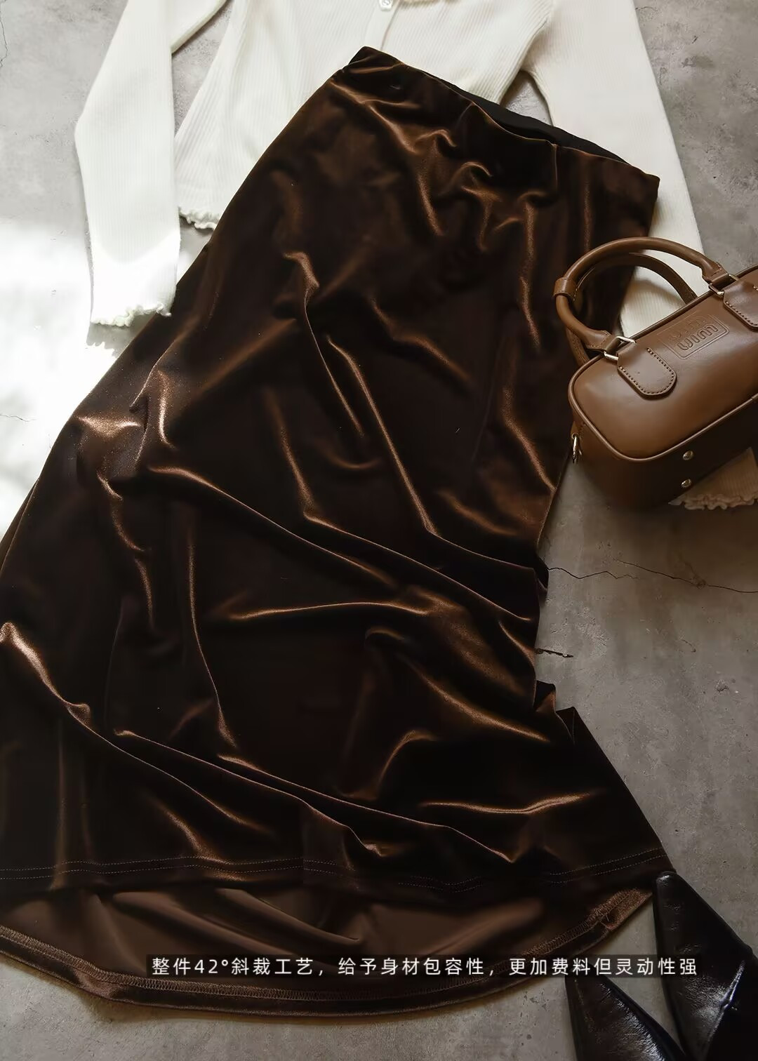 柜款原单 真正的不倒金丝绒+ 7道柔顺工艺,特有的流动光泽高级显贵,垂感超绝,久坐也不泛白。