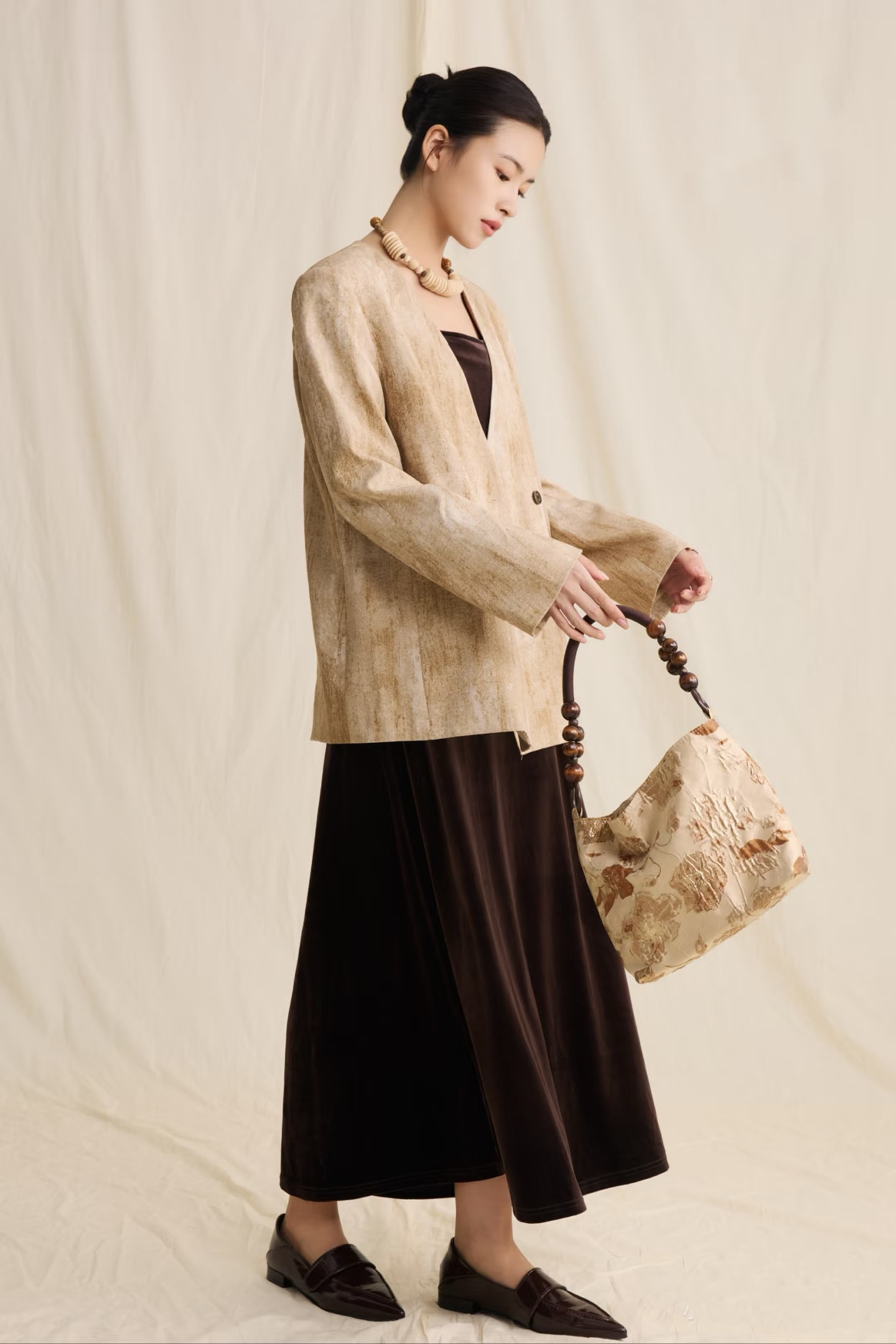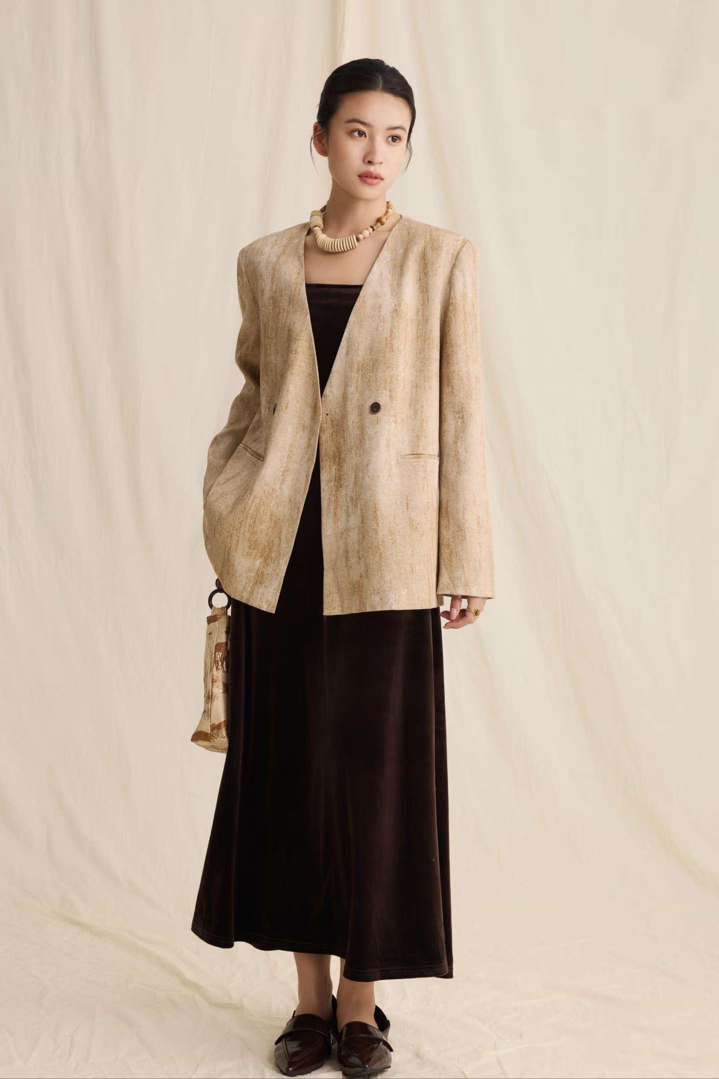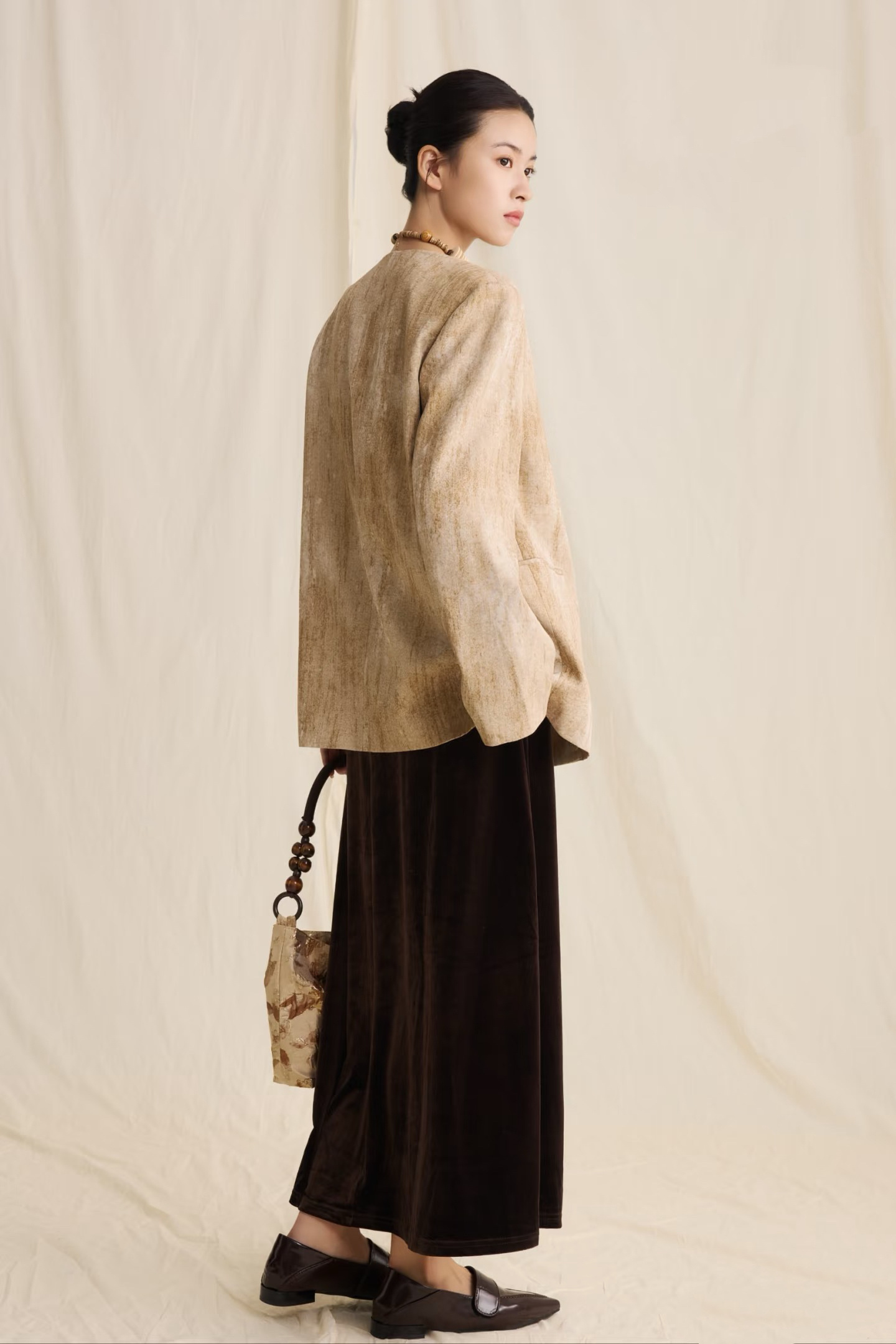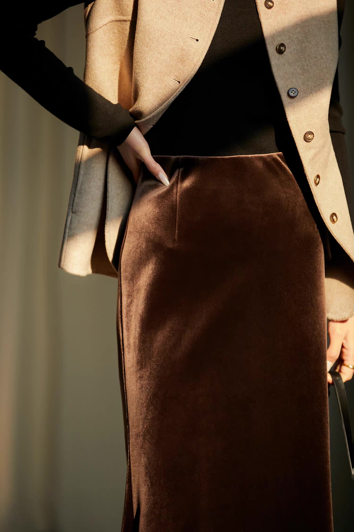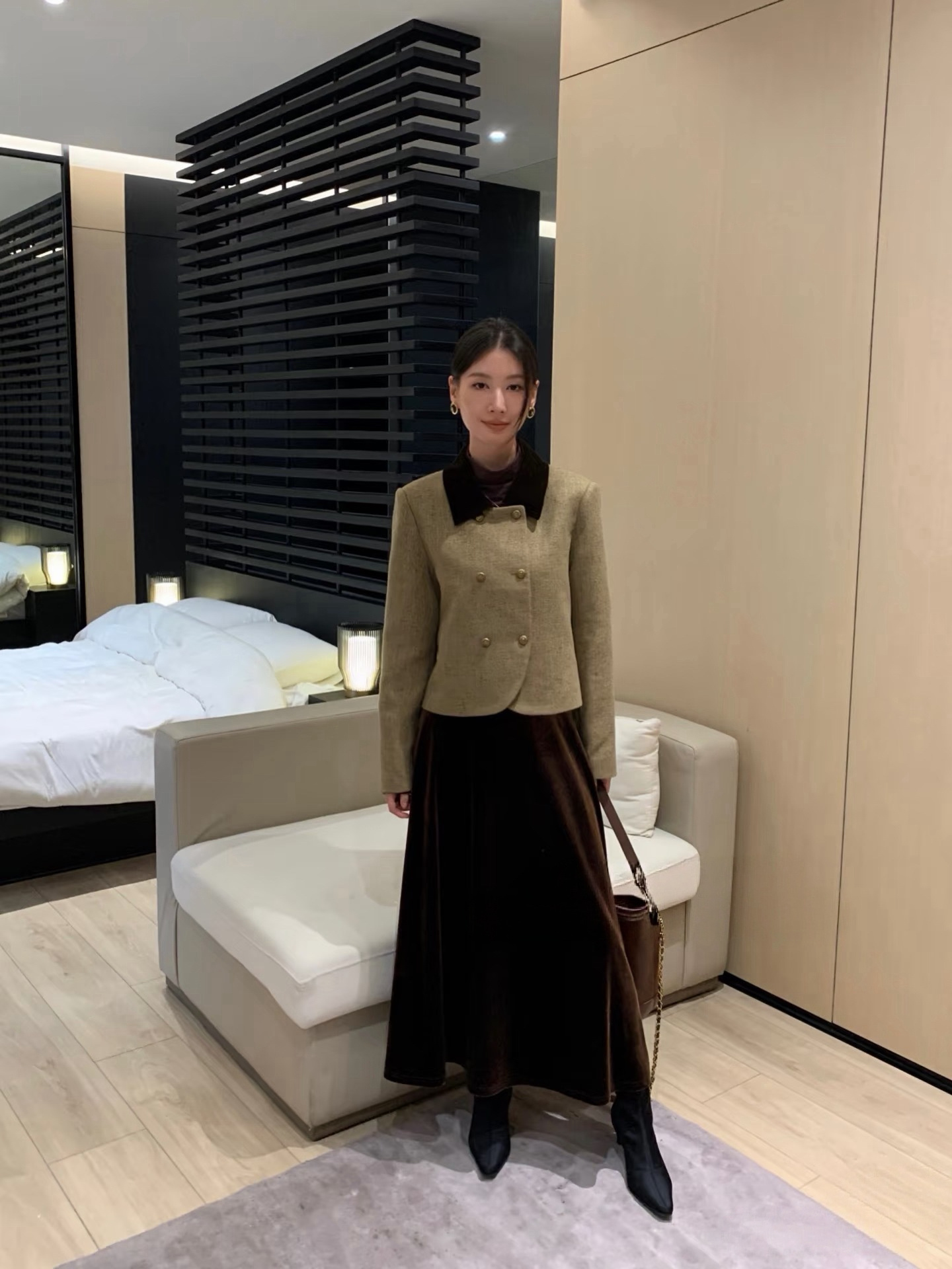 柜款原单 真正的不倒金丝绒+ 7道柔顺工艺,特有的流动光泽高级显贵,垂感超绝,久坐也不泛白。