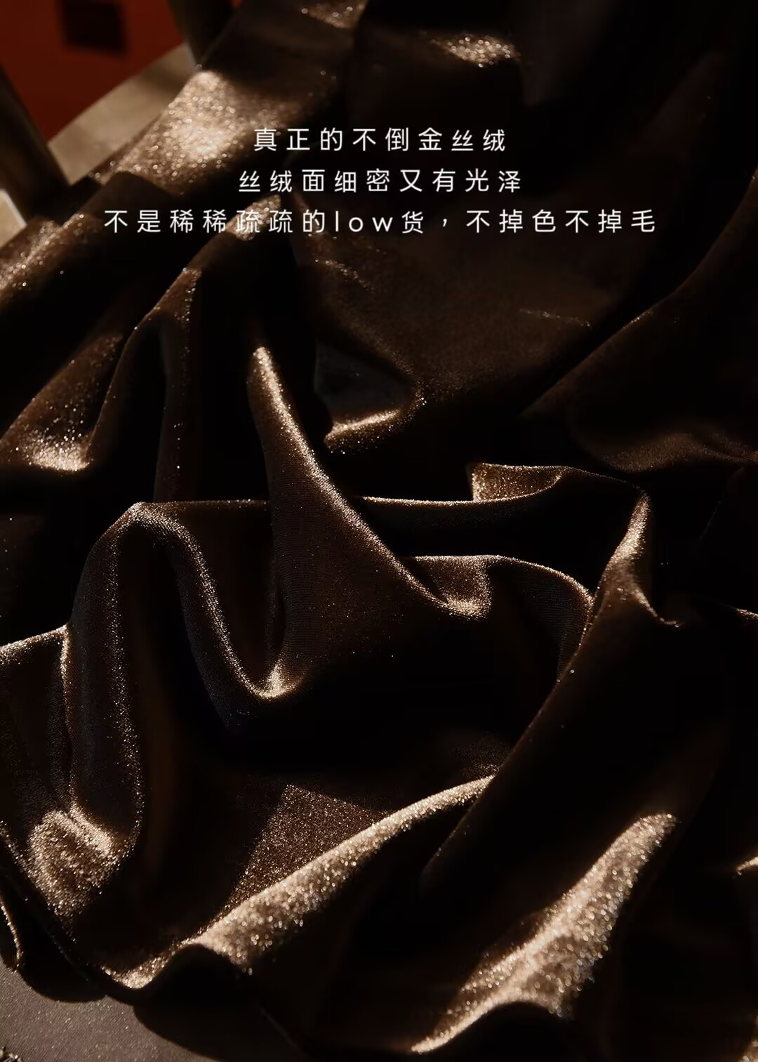 定制轻奢金丝绒,满满的光泽感,轻轻一动就散发波光粼粼的轻奢感~