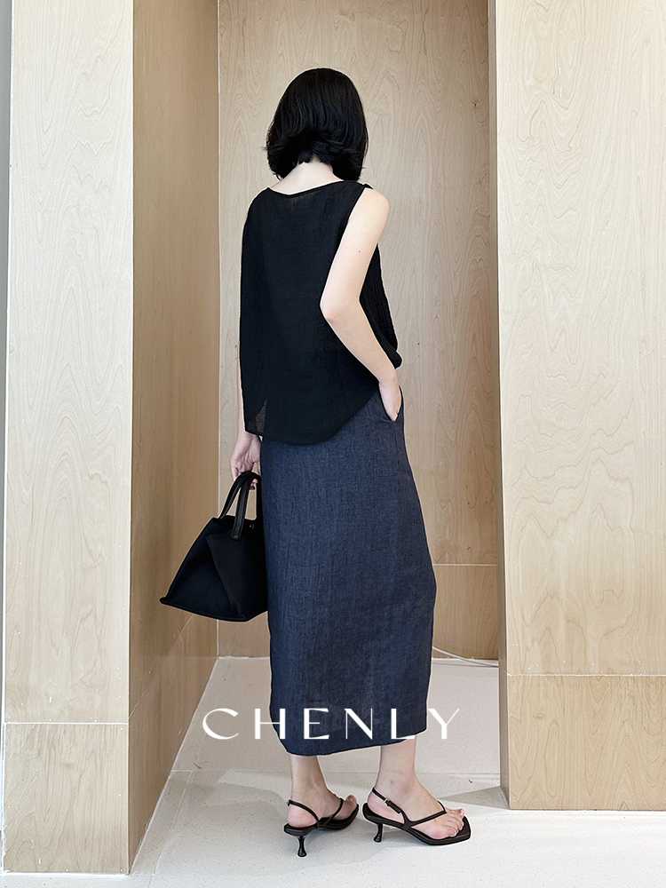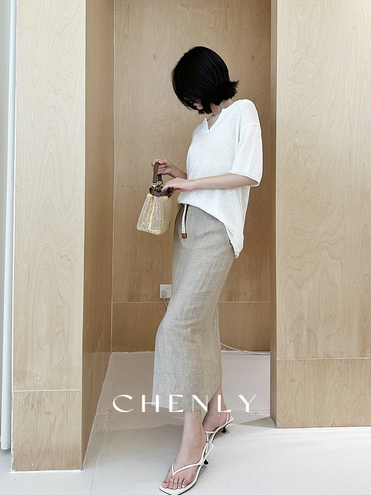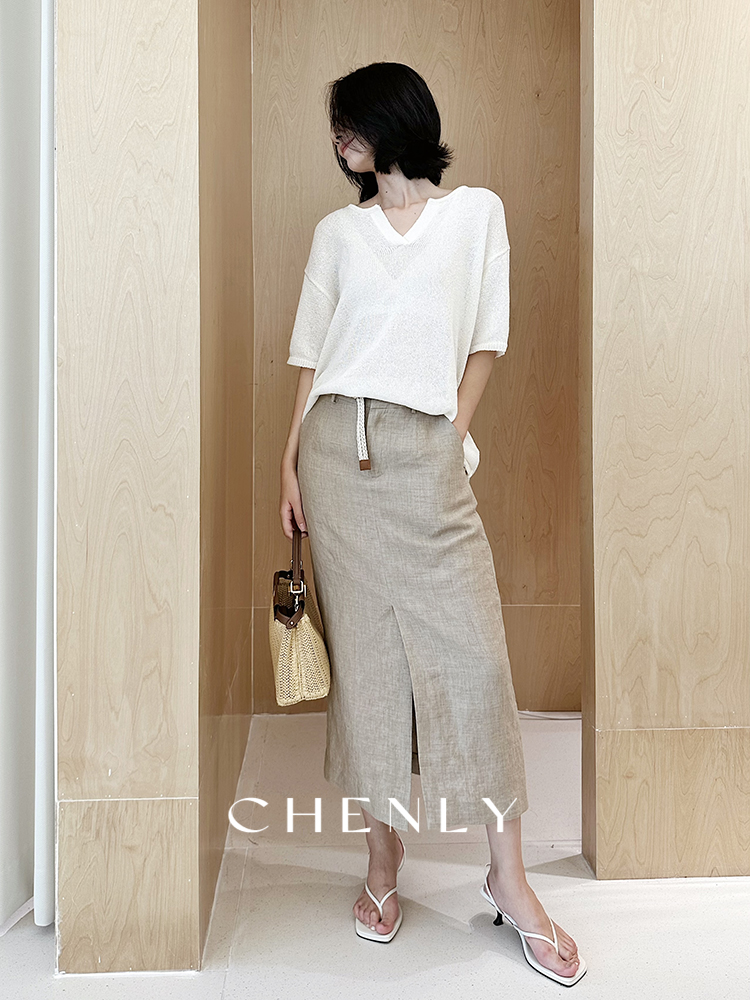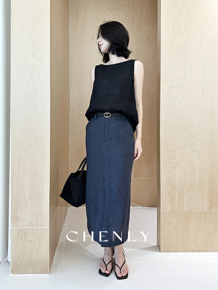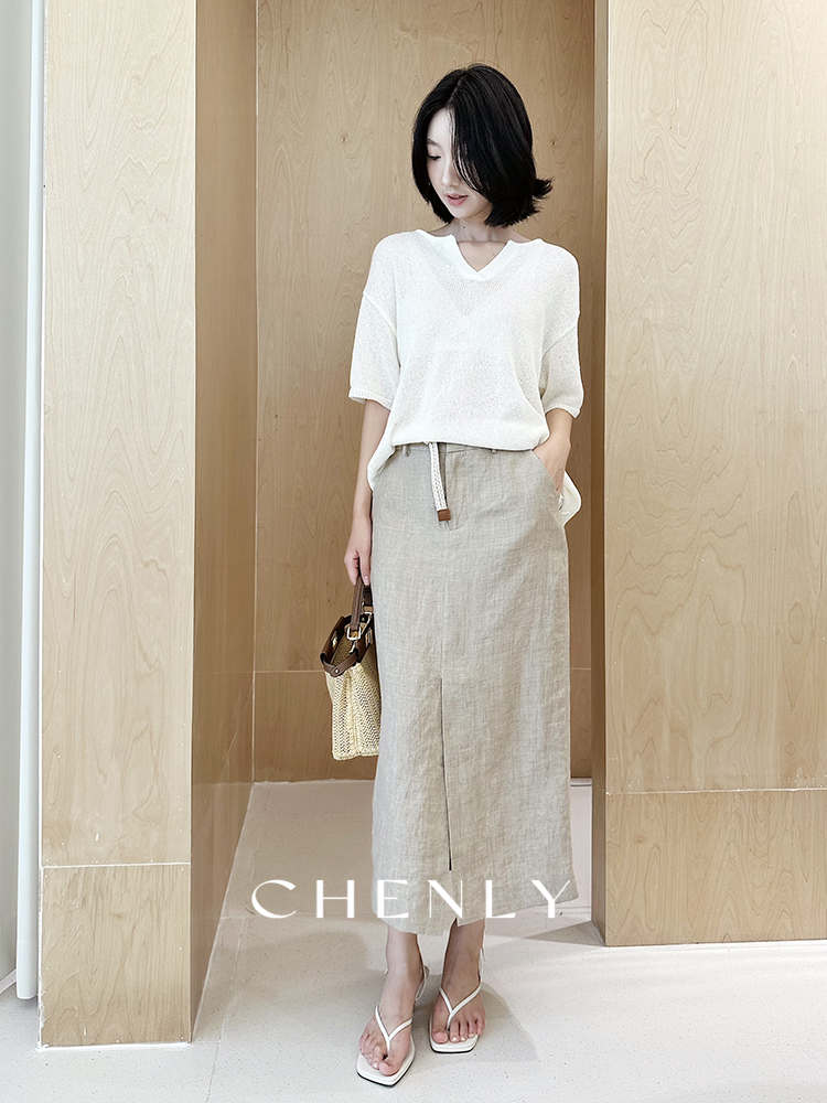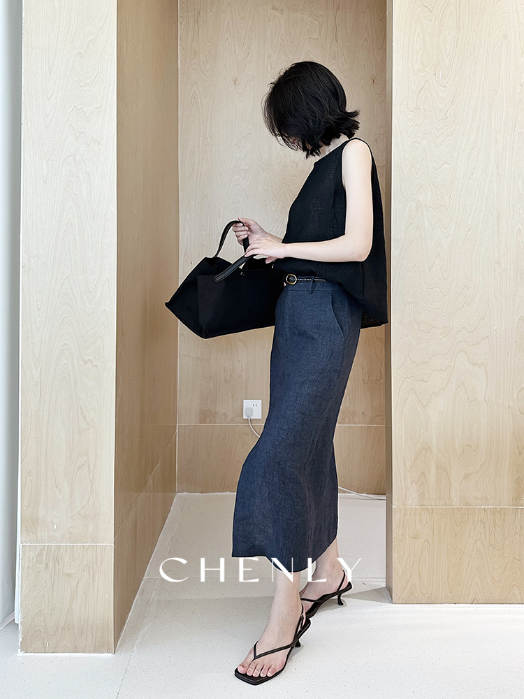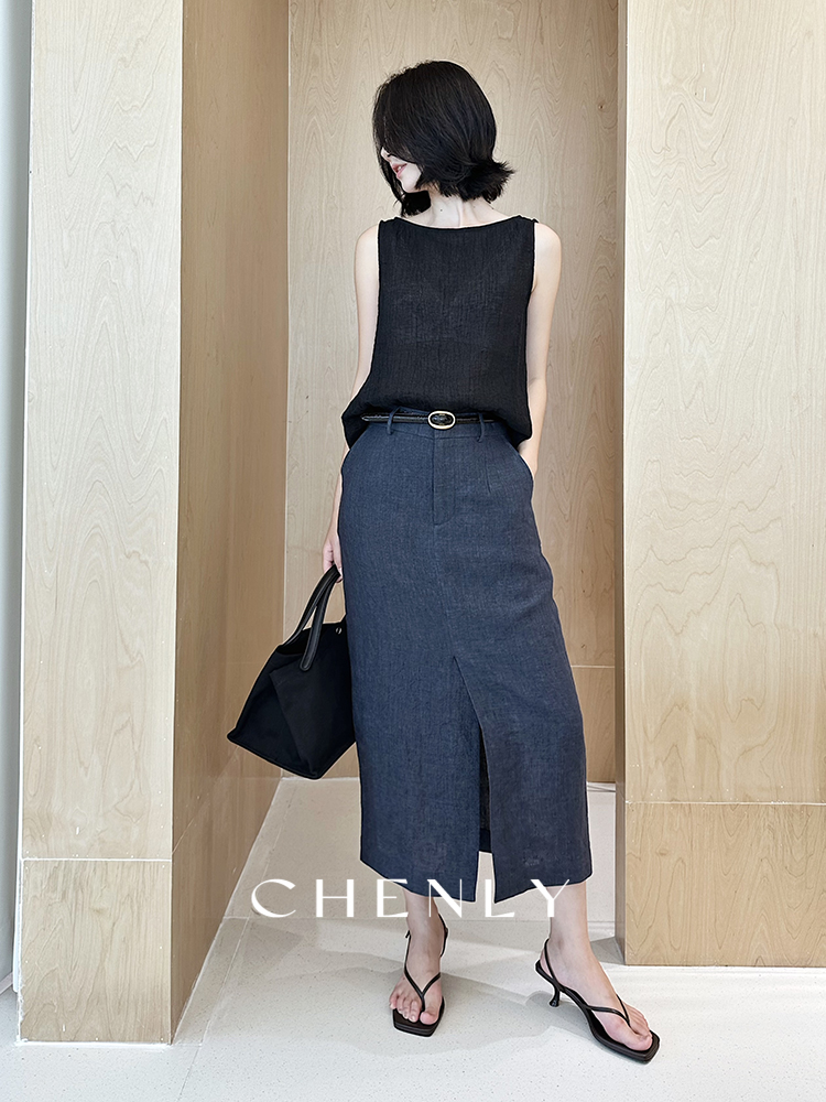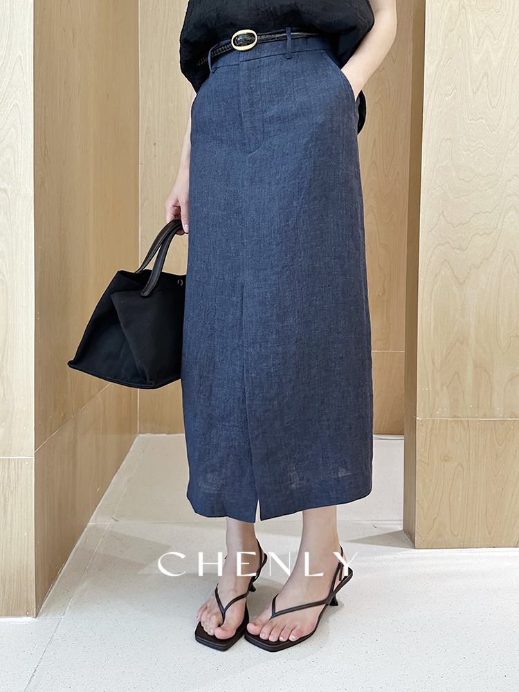 尘衣|25春夏进口亚麻直筒显瘦半裙