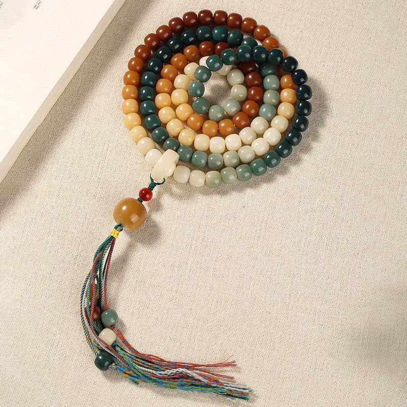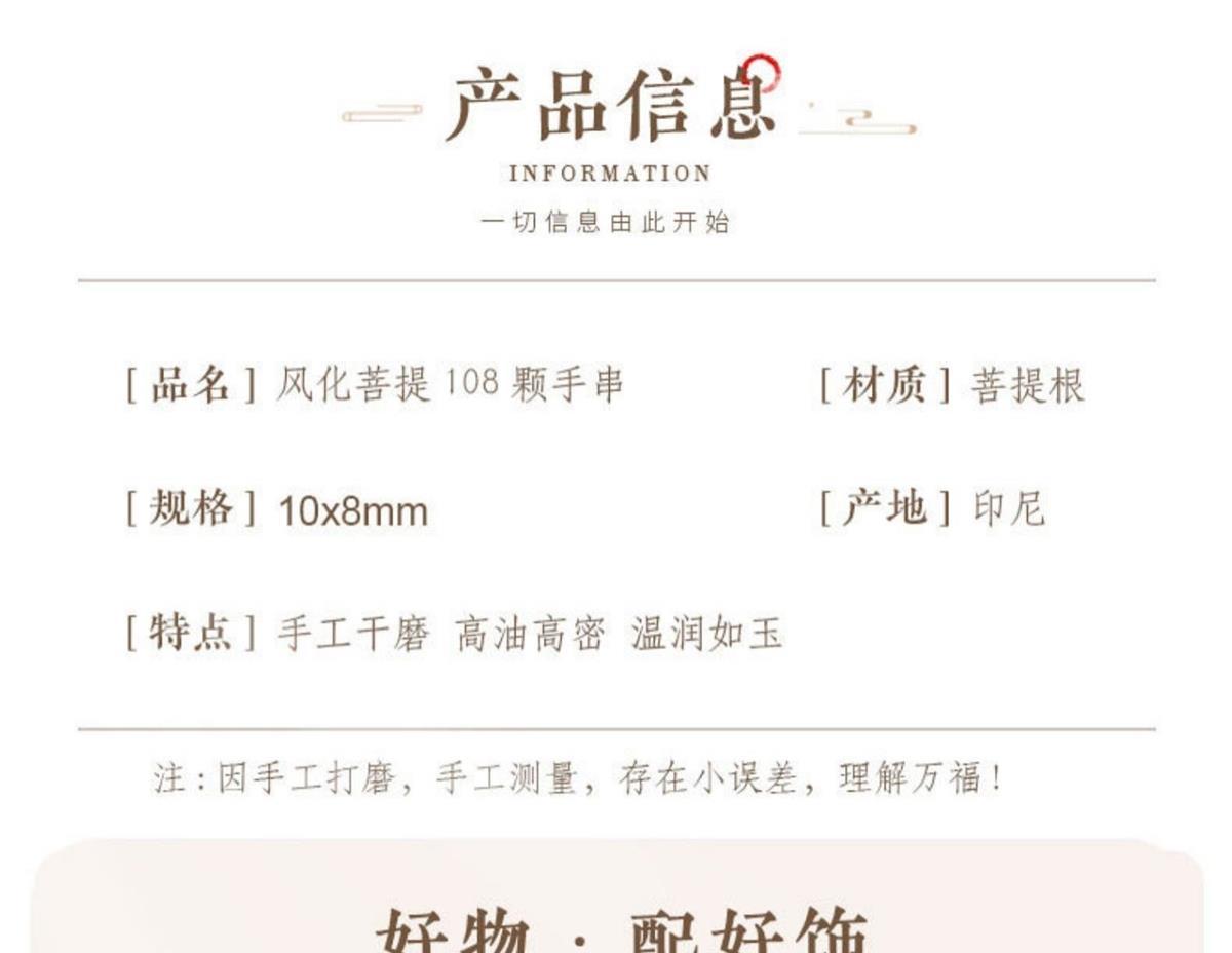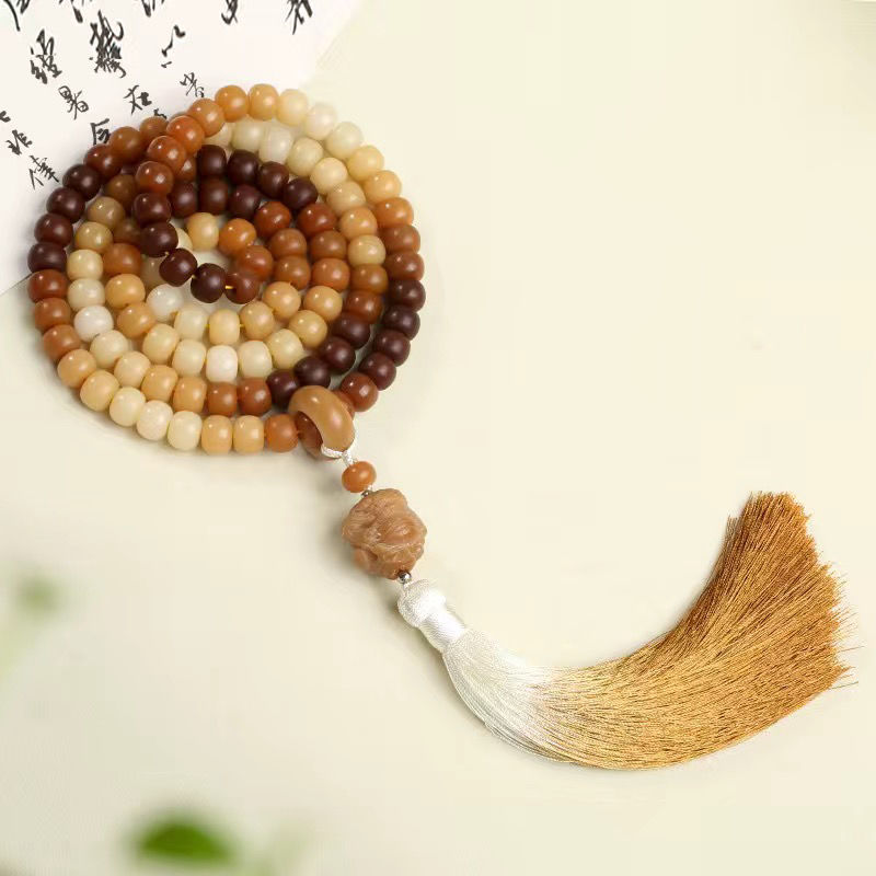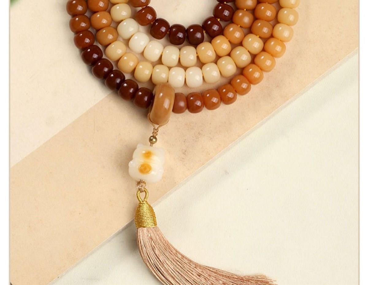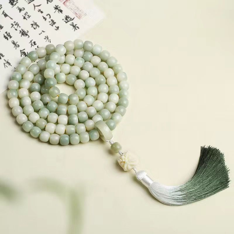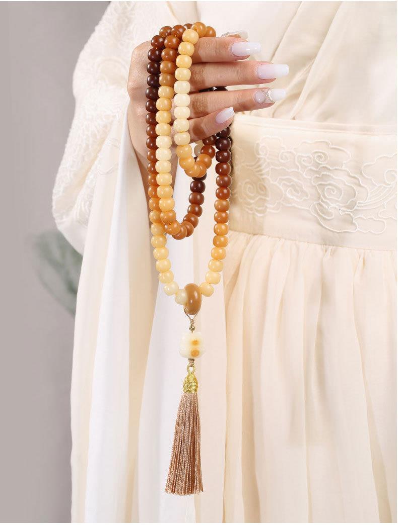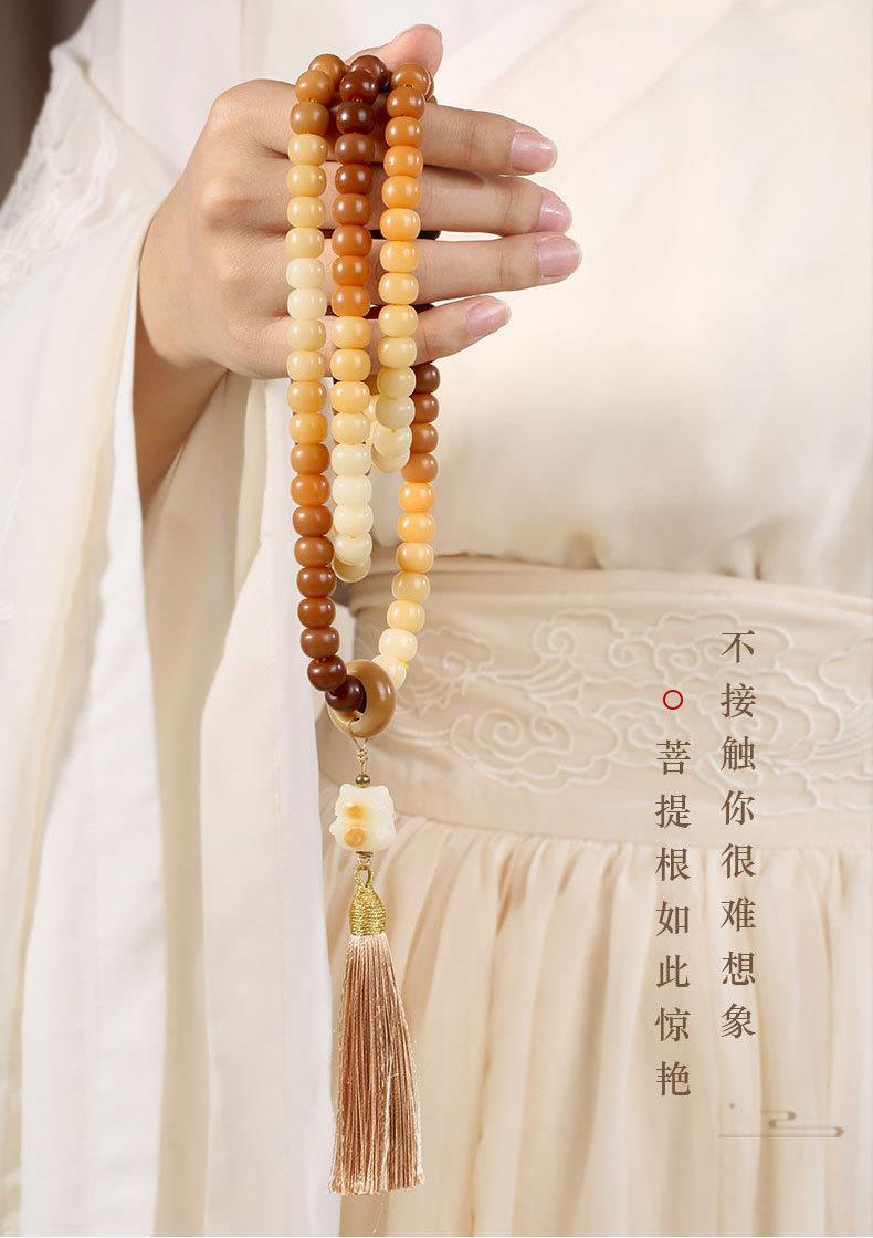 高档白玉菩提手串108颗手串风化渐变菩提根手链文玩女款佛珠念珠