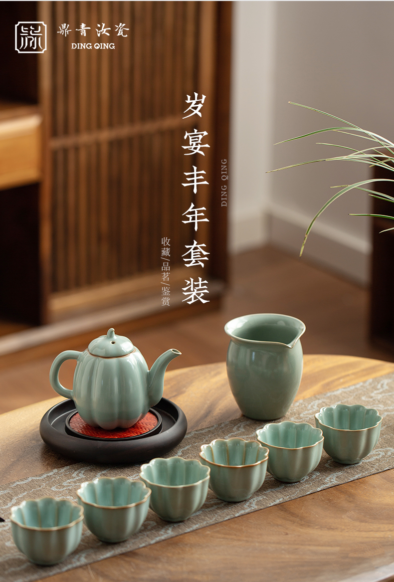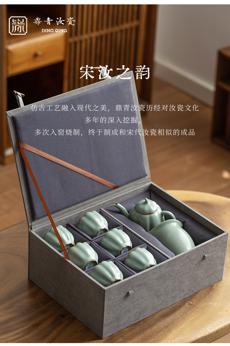 问鼎汝瓷鼎峰系列天青癸卯宝相盖碗对杯套组