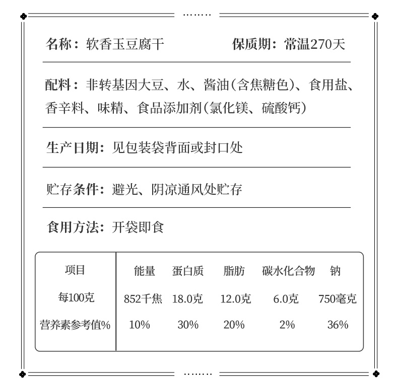 祖名软香玉豆腐干500g