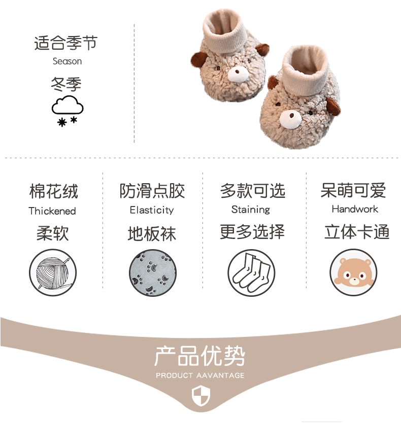 【呆萌可爱 保暖御寒防滑保护宝宝小脚丫】秋冬季婴幼儿鞋子加绒0-1岁宝宝软底不掉棉鞋保暖初生儿满月鞋袜