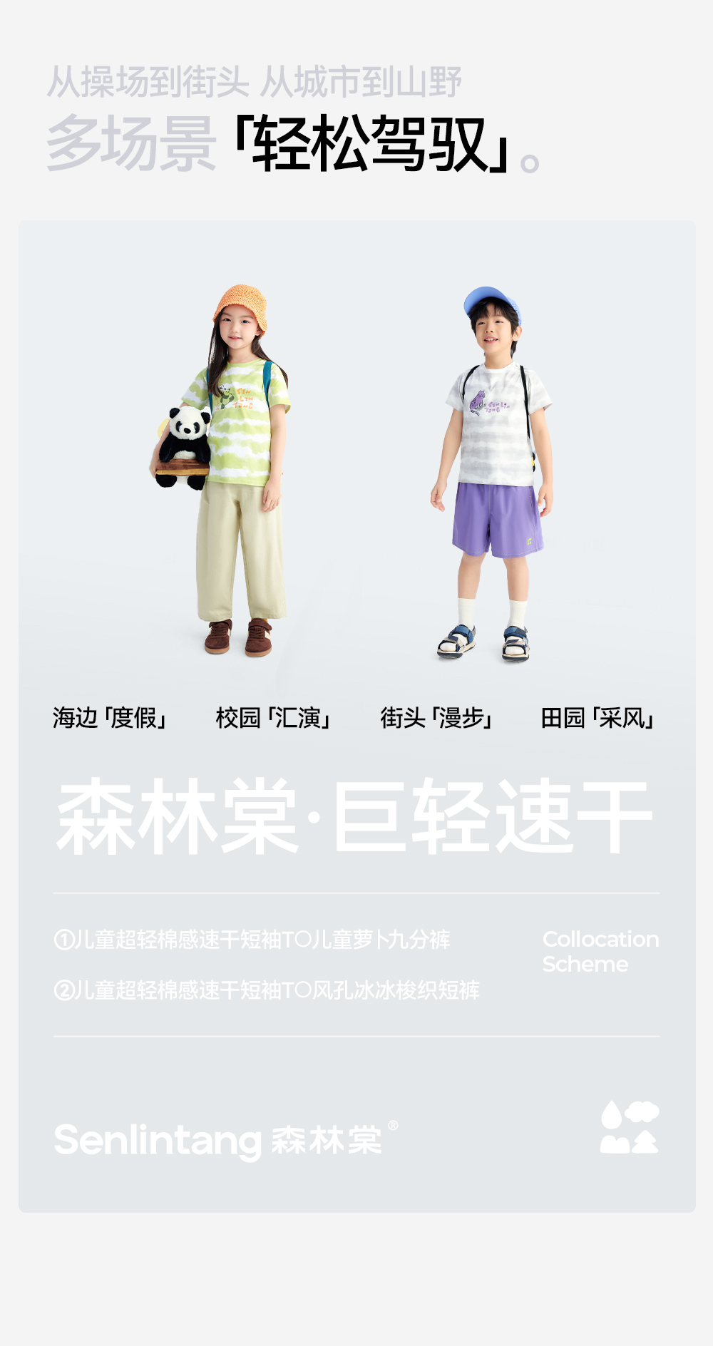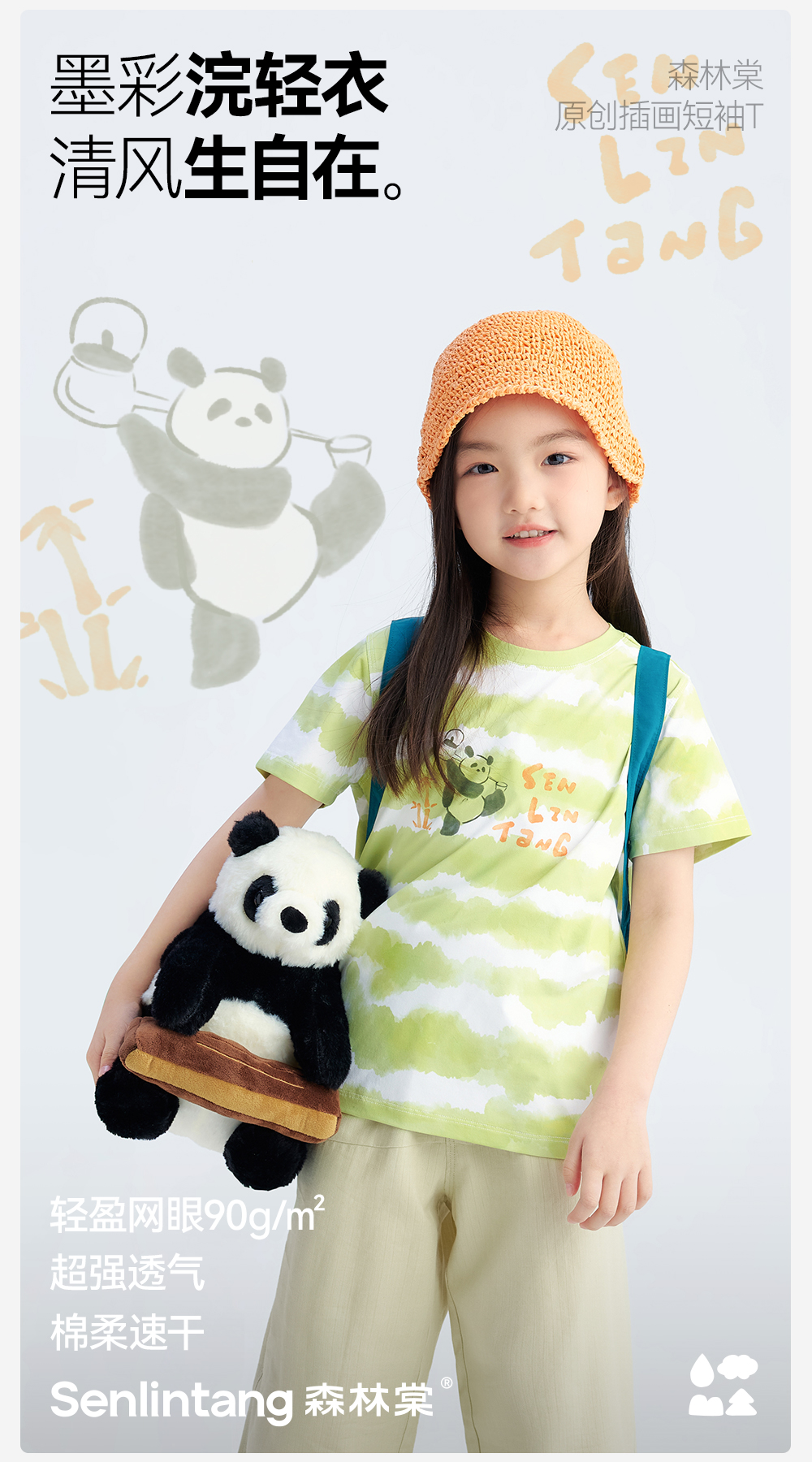 【超轻棉感速干短袖】森林棠26夏款中小童原创卡通插画印花圆领T恤40162256