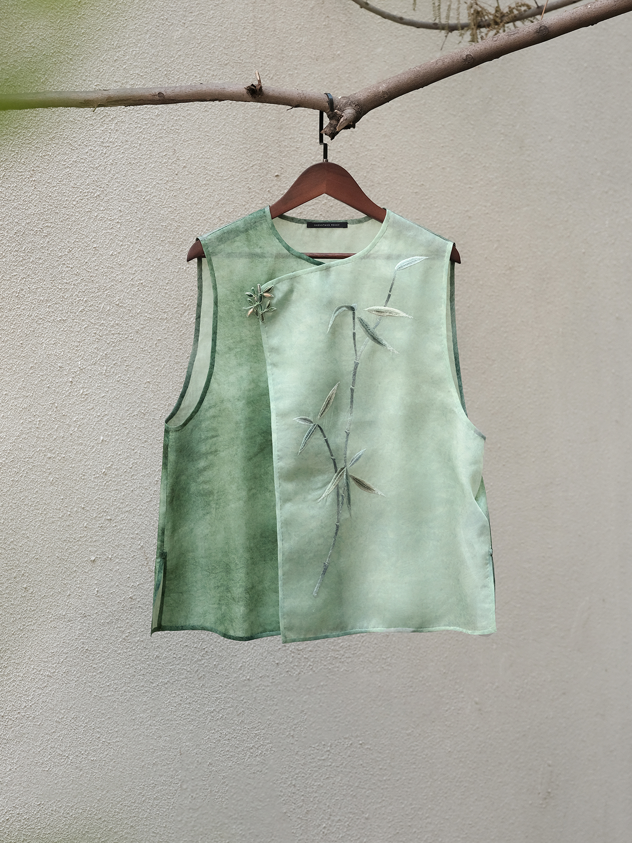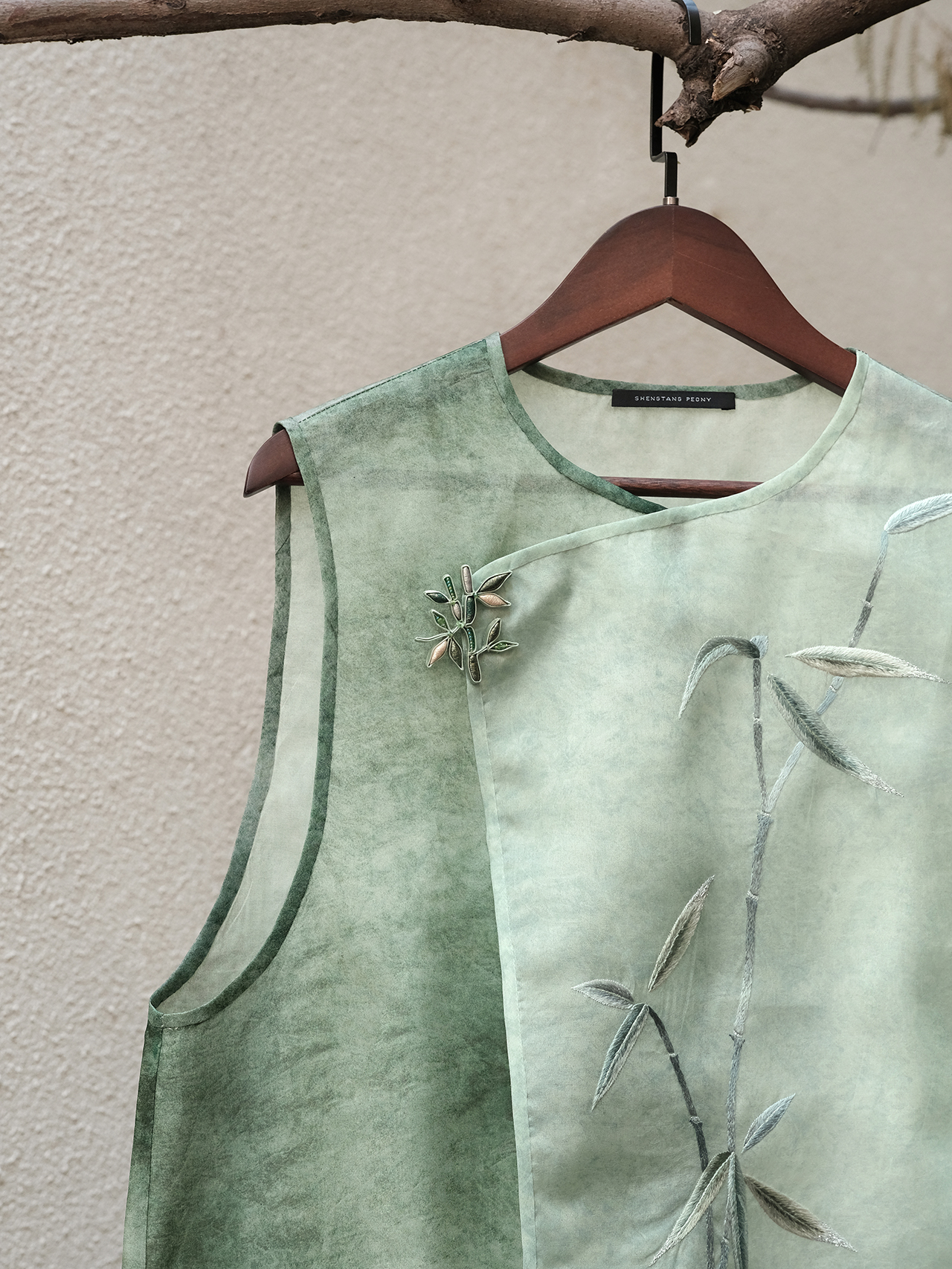盛唐牡丹盛奢系列 | 文竹手绣炒色真丝绡马甲