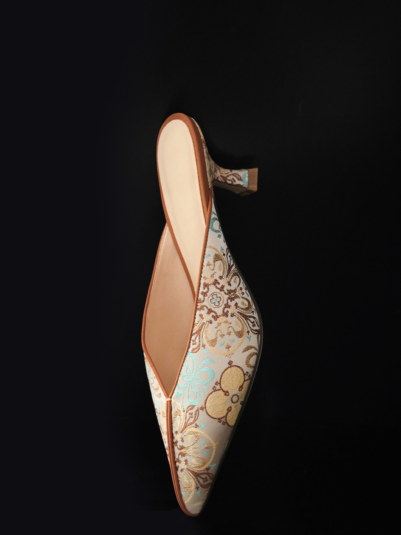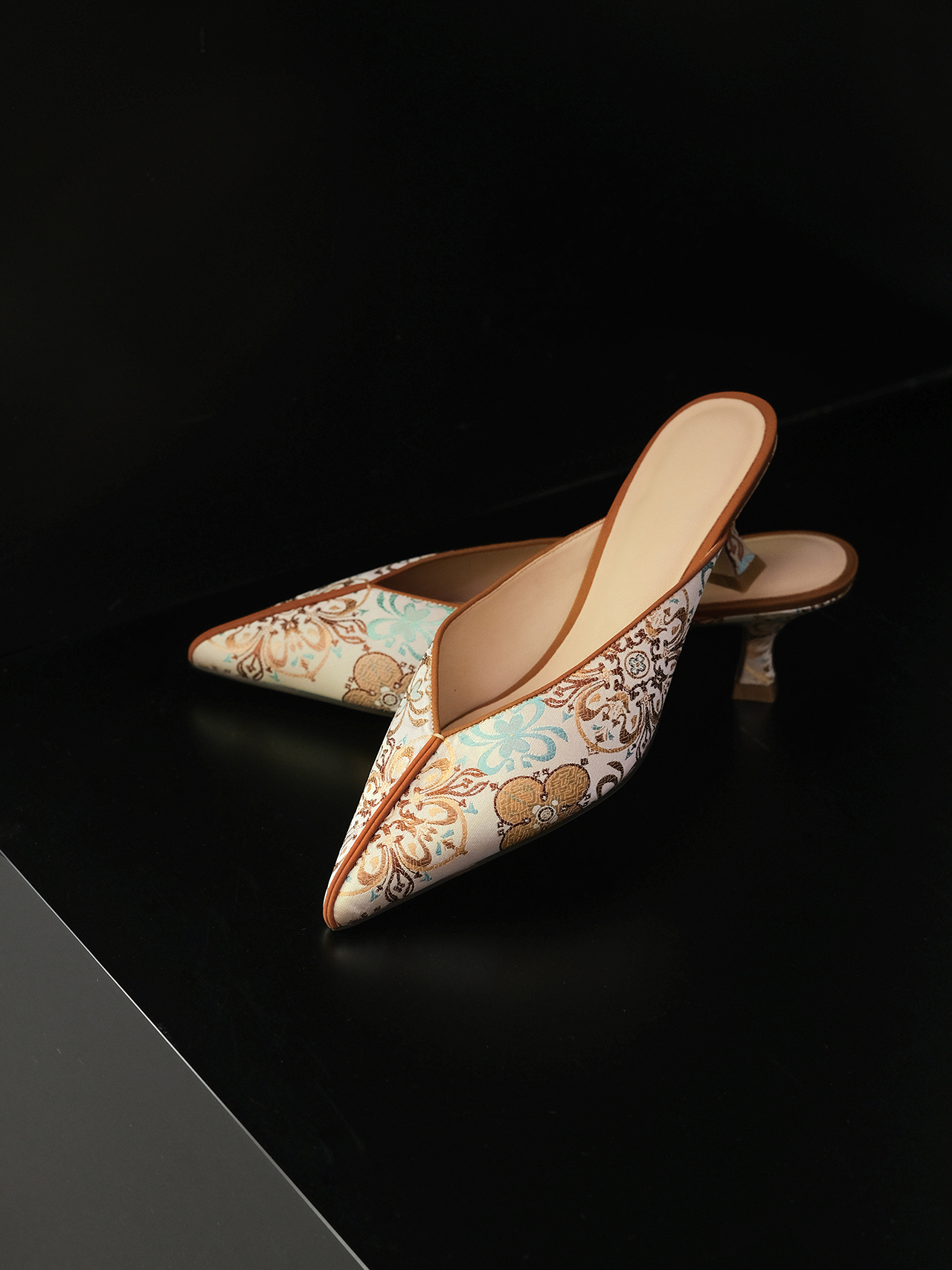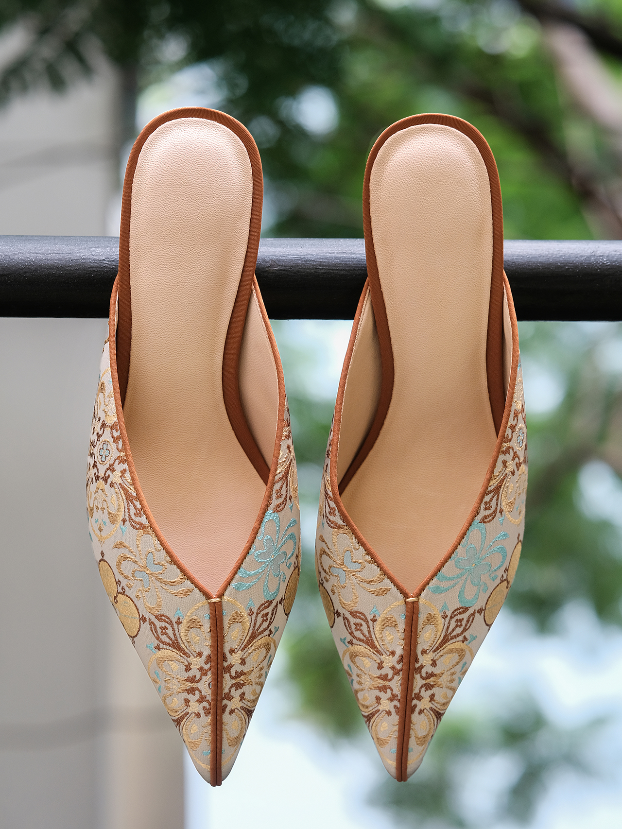 盛唐婧 |纯手工全皮真丝提花半拖鞋-紫灰(特殊商品不退不换)
