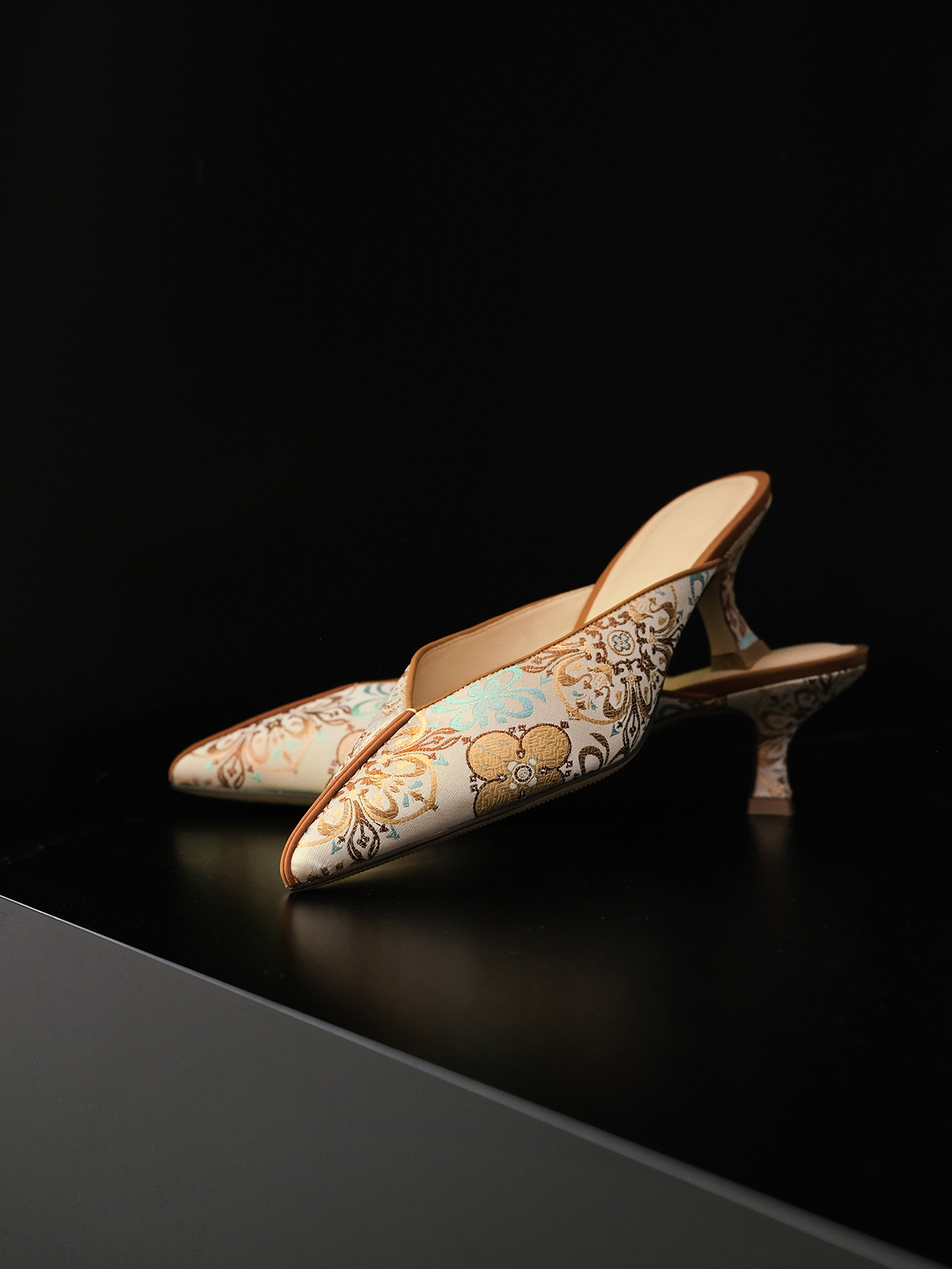 盛唐婧 |杜若-新中式手工羊皮穆勒鞋-橘色(特殊商品不退不换)-[特价品]