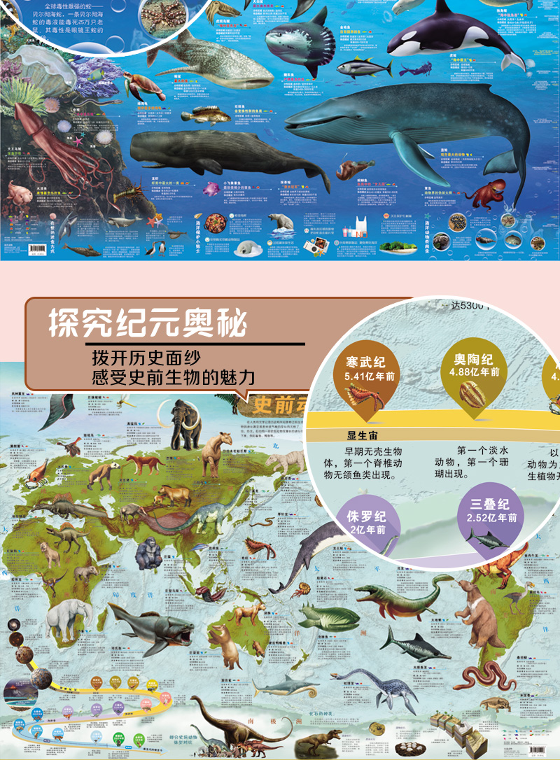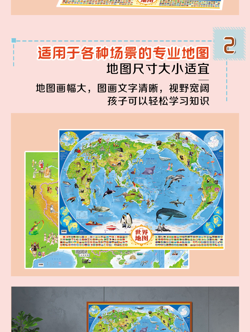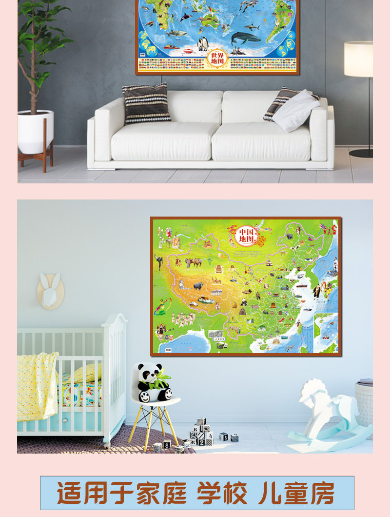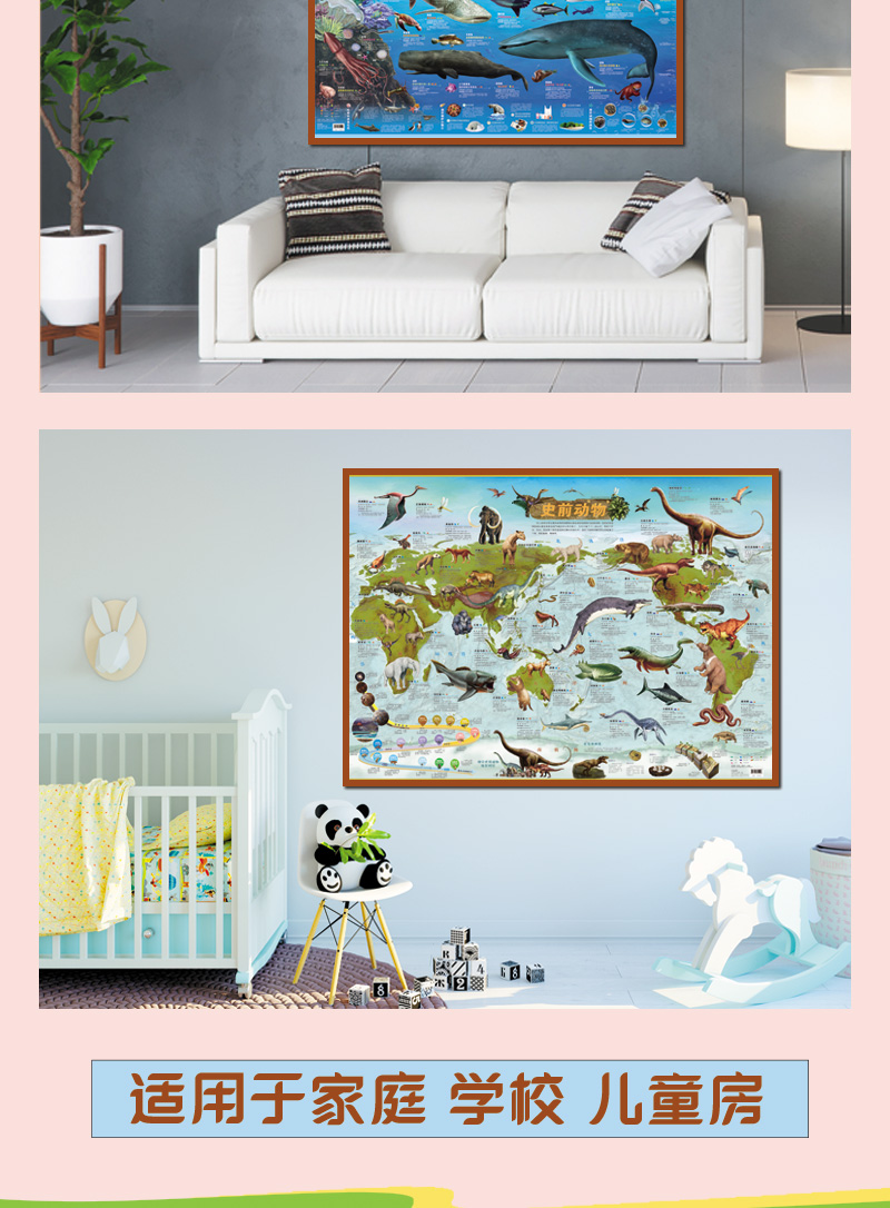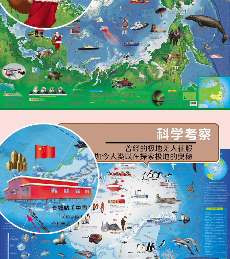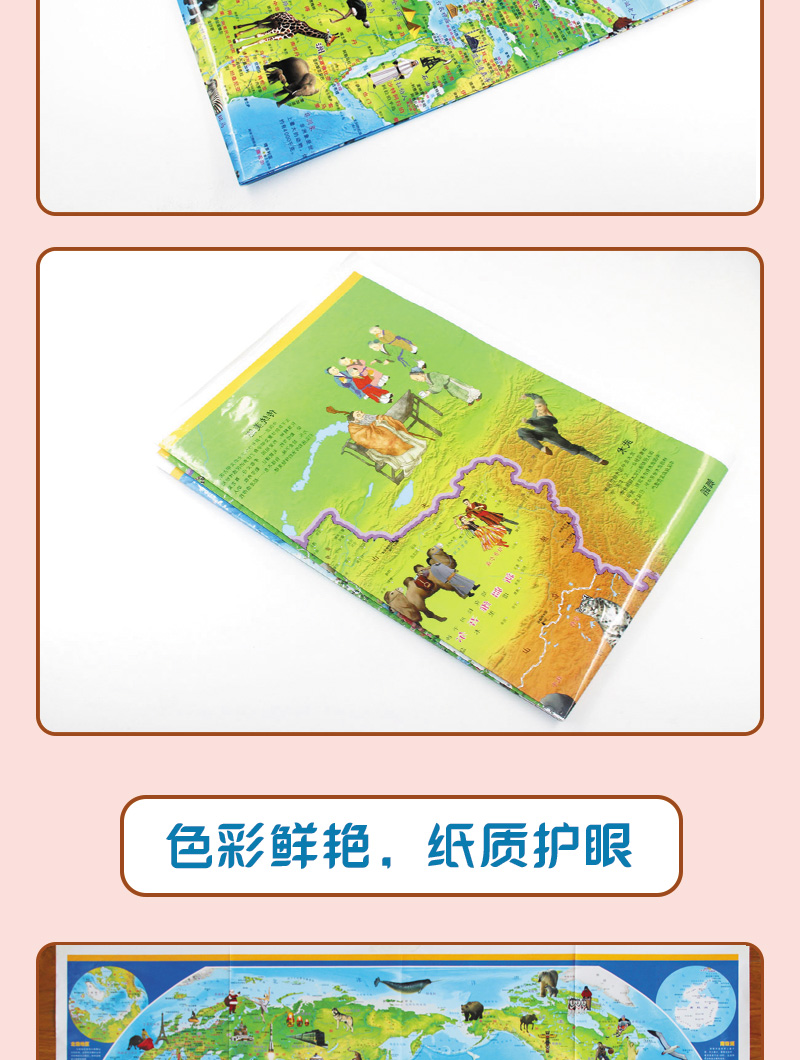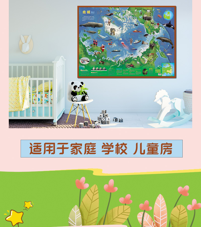 2022年中国世界地图太阳系中华民族北极南极史前海洋地图儿童房