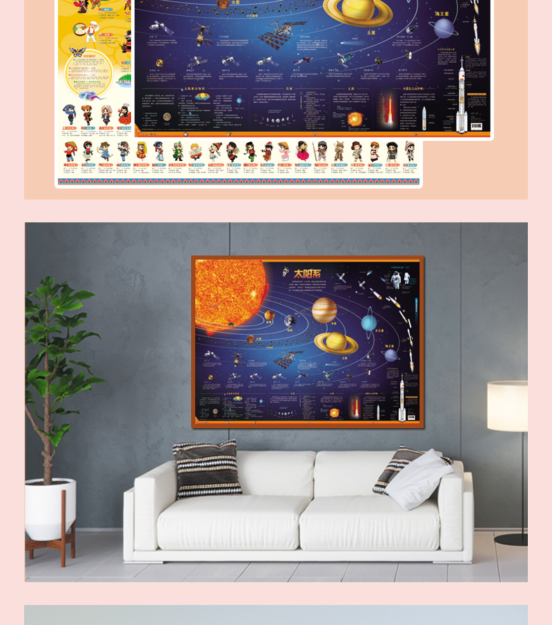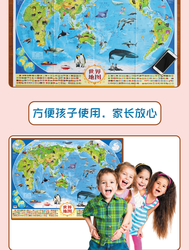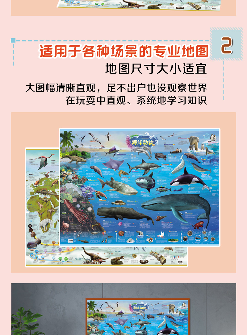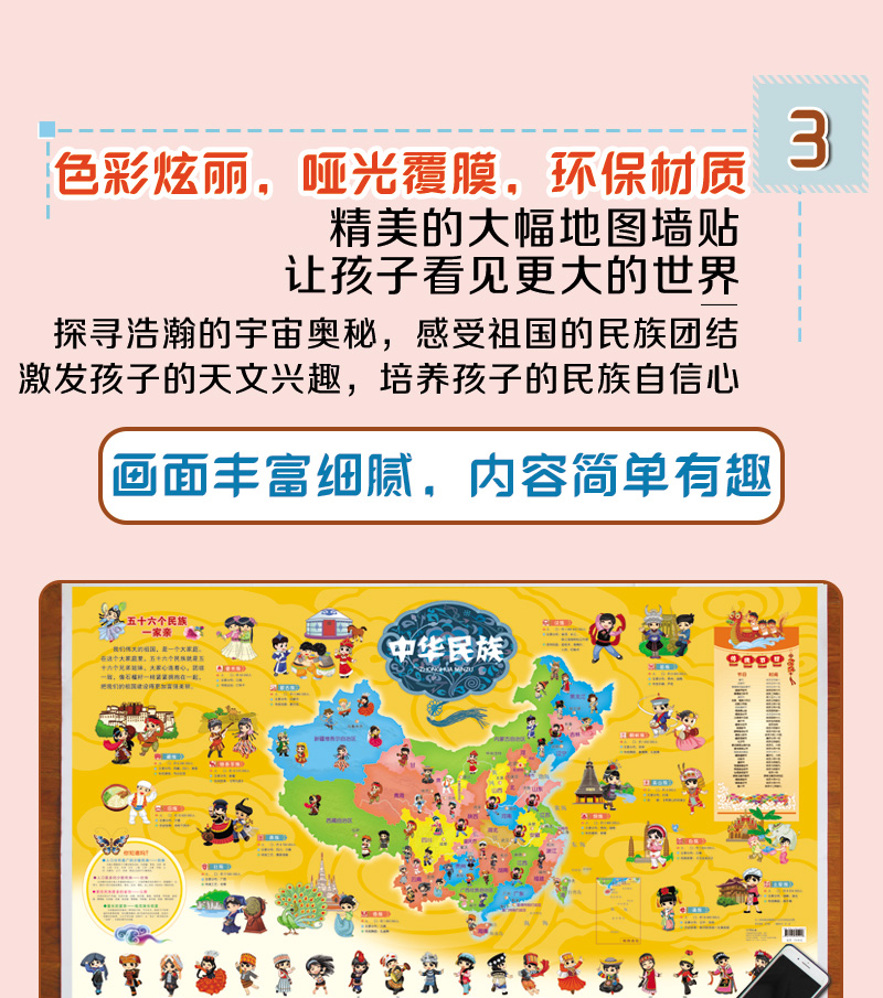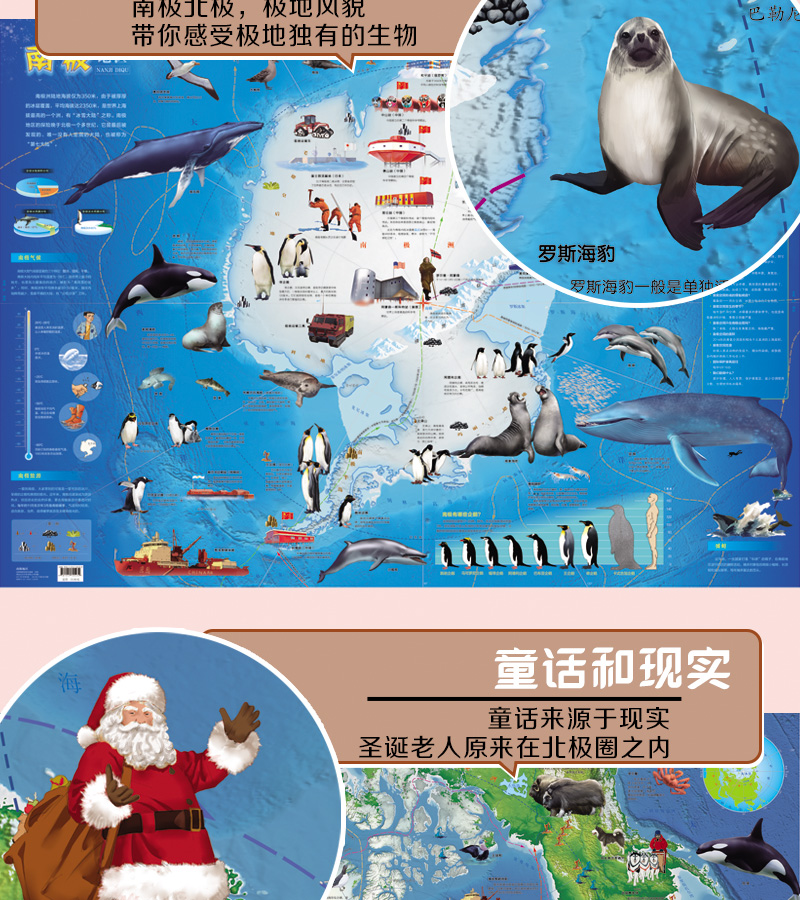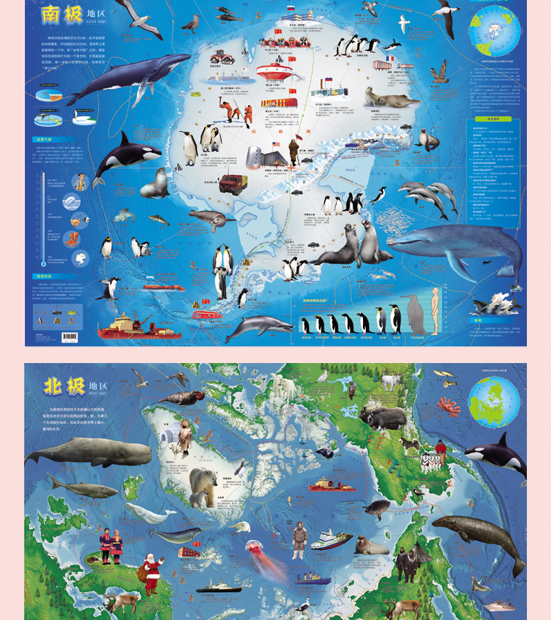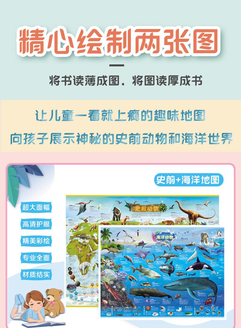 2022年中国世界地图太阳系中华民族北极南极史前海洋地图儿童房