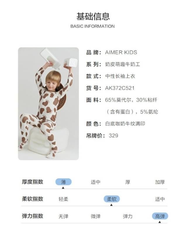 【春上新】8楼爱慕儿童Aimer Kids奶皮萌趣牛奶工长袖上衣AK372C521,吊牌价329元