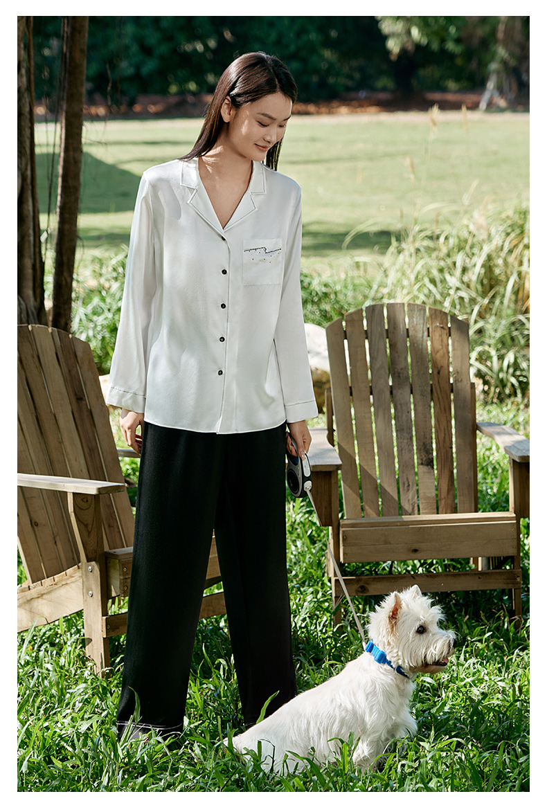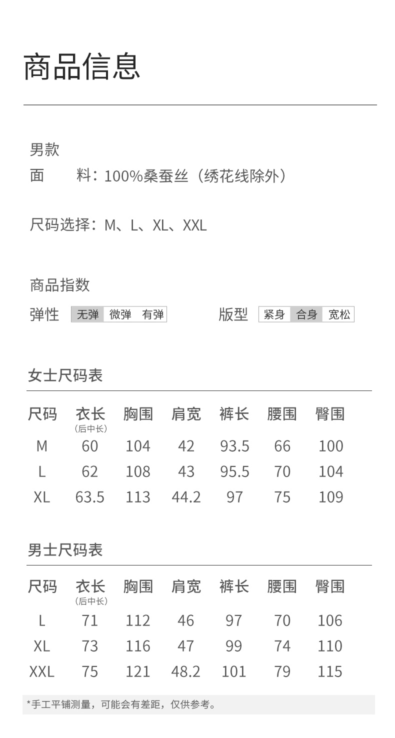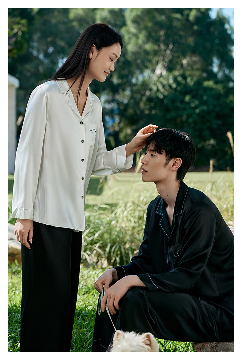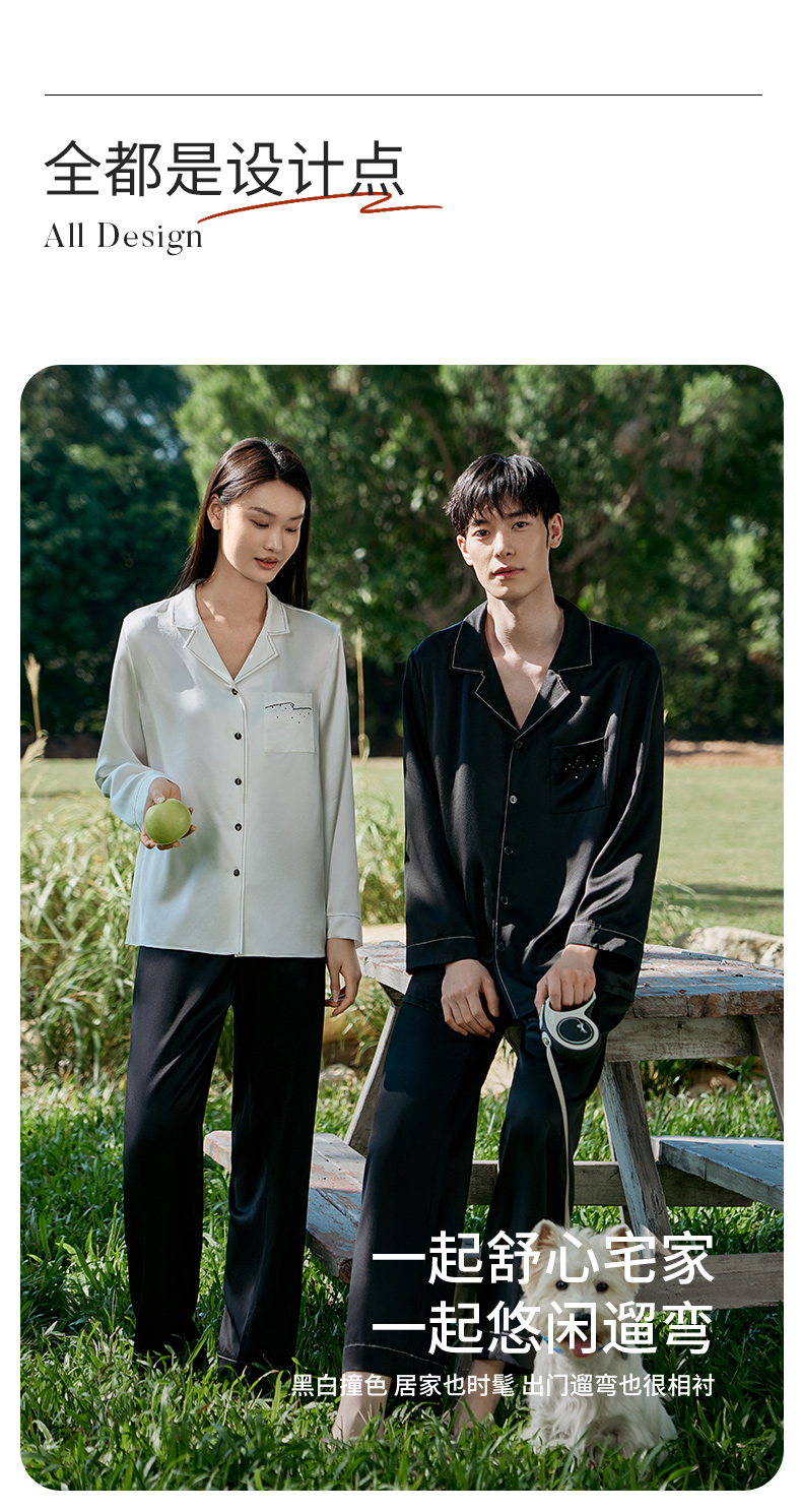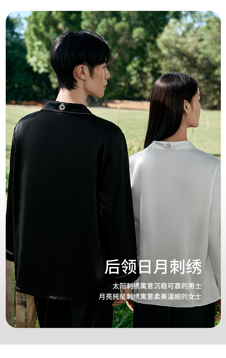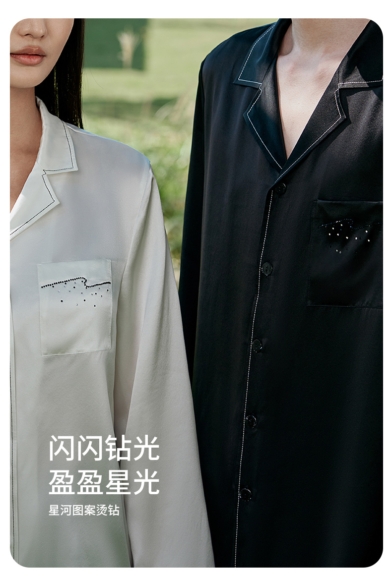 礼物重磅真丝睡衣情侣款100%桑蚕丝烫钻刺绣高级感家居服金三塔 YSFFA210/YSMFA204