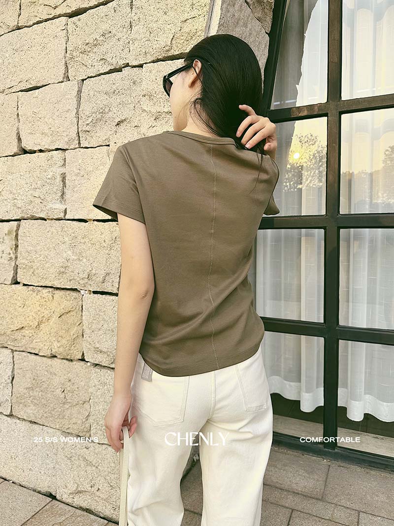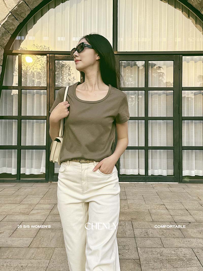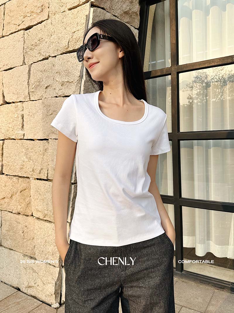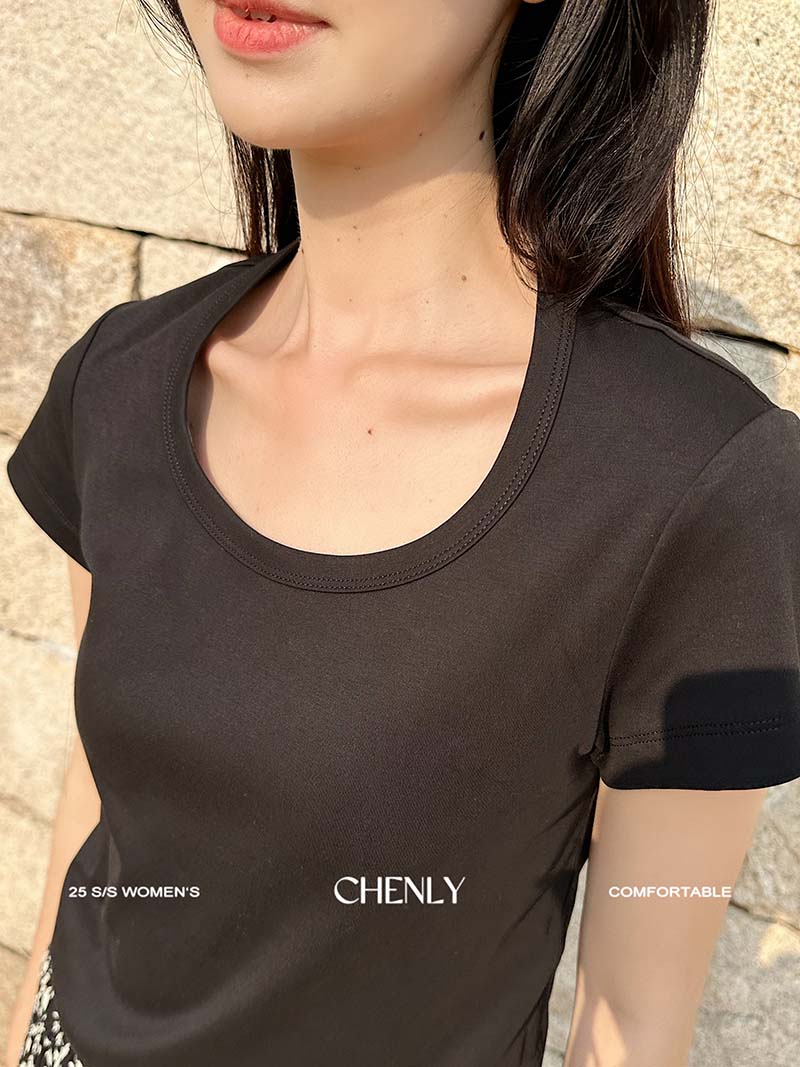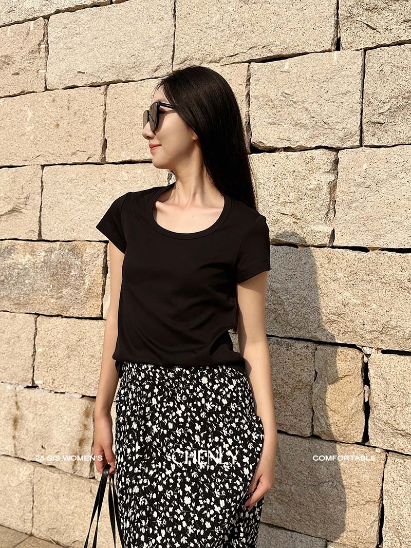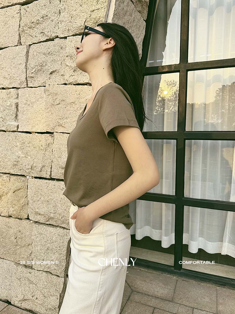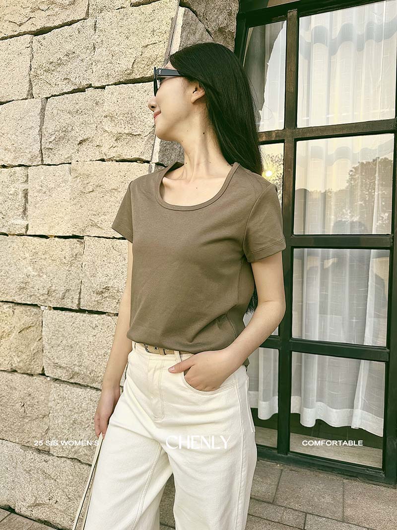不退不换!尘衣|25春夏显瘦U领匹马棉短袖
