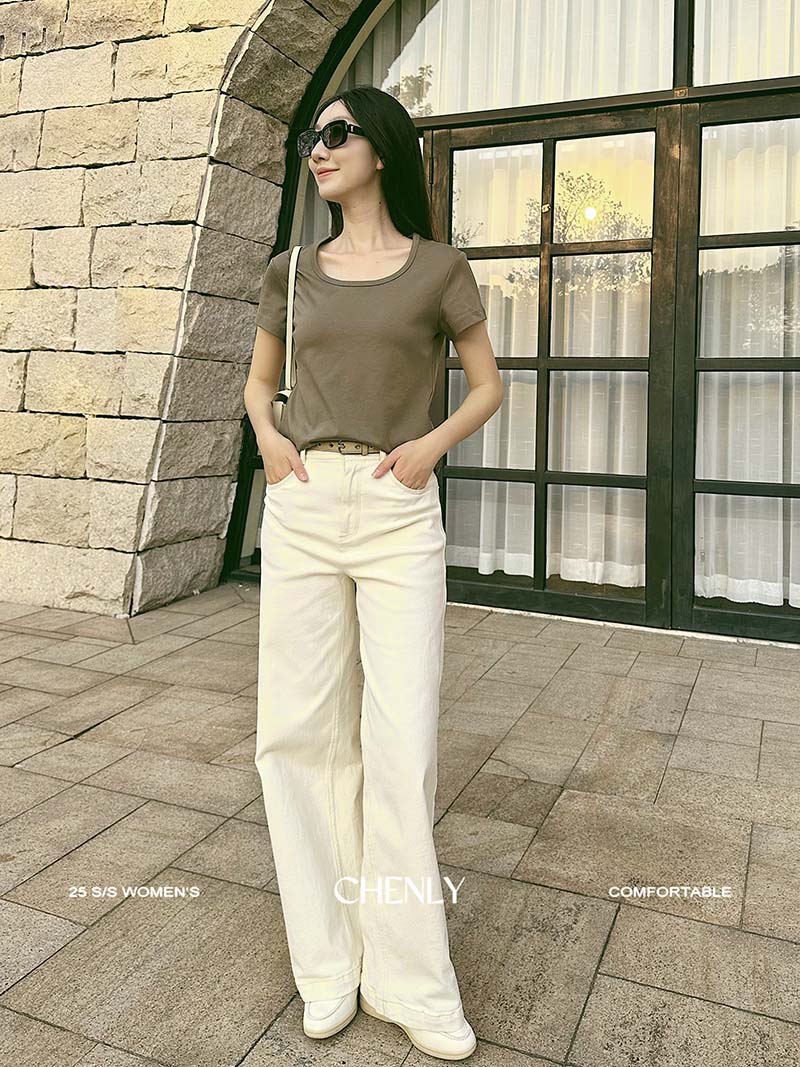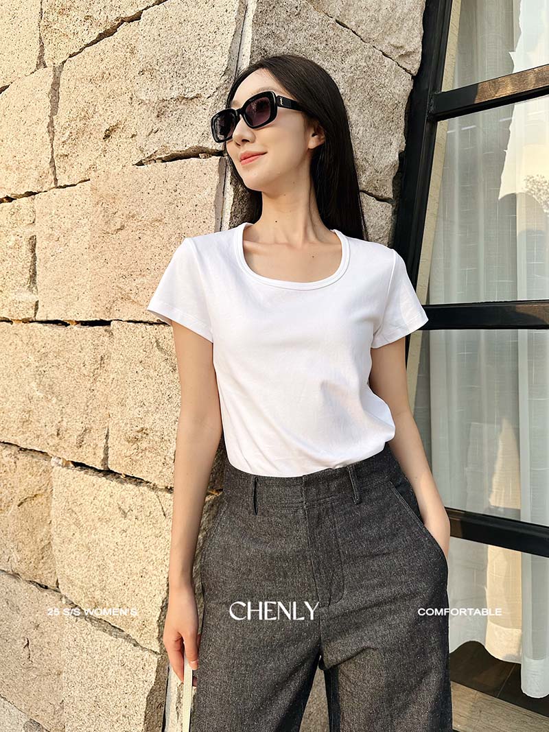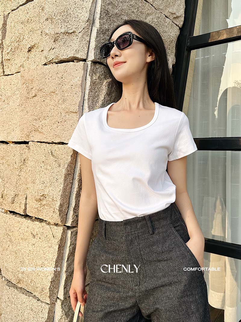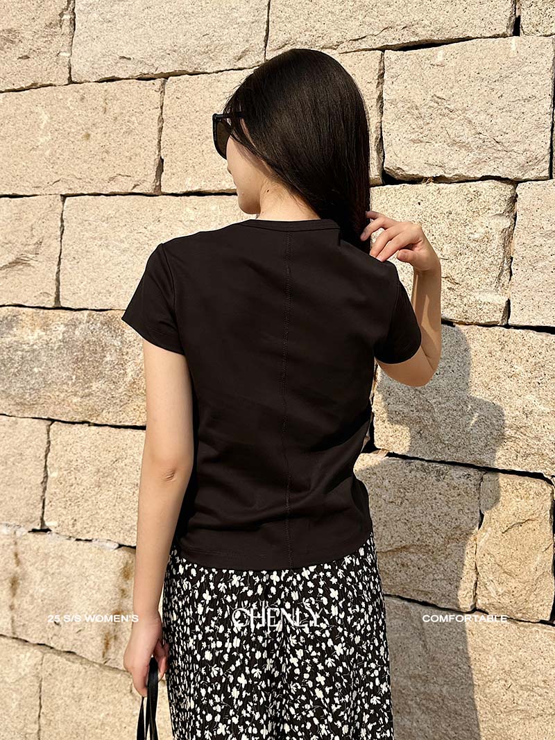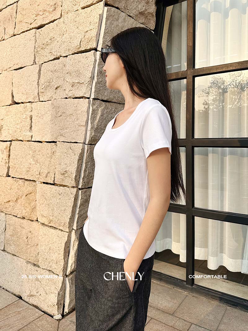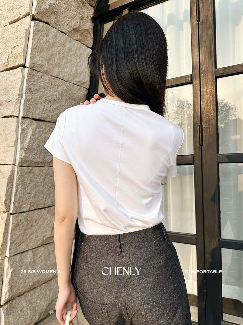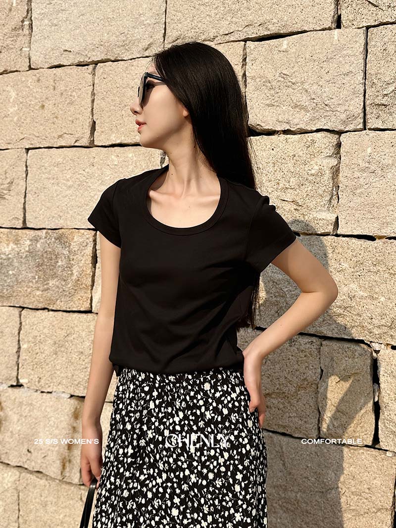 不退不换!尘衣|25春夏显瘦U领匹马棉短袖