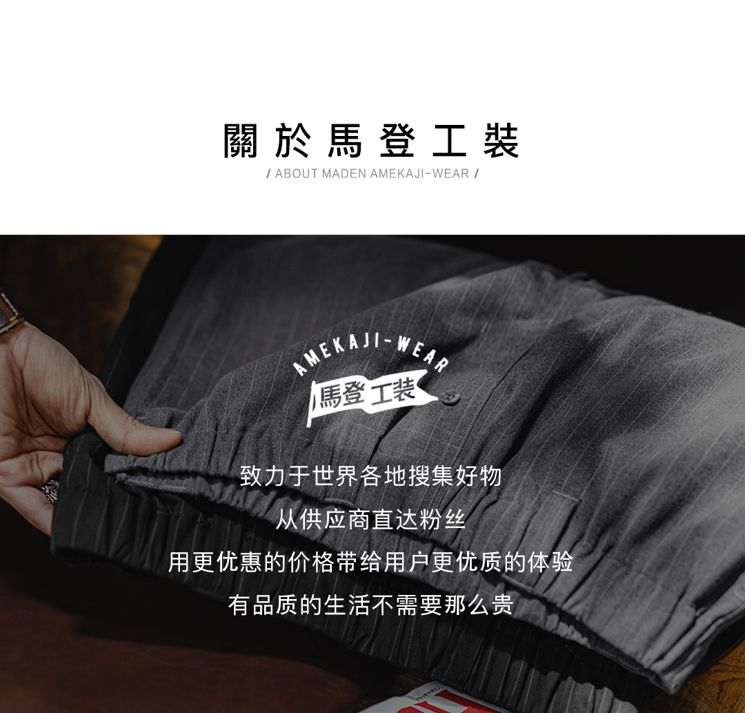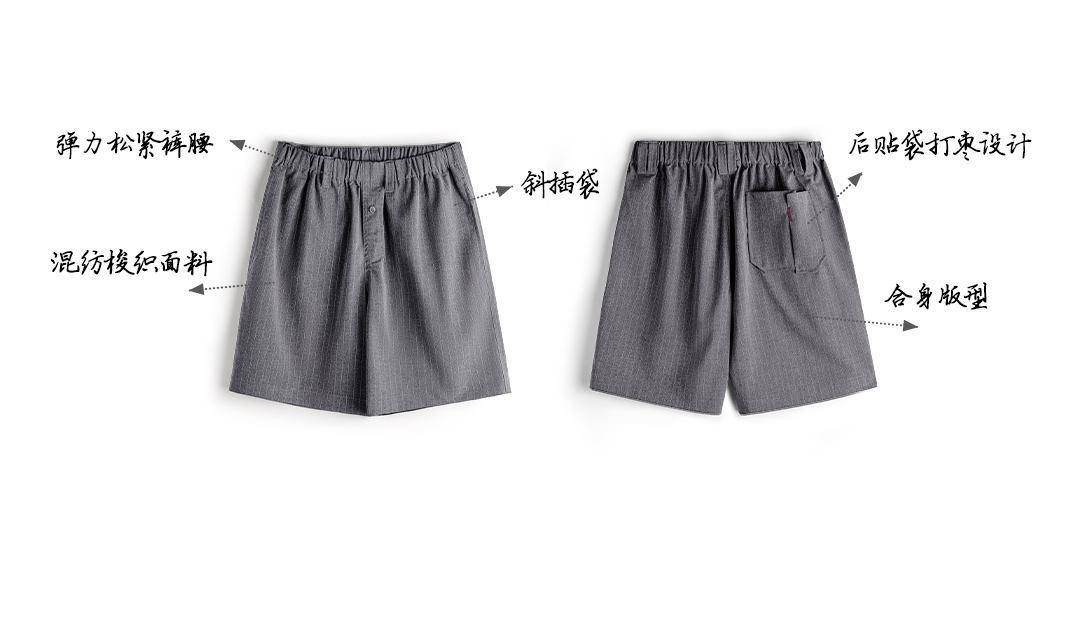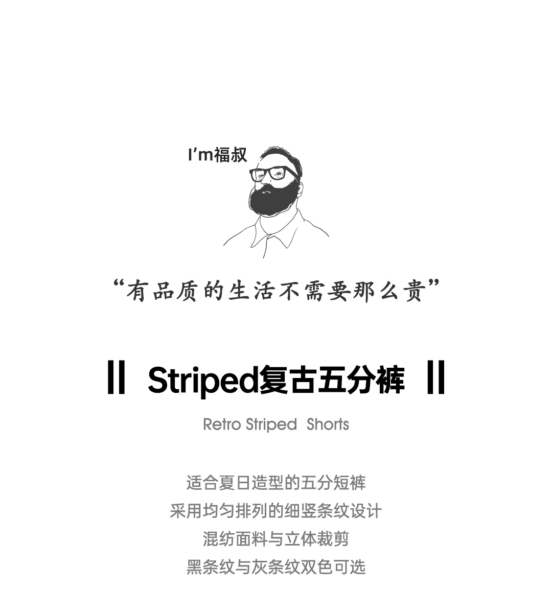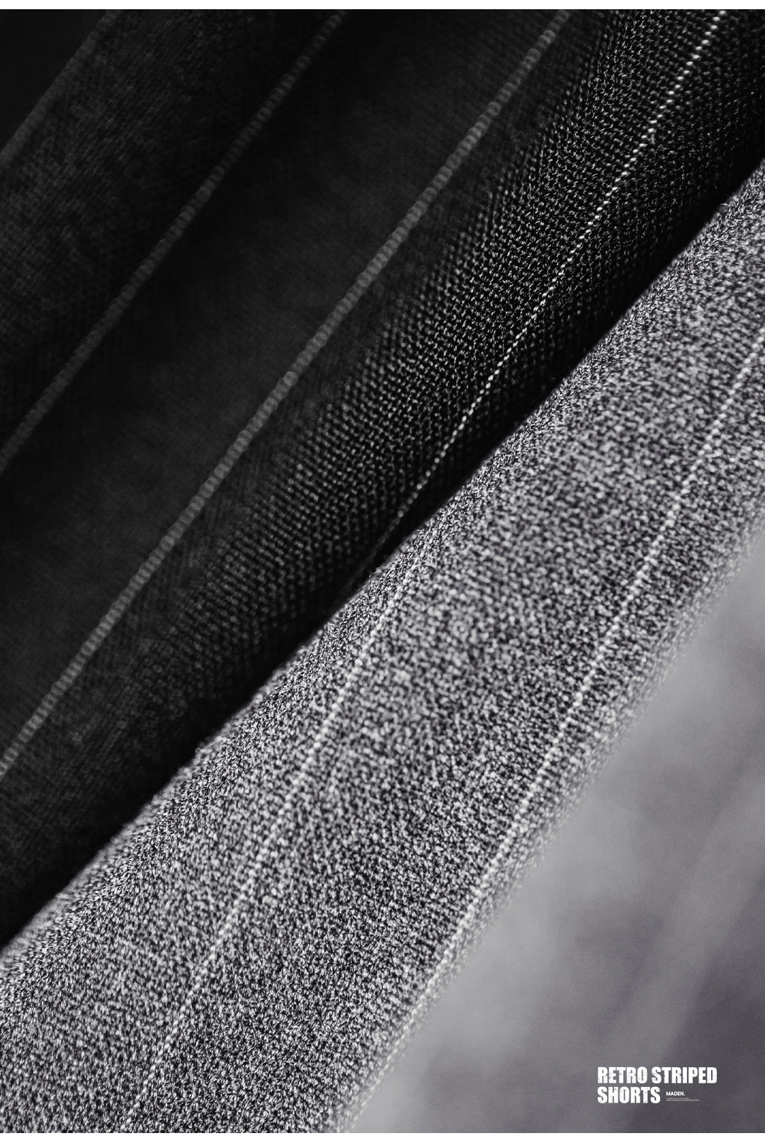 马登工装日系竖条纹灰色西装短裤cityboy松紧腰直筒五分裤男夏季