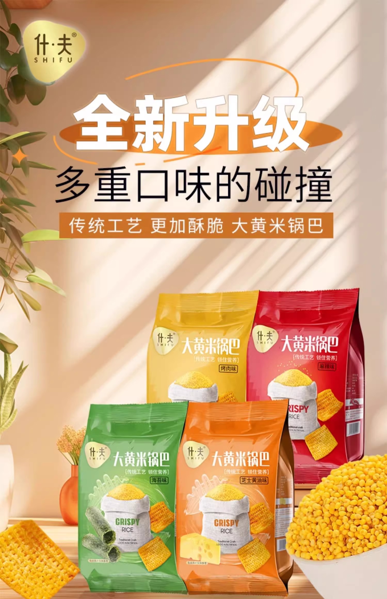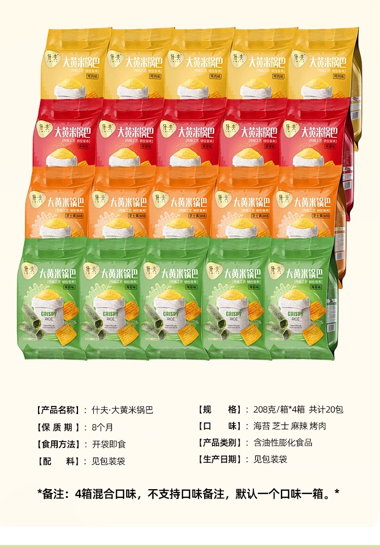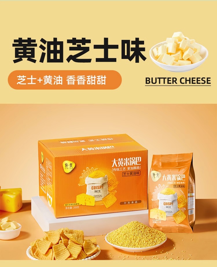 【休闲零食】什夫大黄米锅巴芝士黄油/海苔/麻辣/烤肉多口味可选 208g/盒