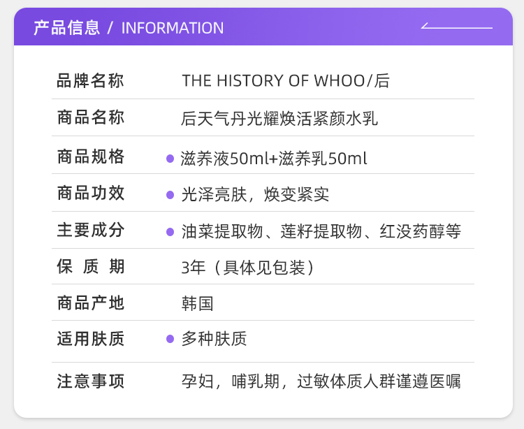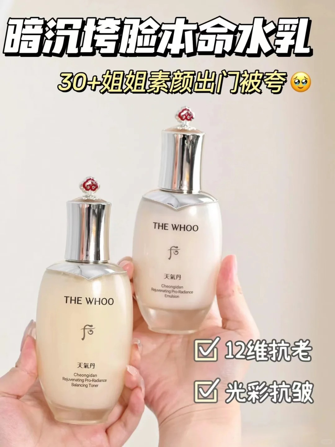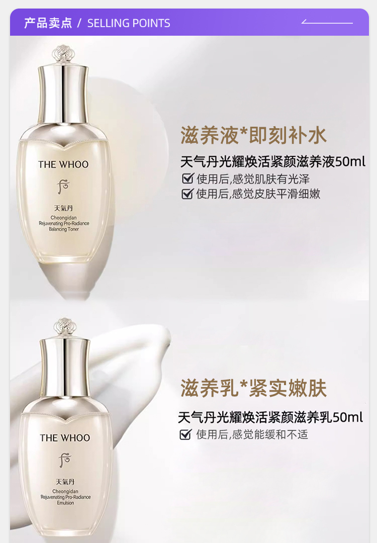 【超值中样】Whoo后天气丹焕活紧颜水乳两件套PRO新版滋养液50ml+滋养乳50ml