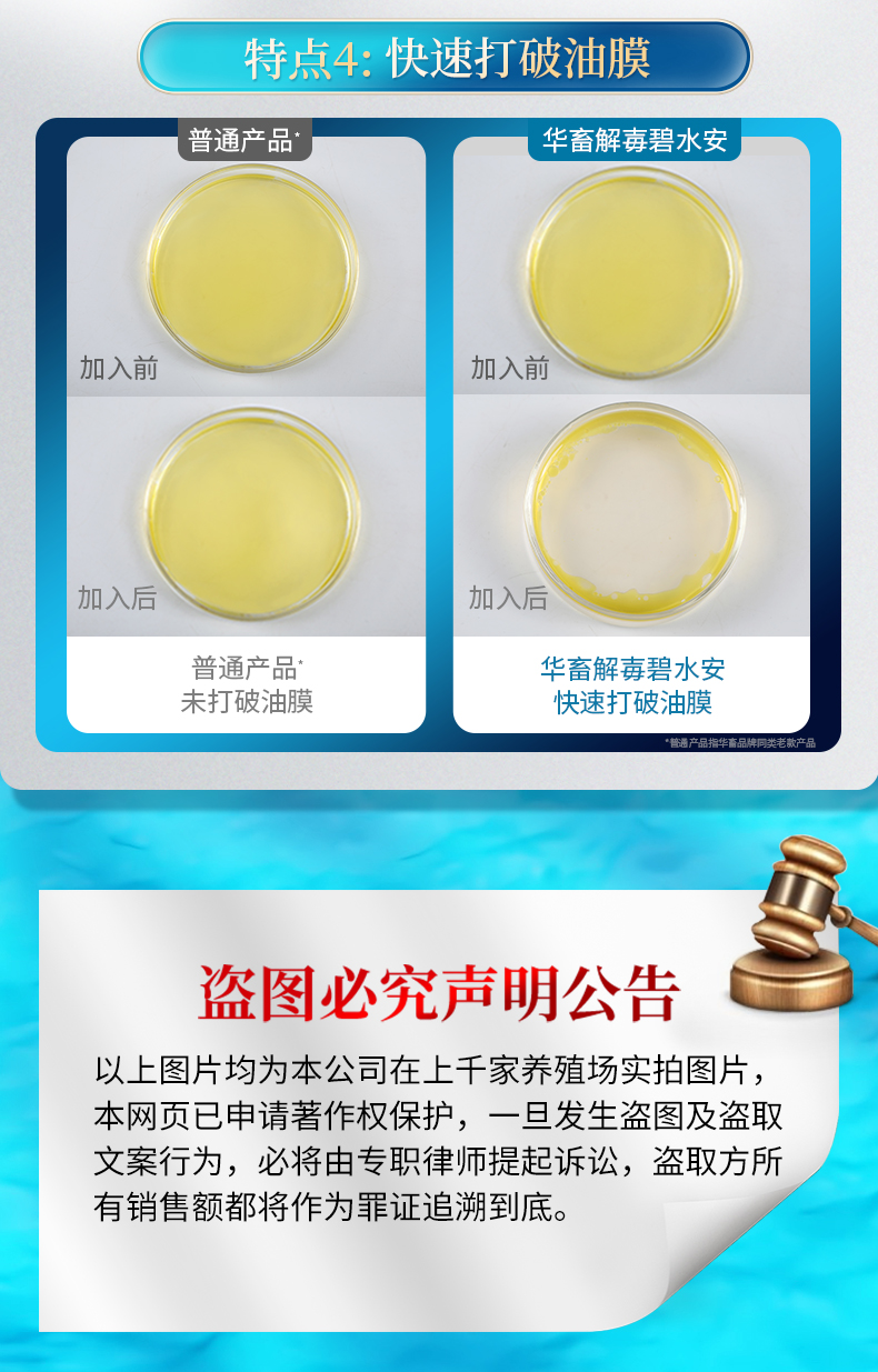 【社群专享】华畜解毒碧水安 有机酸 不刺激 快速打破油膜