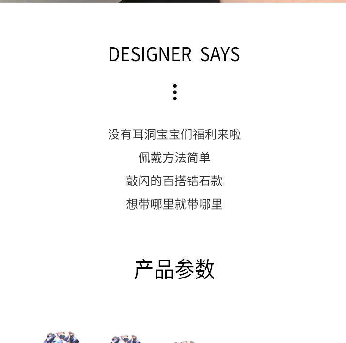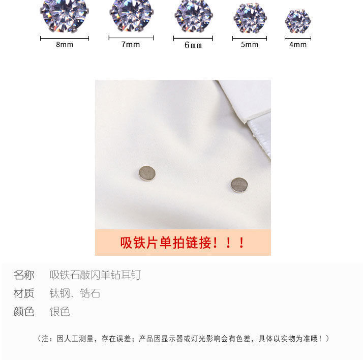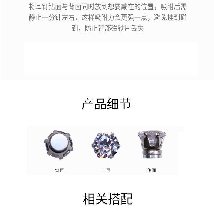 锆石磁吸耳蜗钉无耳洞女免打孔耳骨夹耳钉耳吸铁石 夹耳式