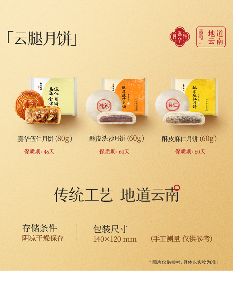 【嘉华月饼】 老云南系列 伍仁月饼/酥皮洗沙/酥皮麻仁 云南特产 中秋月饼 糕点 零食