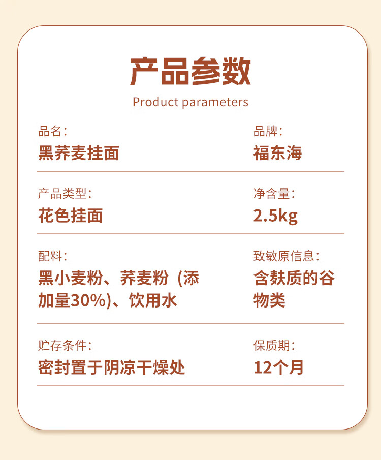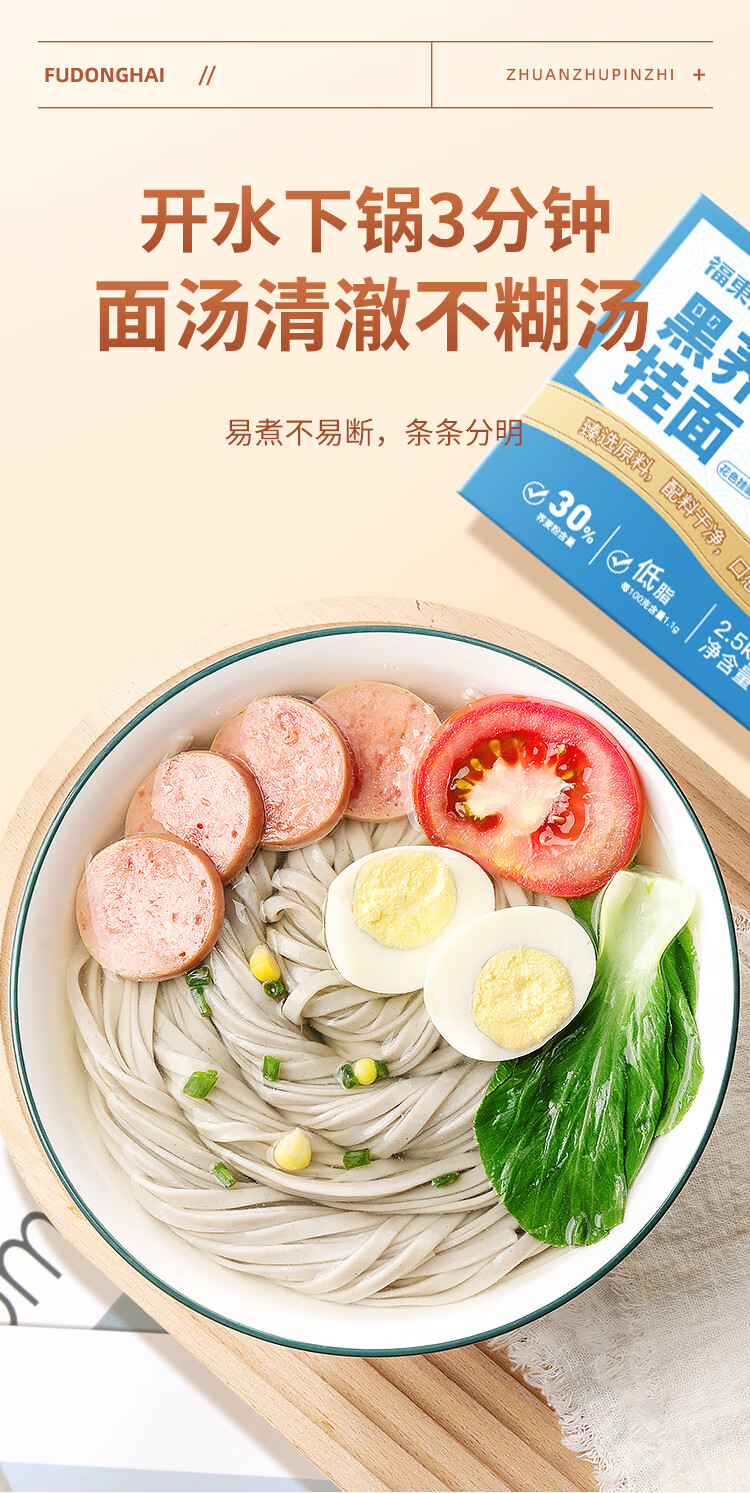 福东海 黑荞麦面【5斤装】挂面非油炸健身代餐杂粮粗粮面