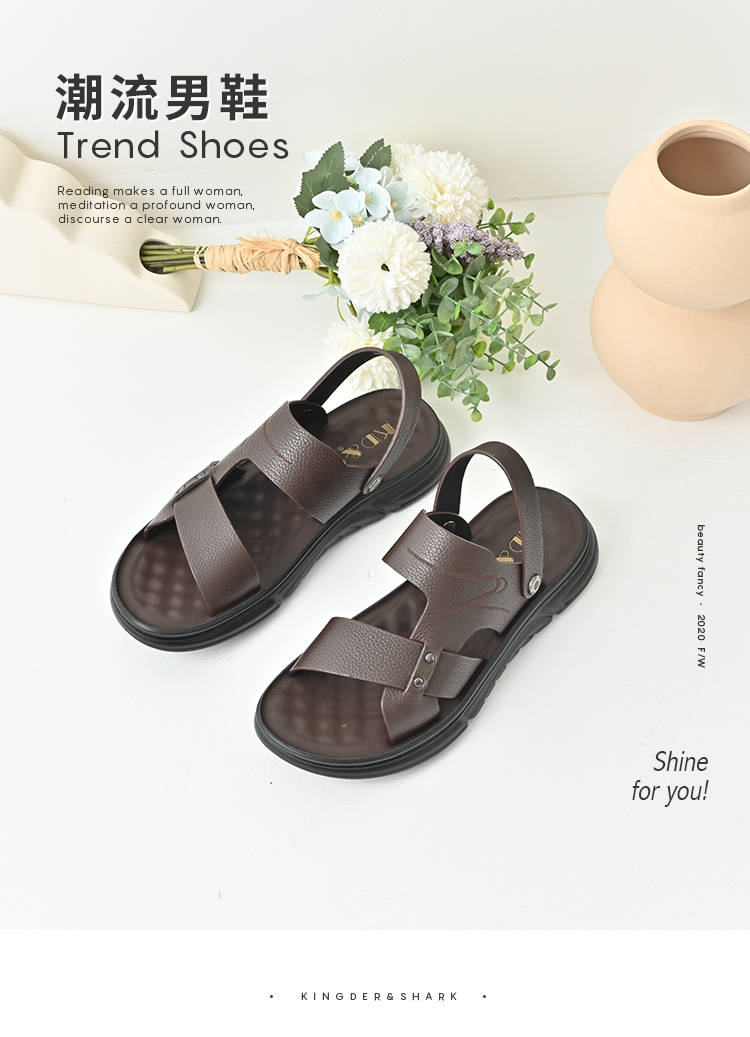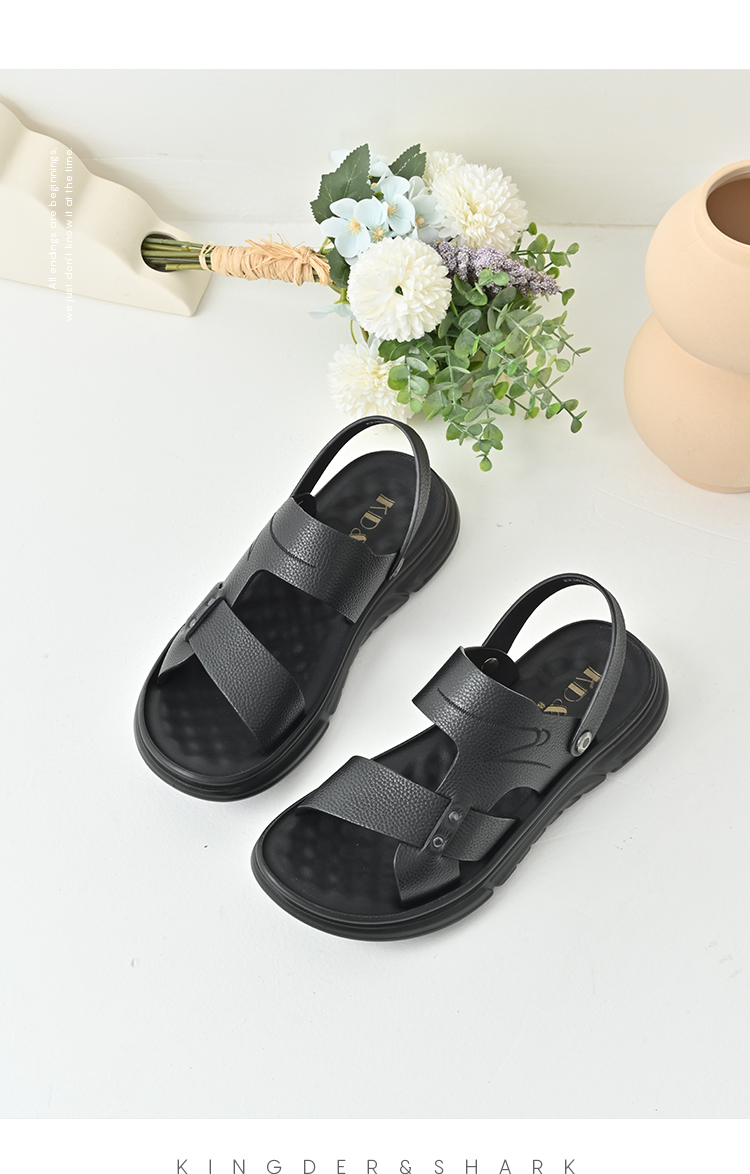 经典鲨2025年夏季新品男士平底露趾两穿凉鞋拖鞋KW262-526011