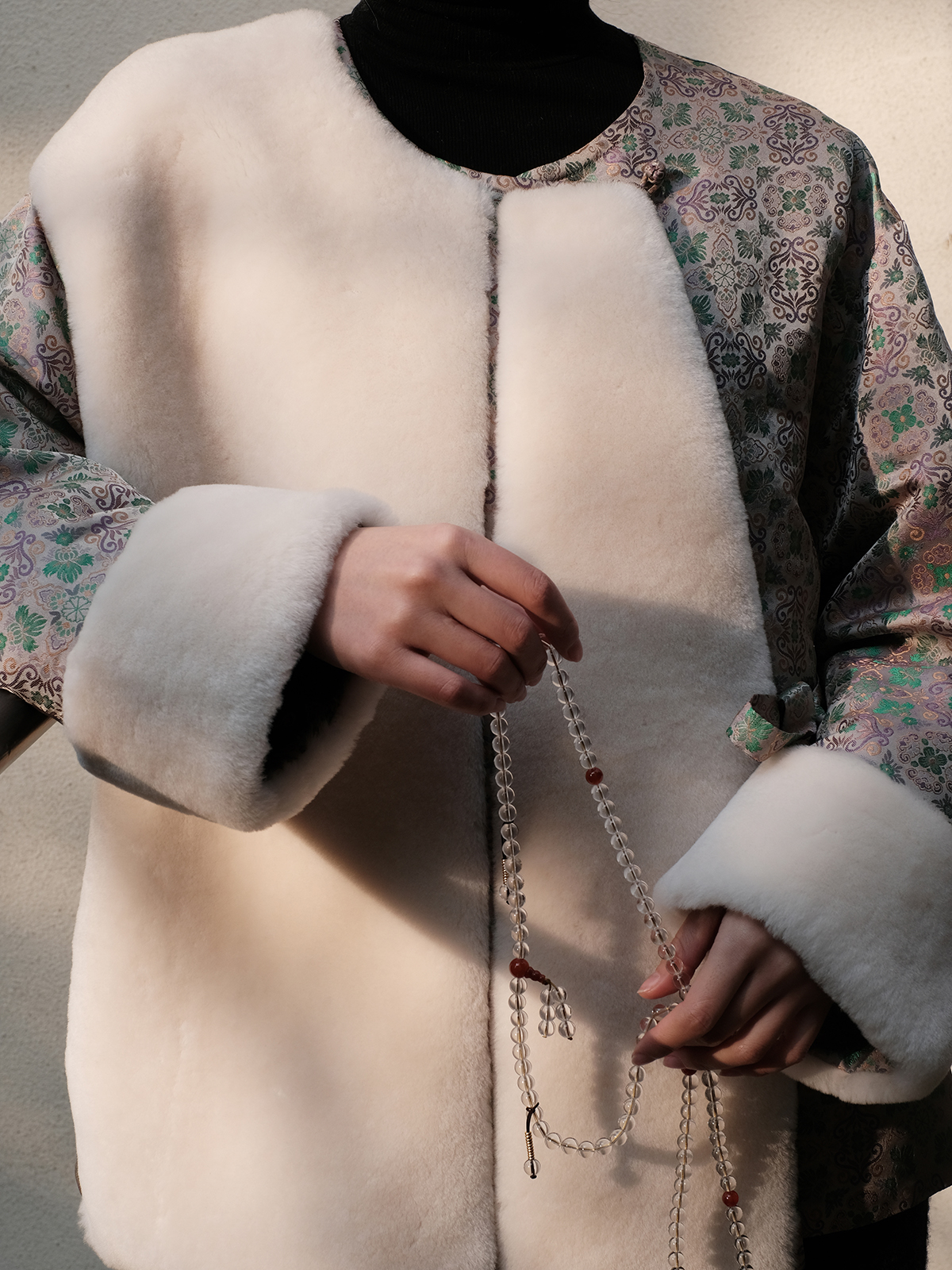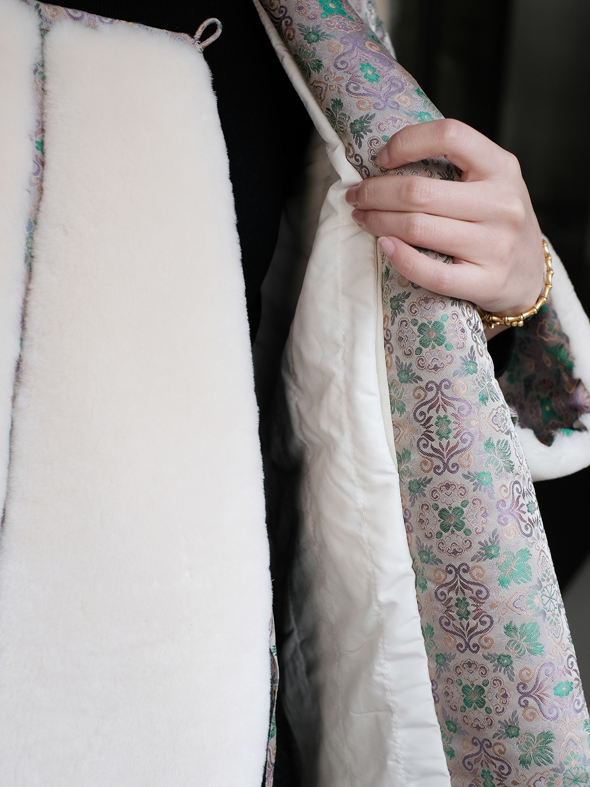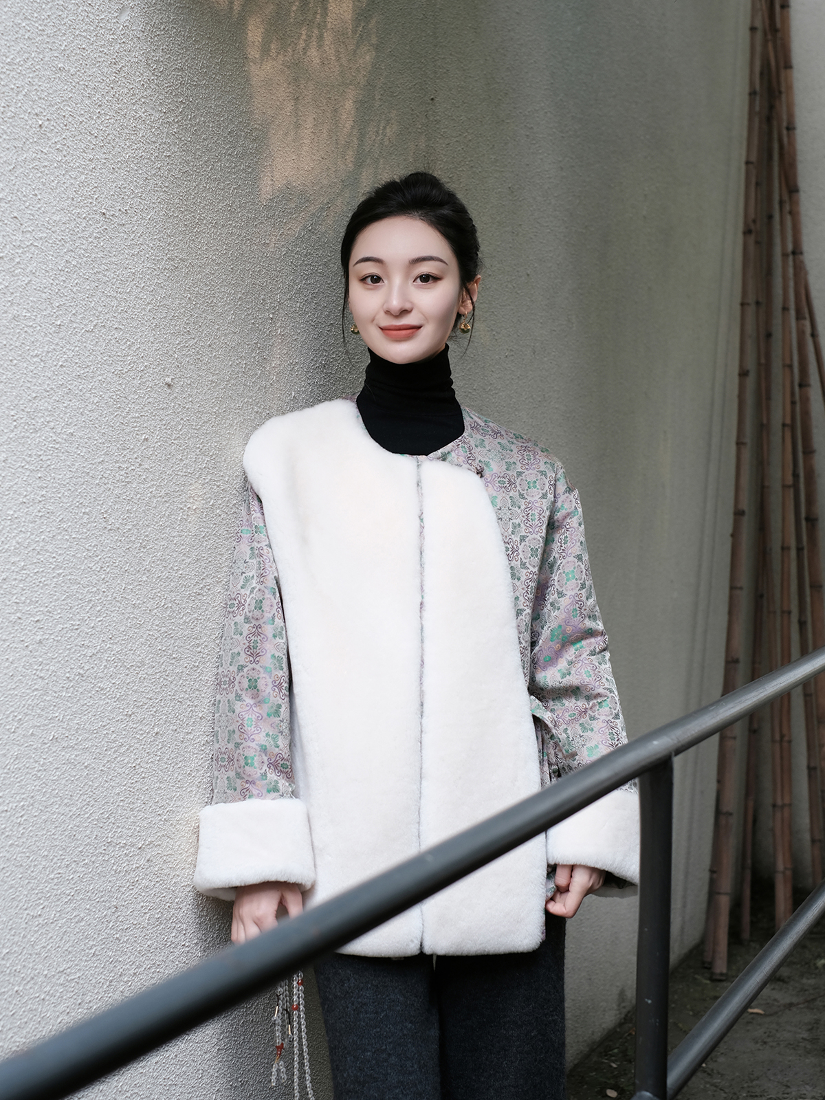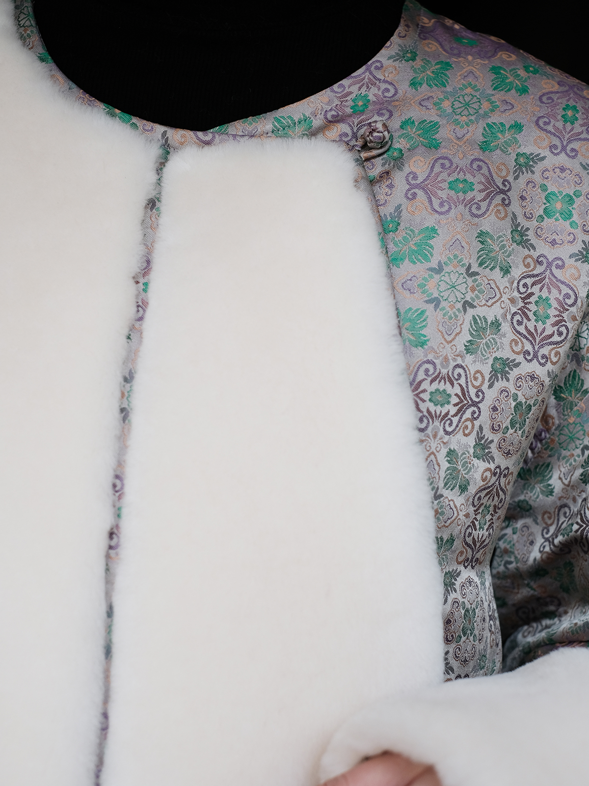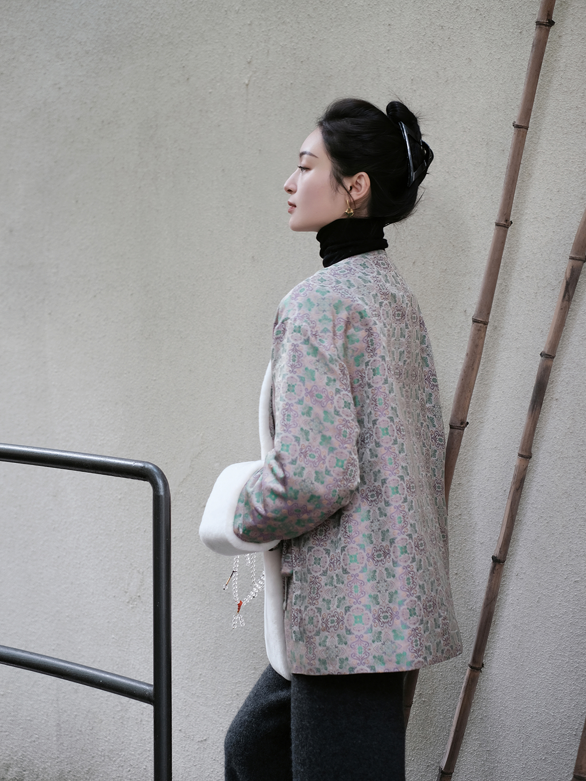 盛唐牡丹 |新中式重缎真丝宋锦羊毛外套