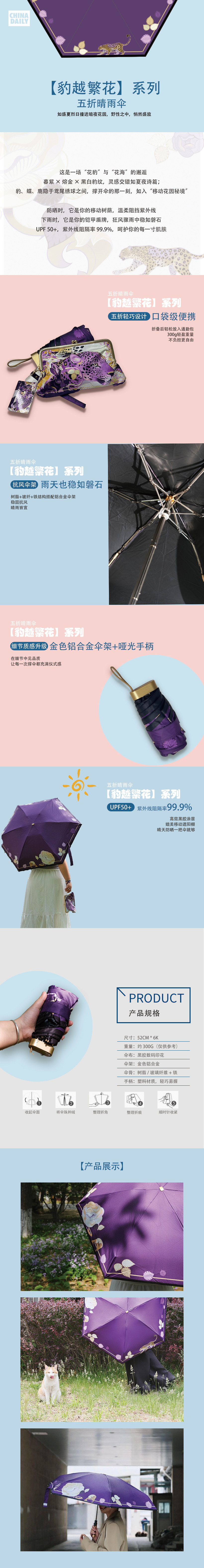 豹越繁花 五折晴雨伞