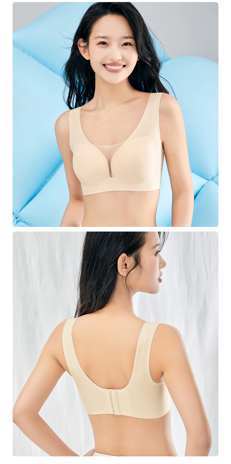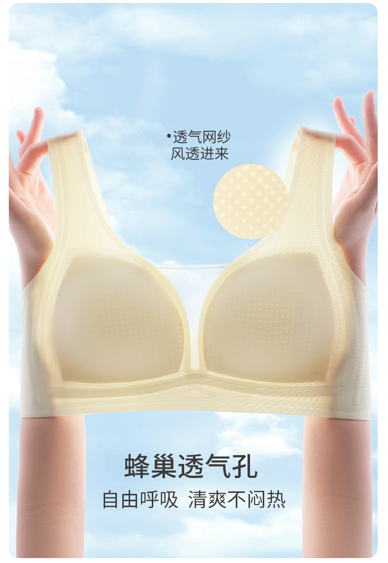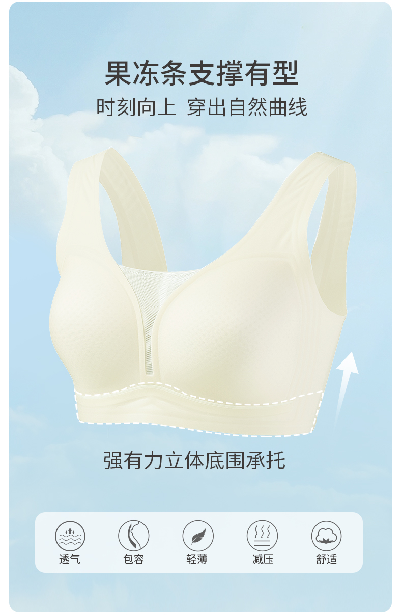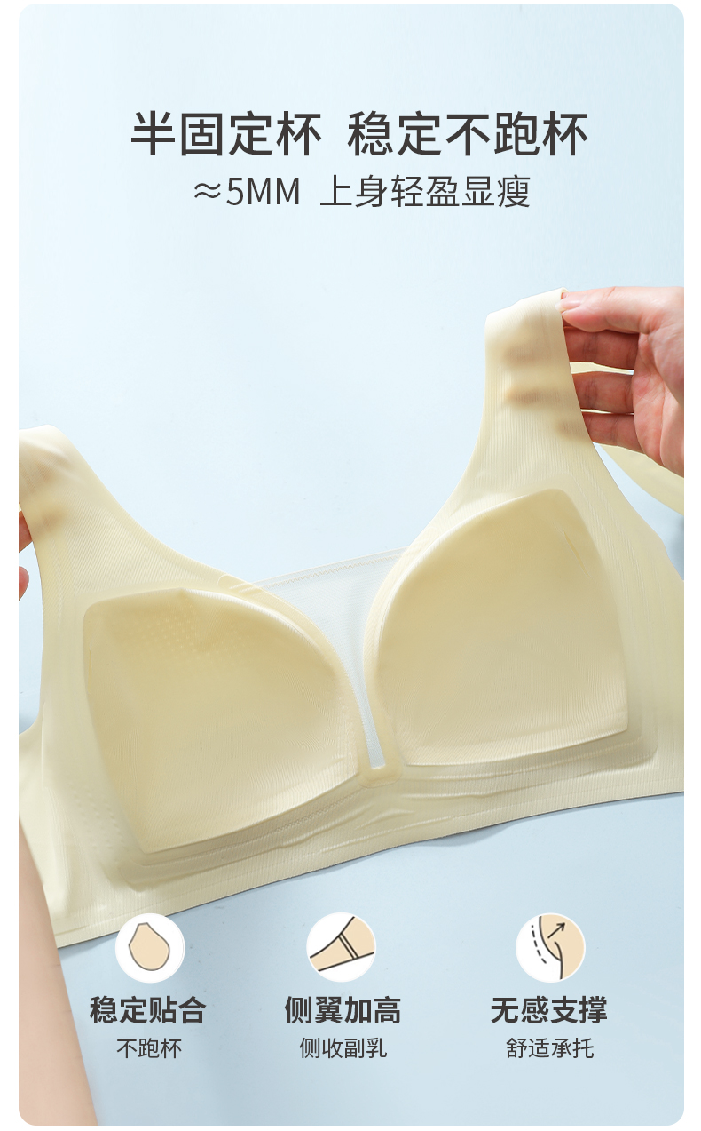 雅黛丽内衣女小胸薄款透气无痕裸感文胸果冻条软支撑晾感美背胸罩