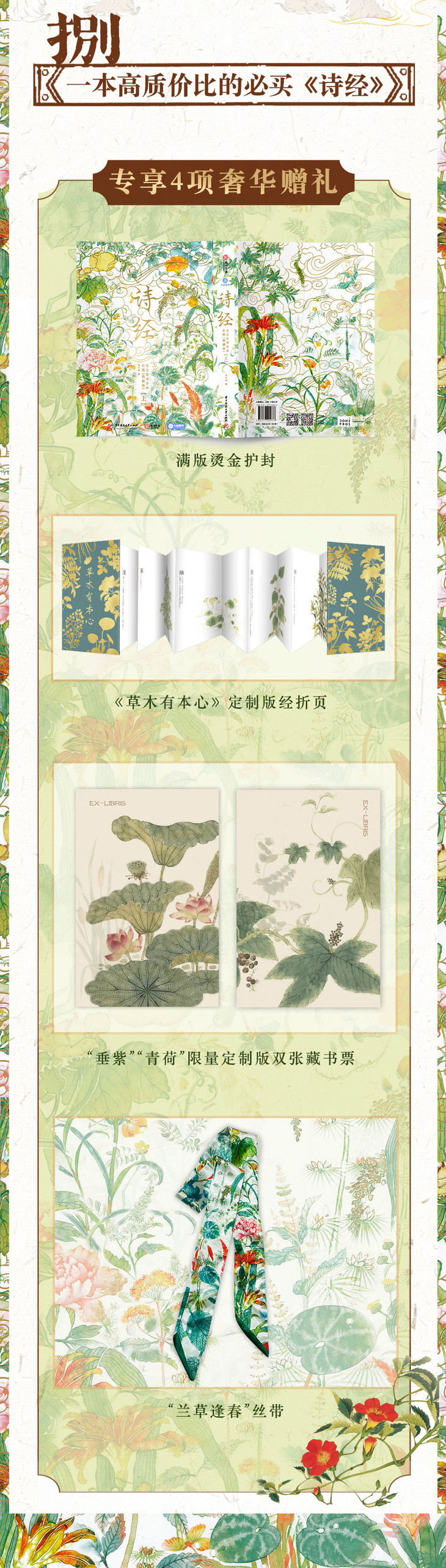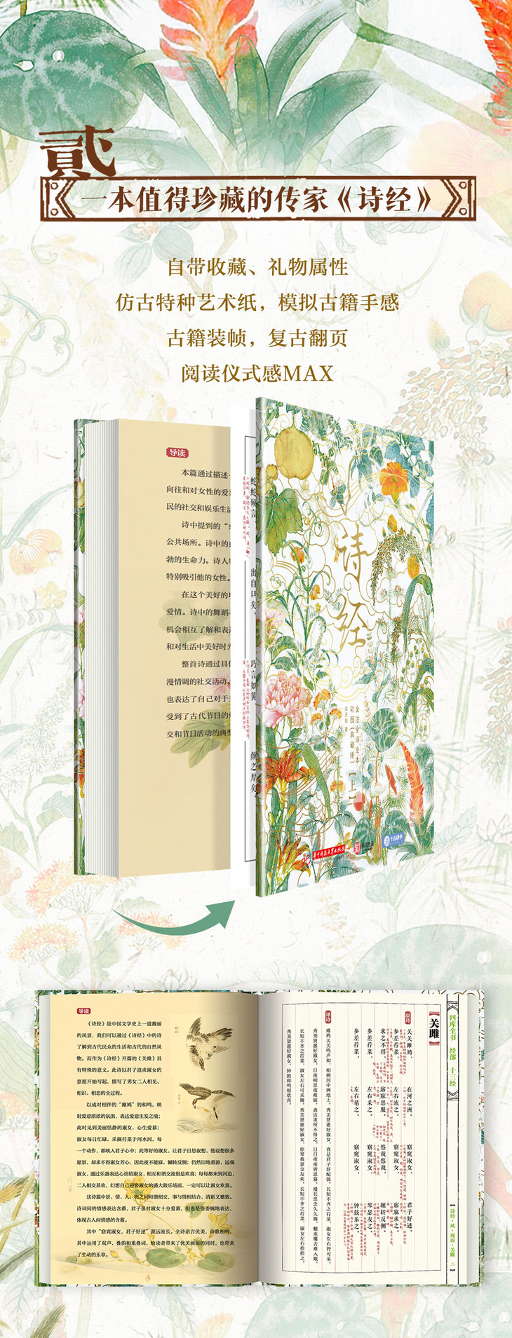 【新赠品藏书票&别册】《诗经》典藏版 | 全译全注 全本彩图 中国人的精神家底 上下2册