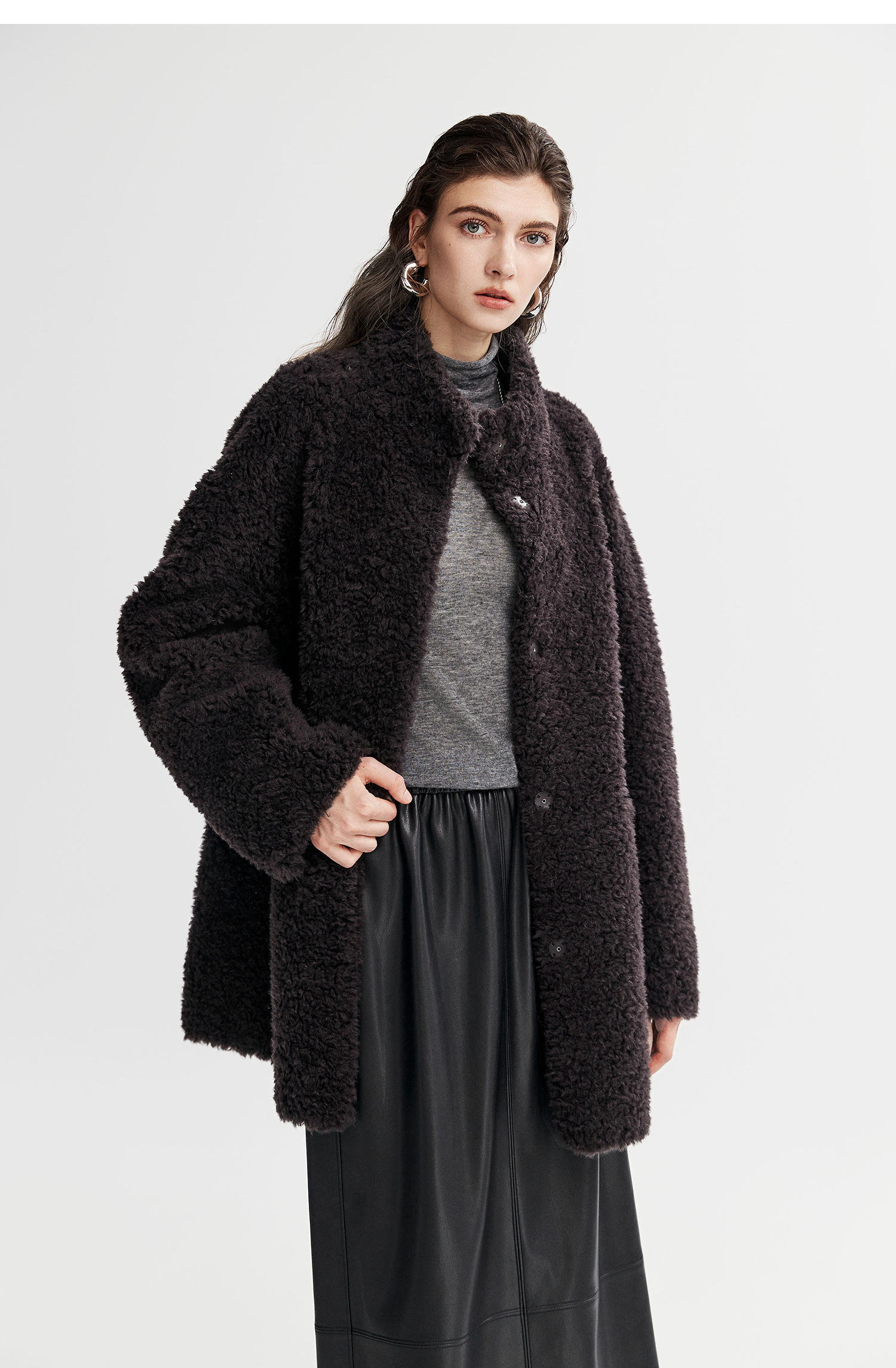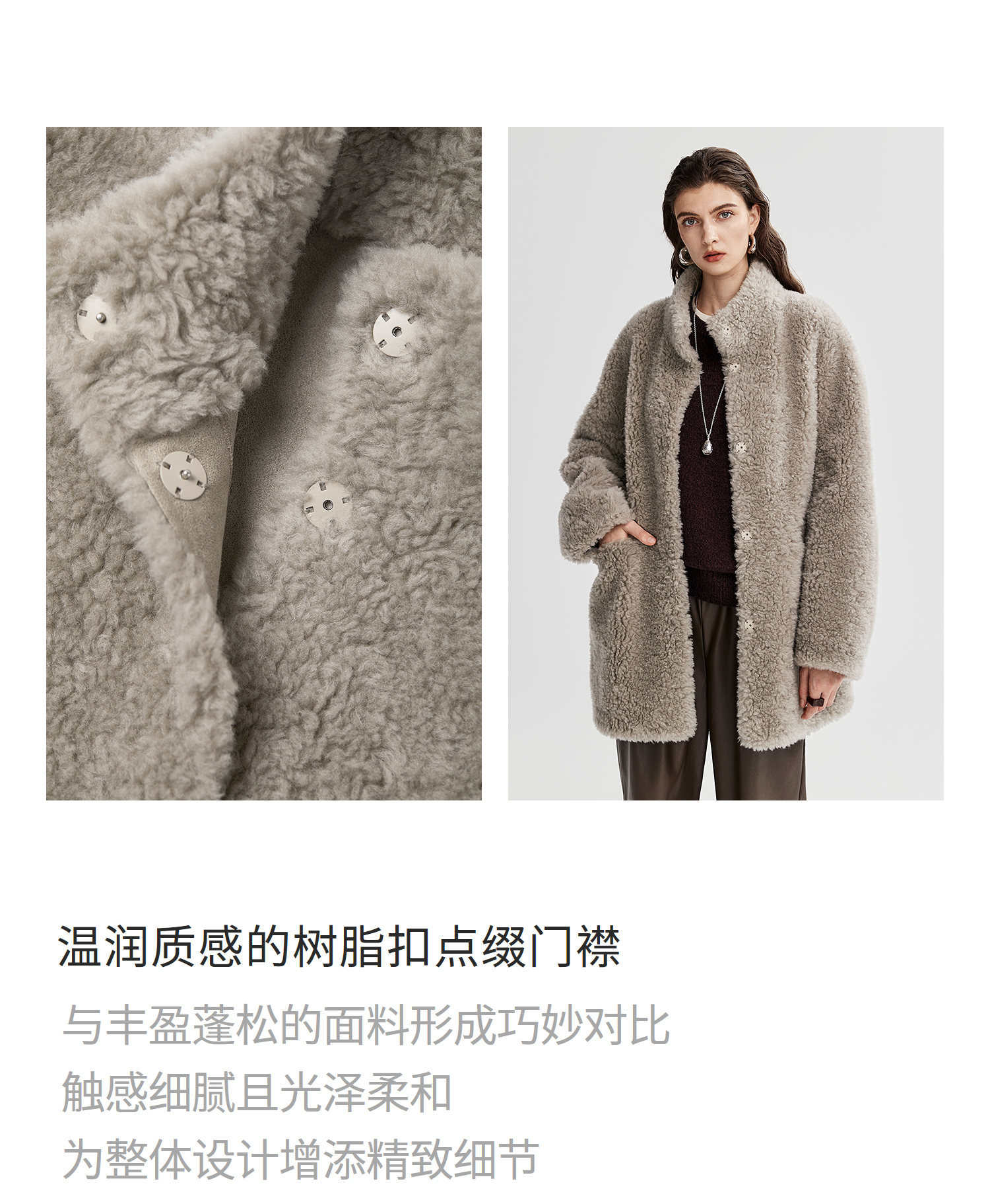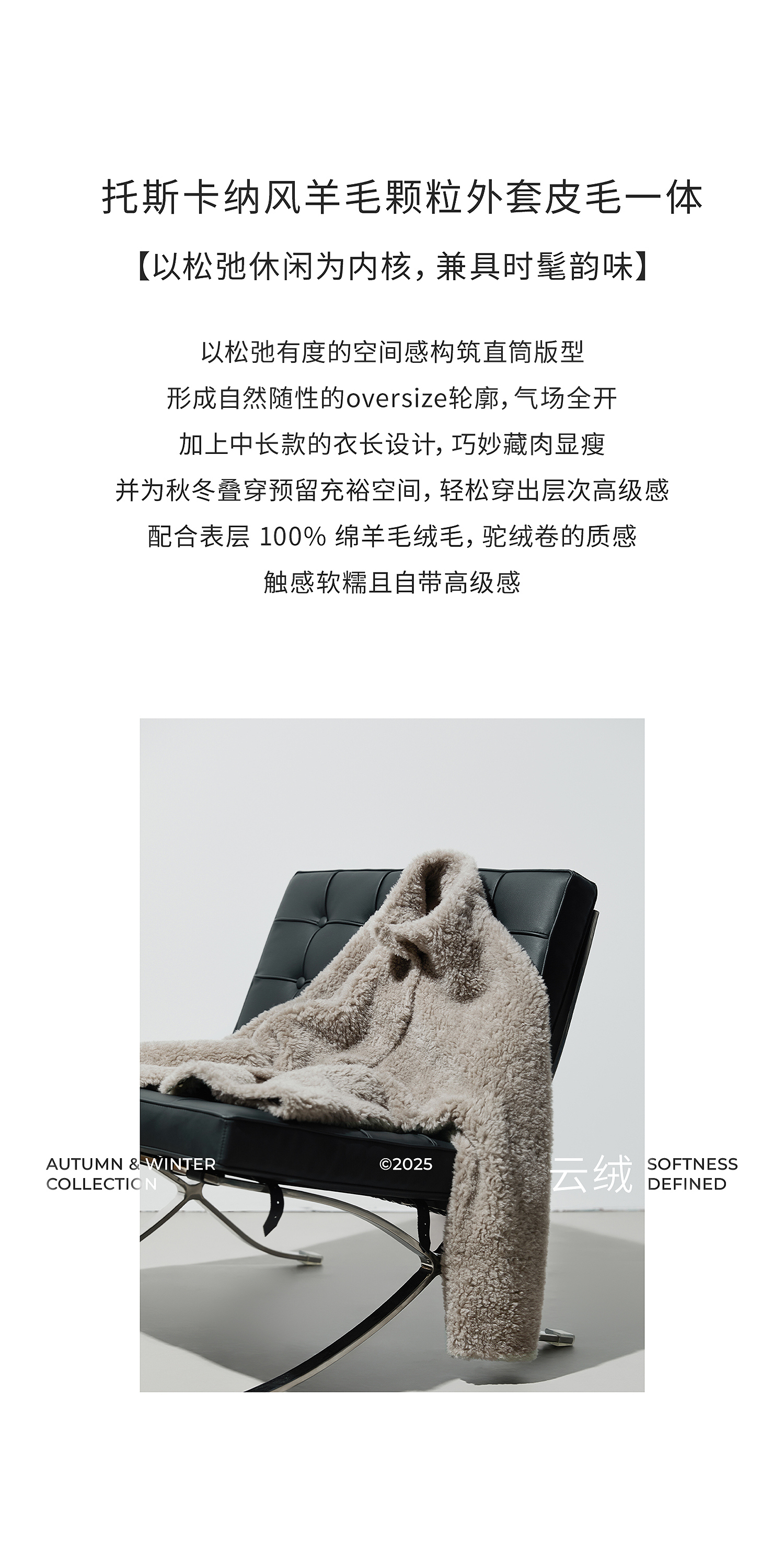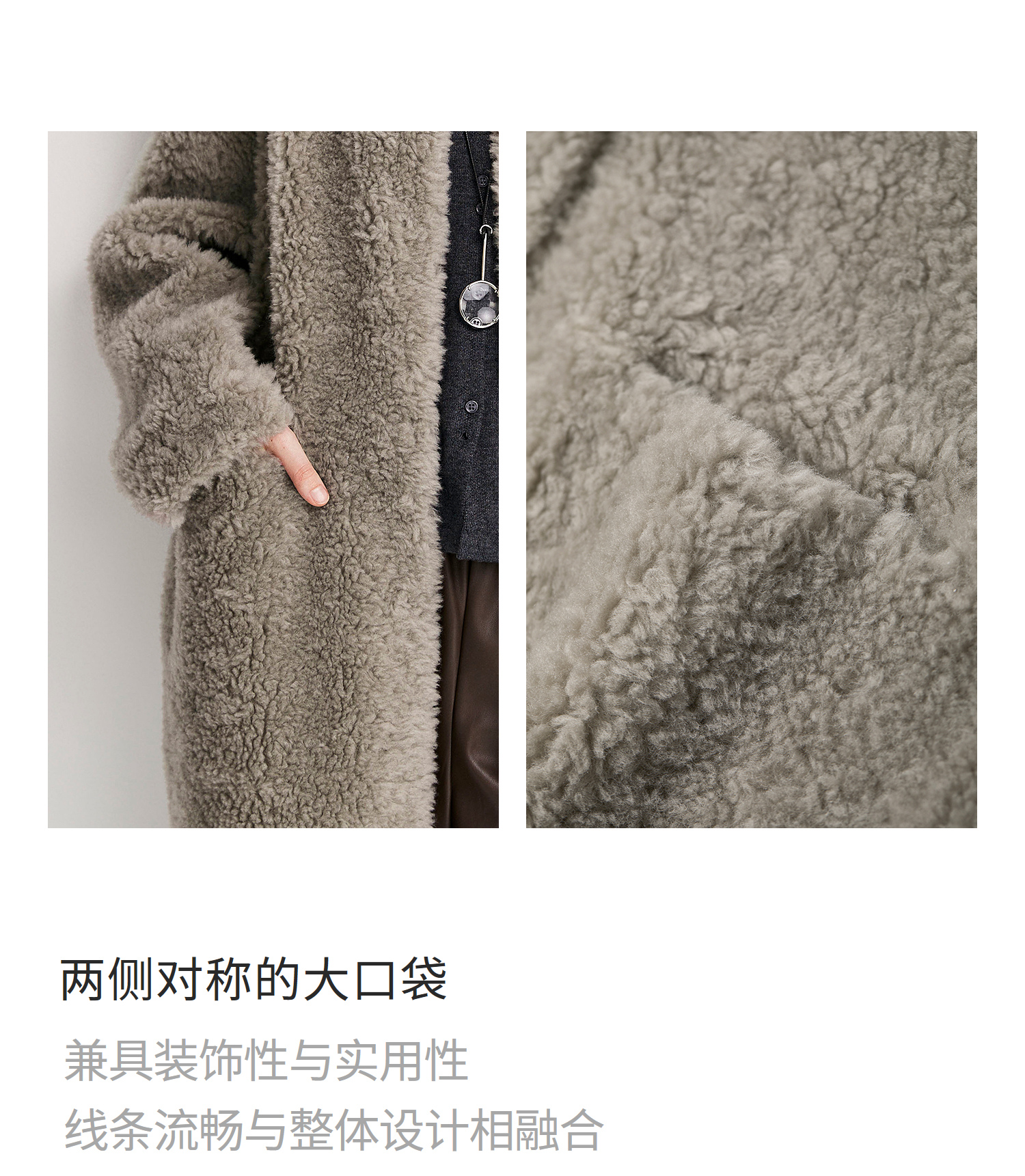 棉仓366666005-中长款驼绒卷皮毛一体外套