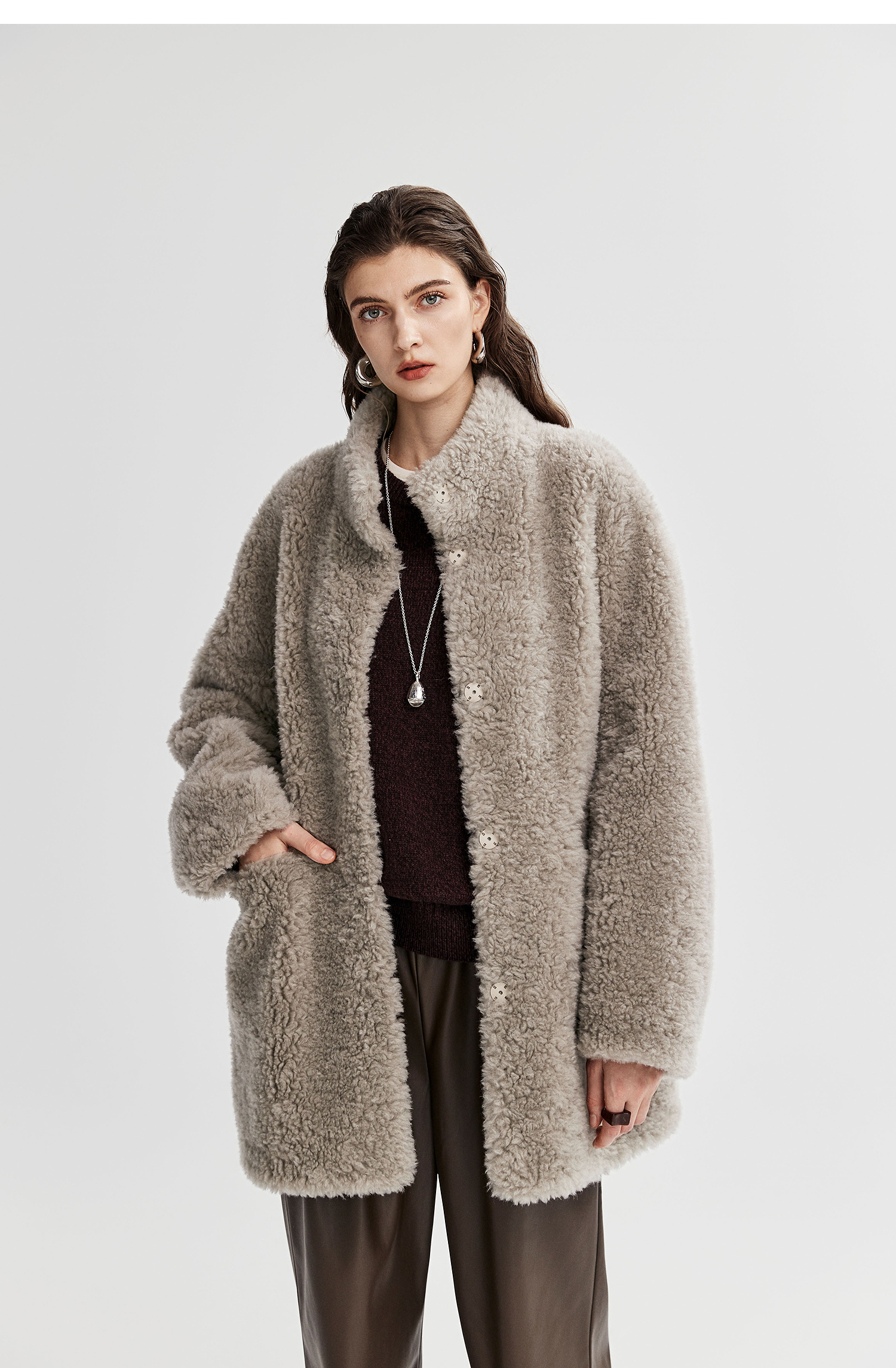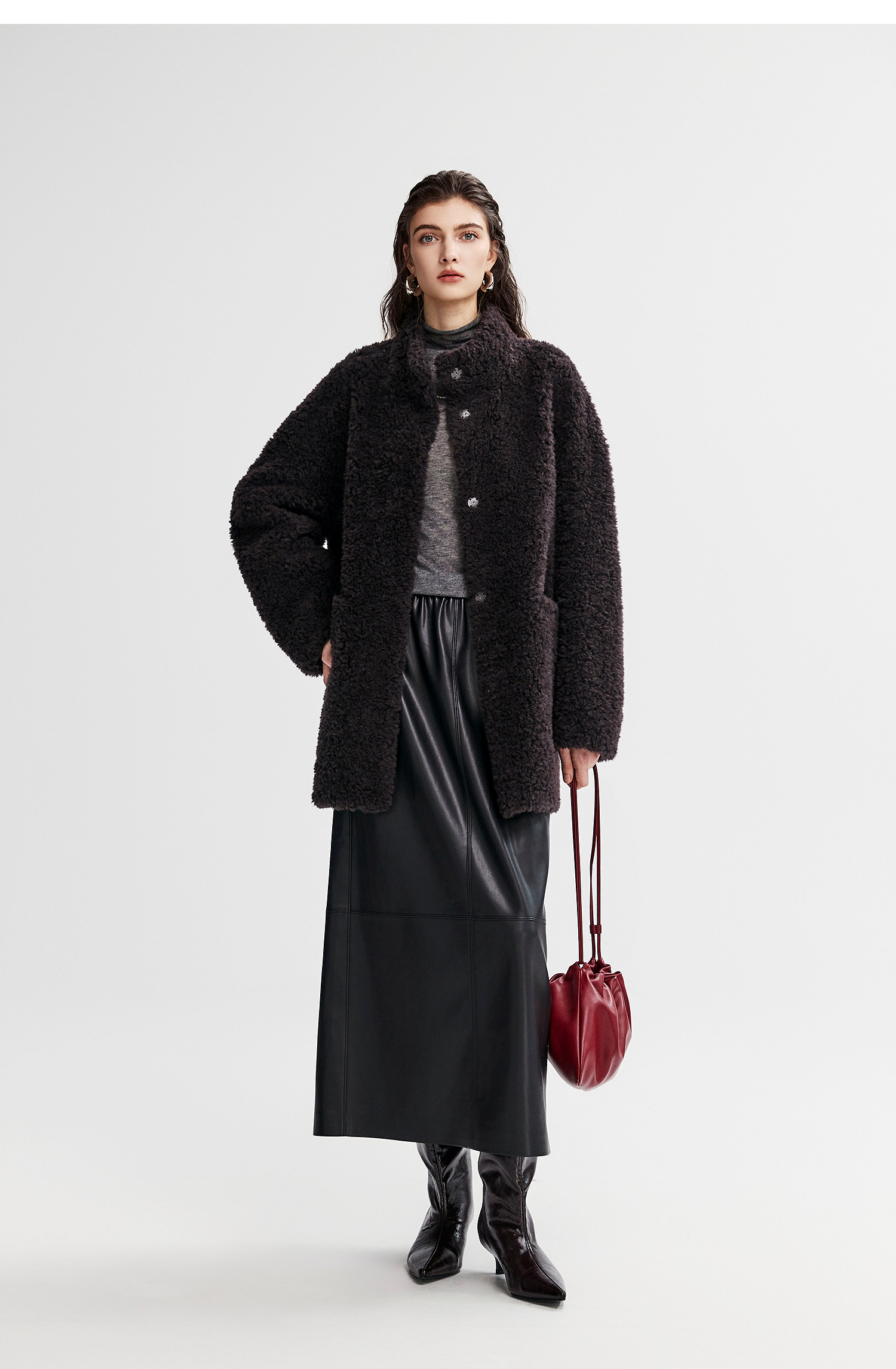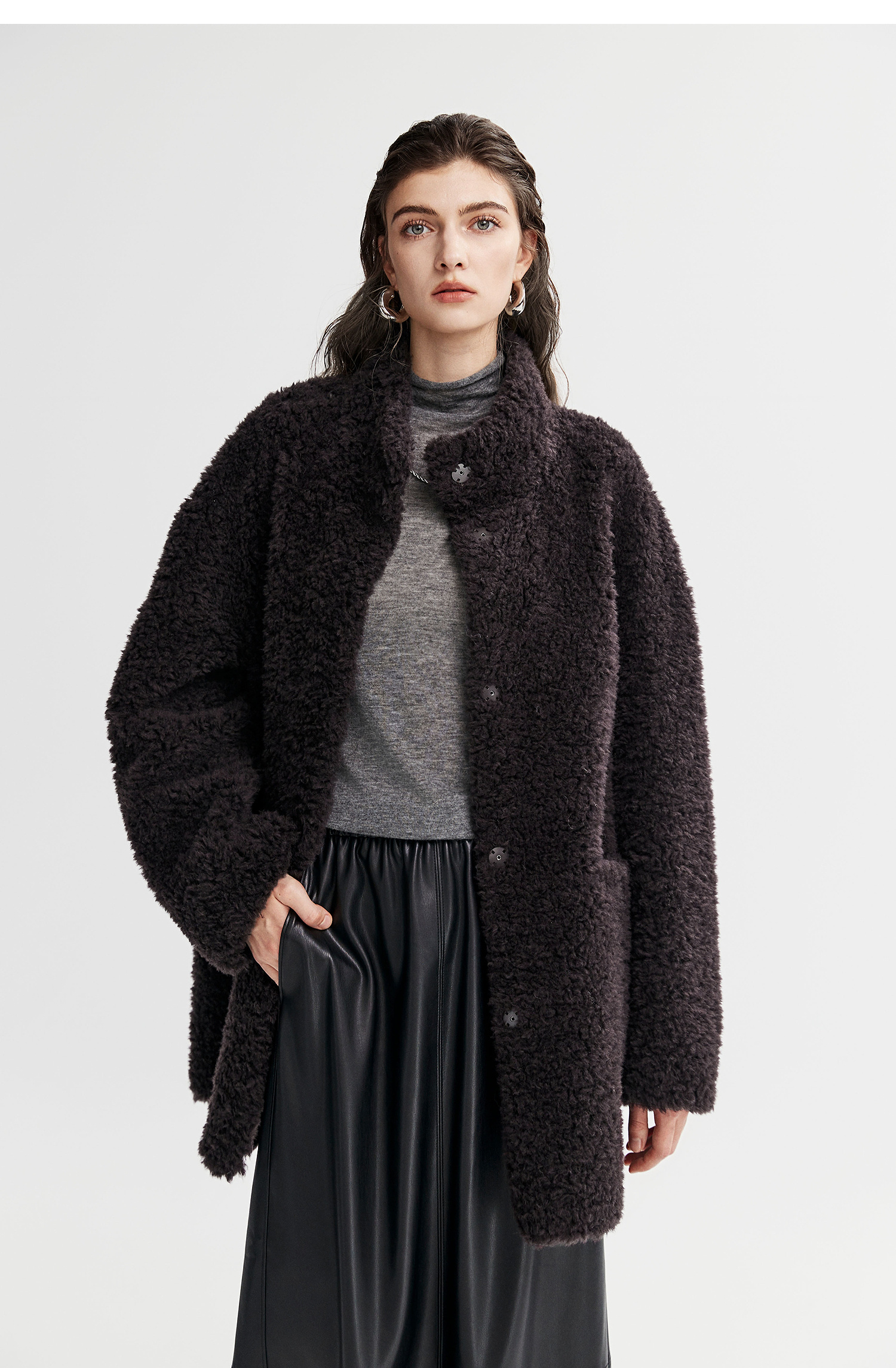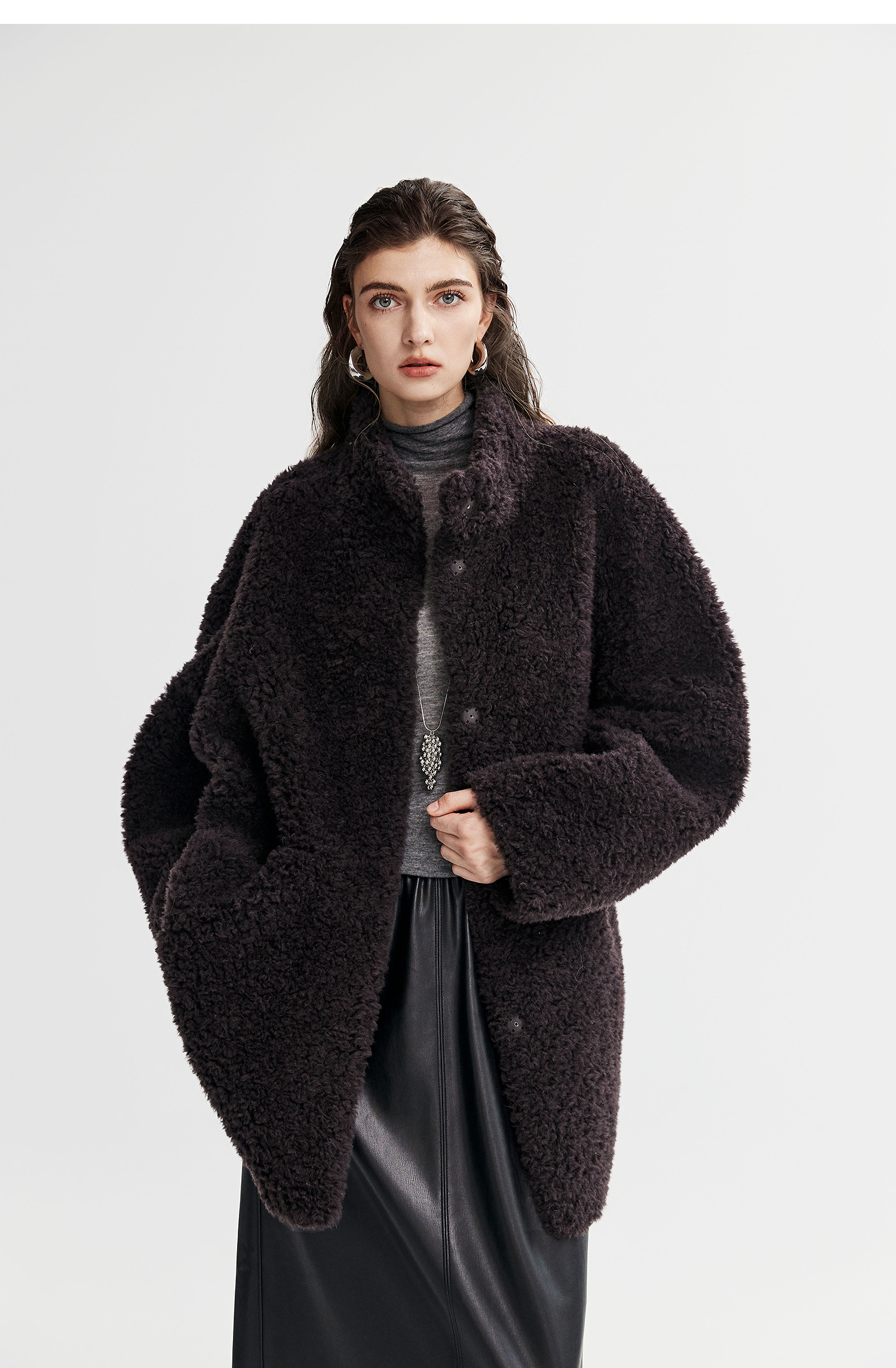 棉仓366666005-中长款驼绒卷皮毛一体外套