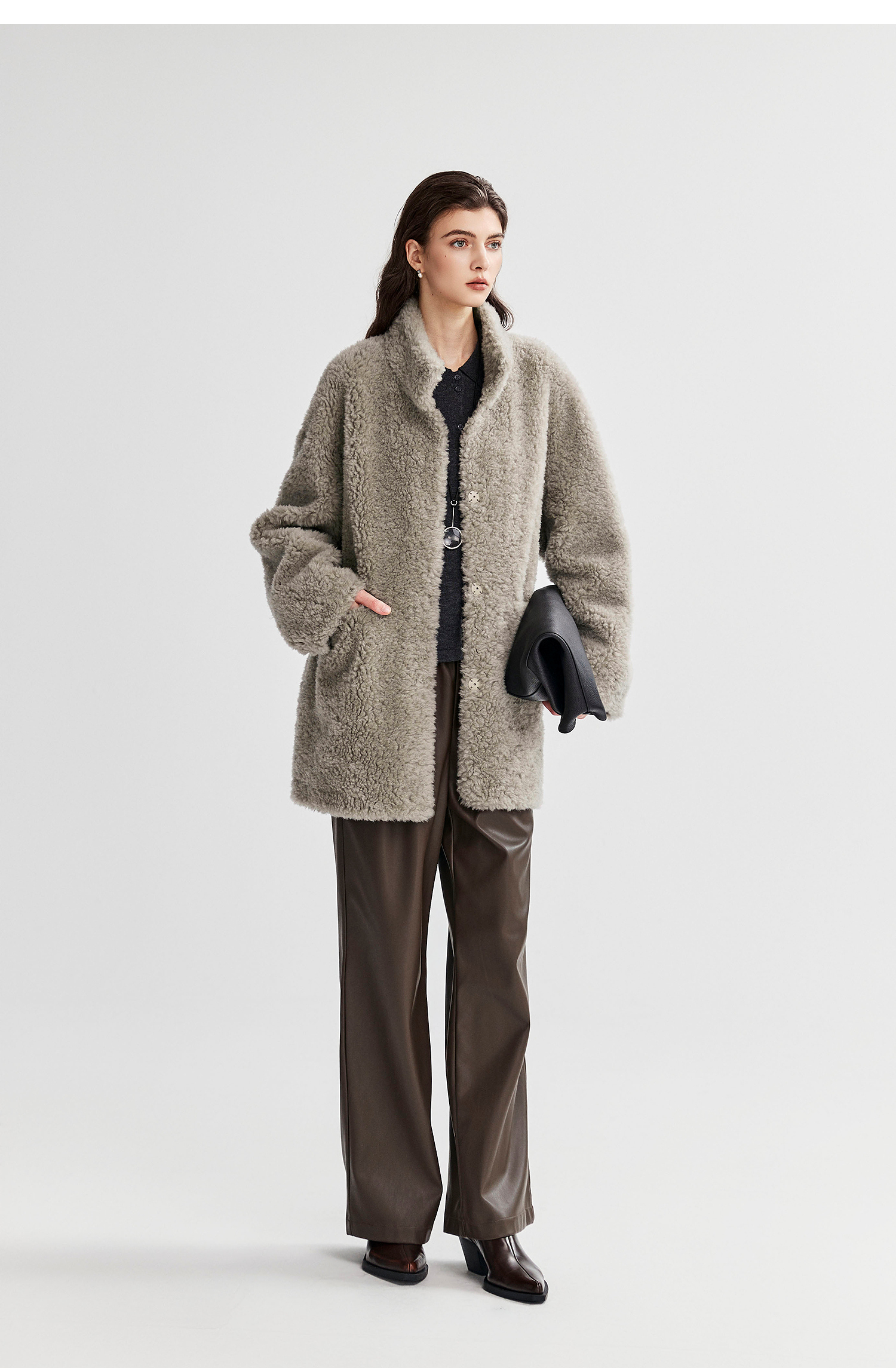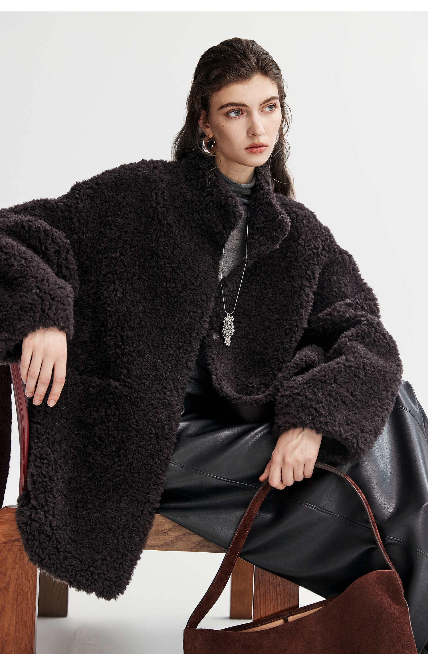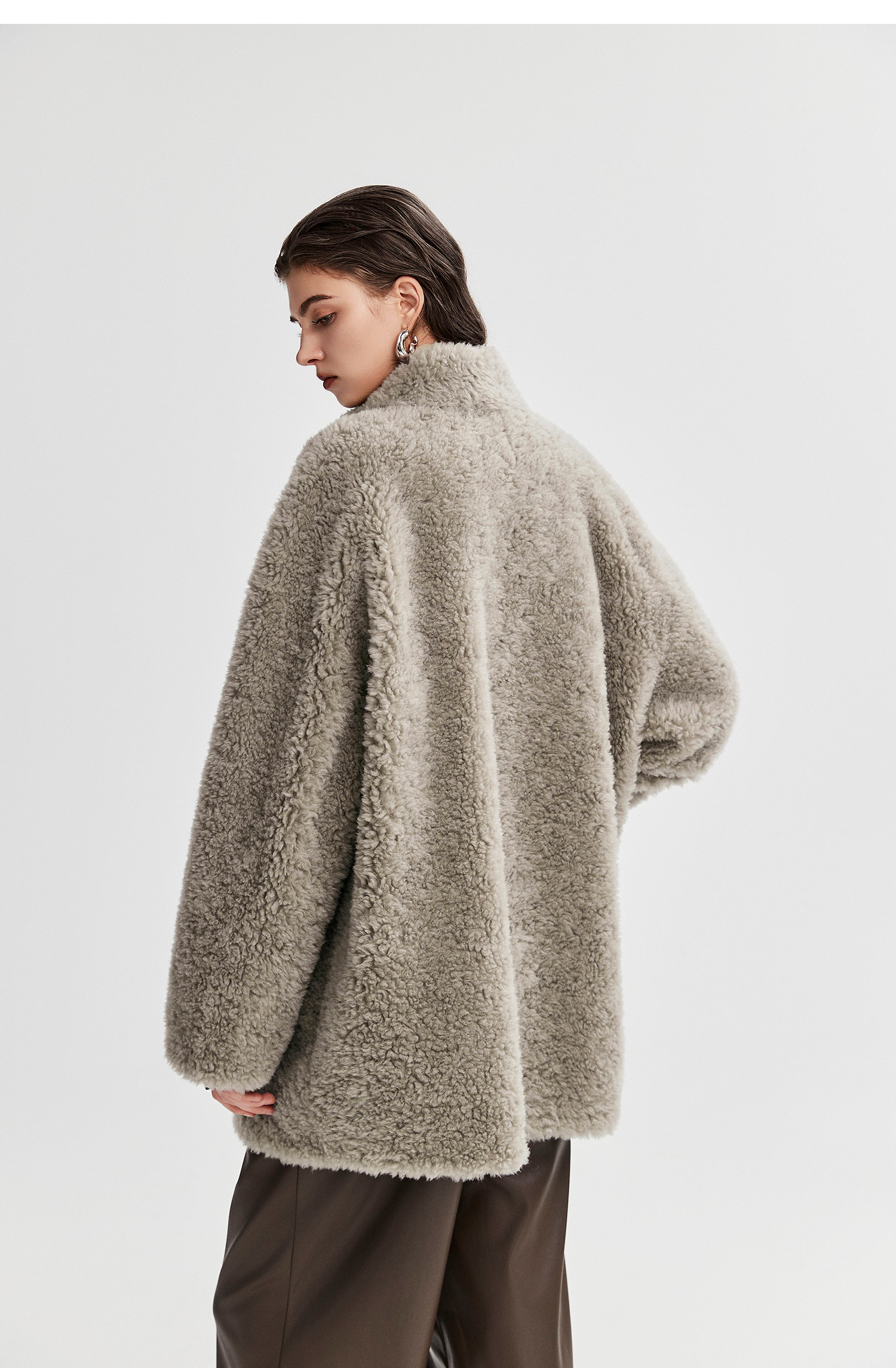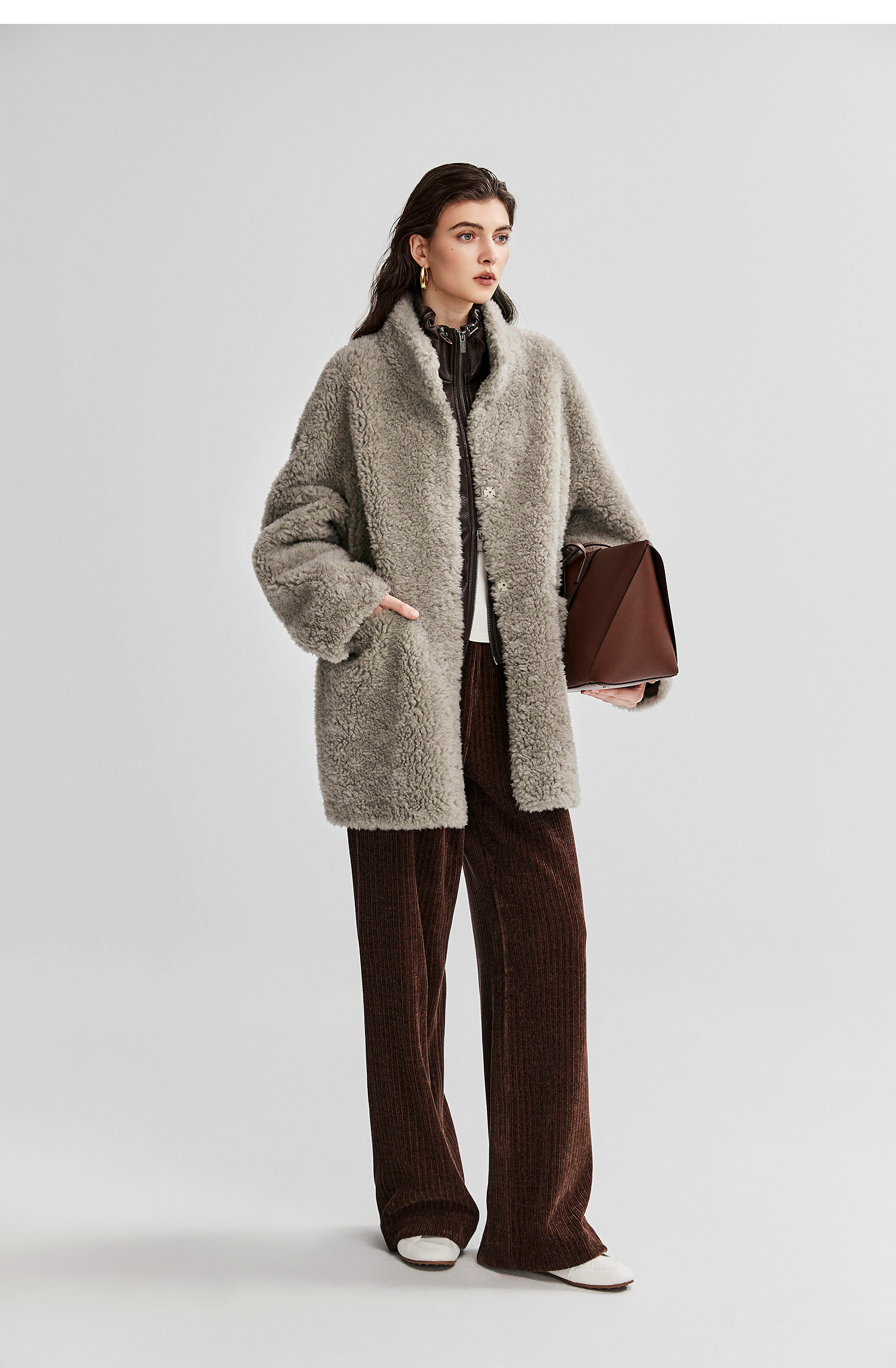 棉仓366666005-中长款驼绒卷皮毛一体外套
