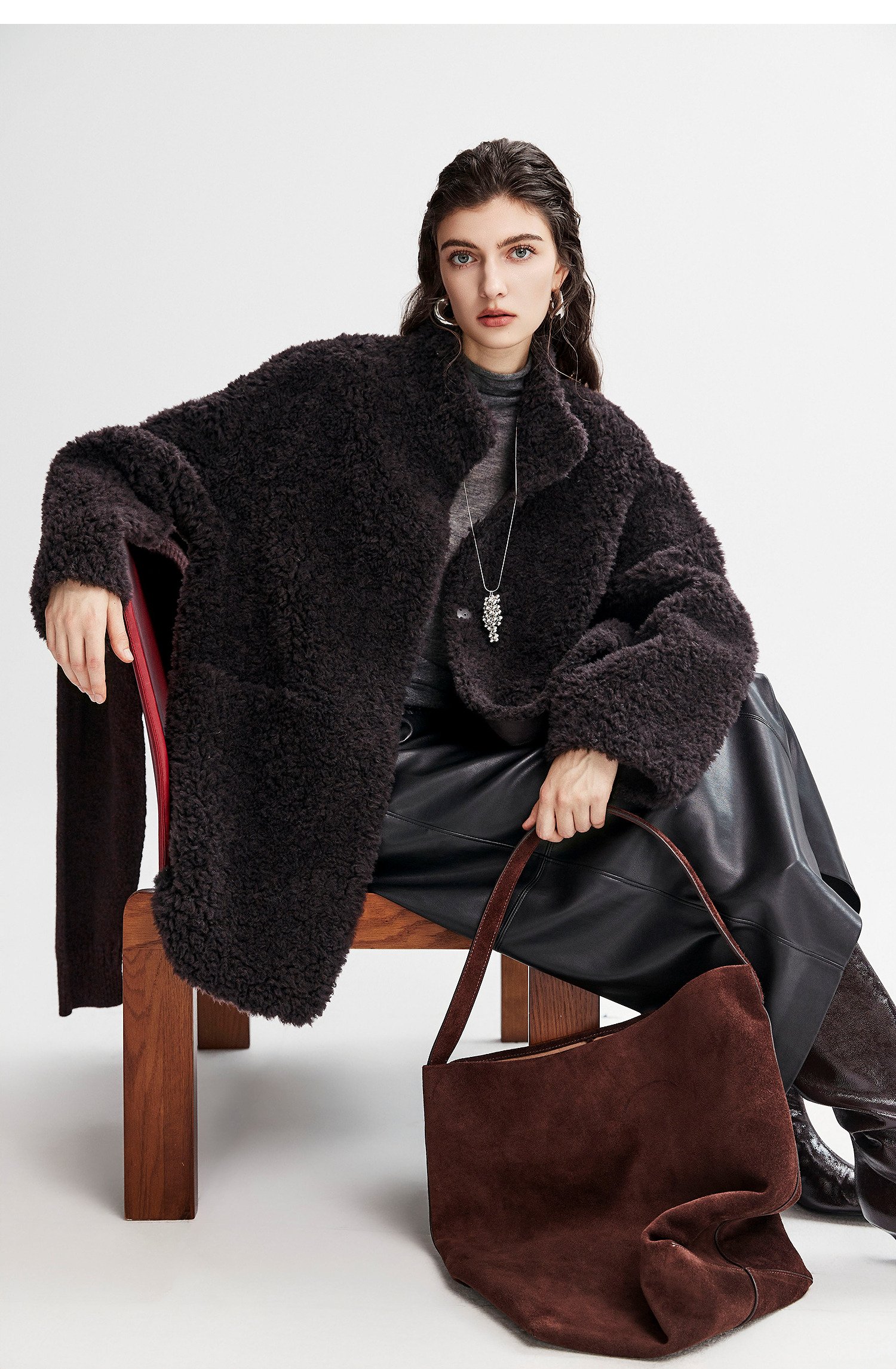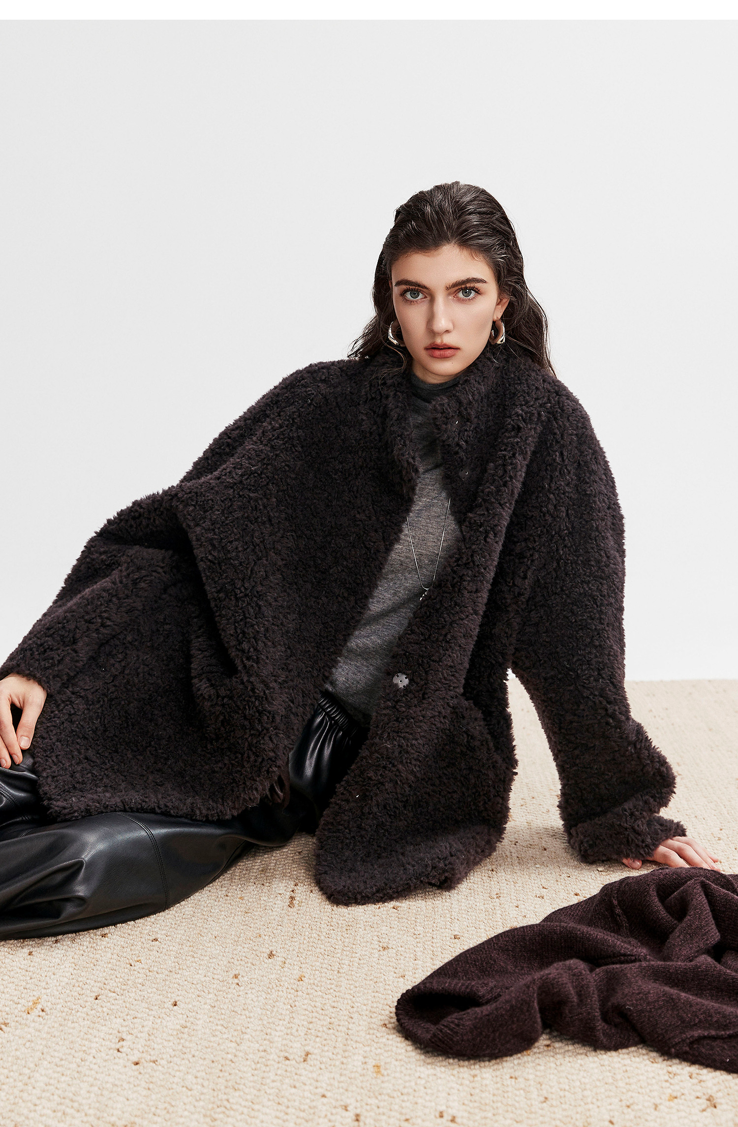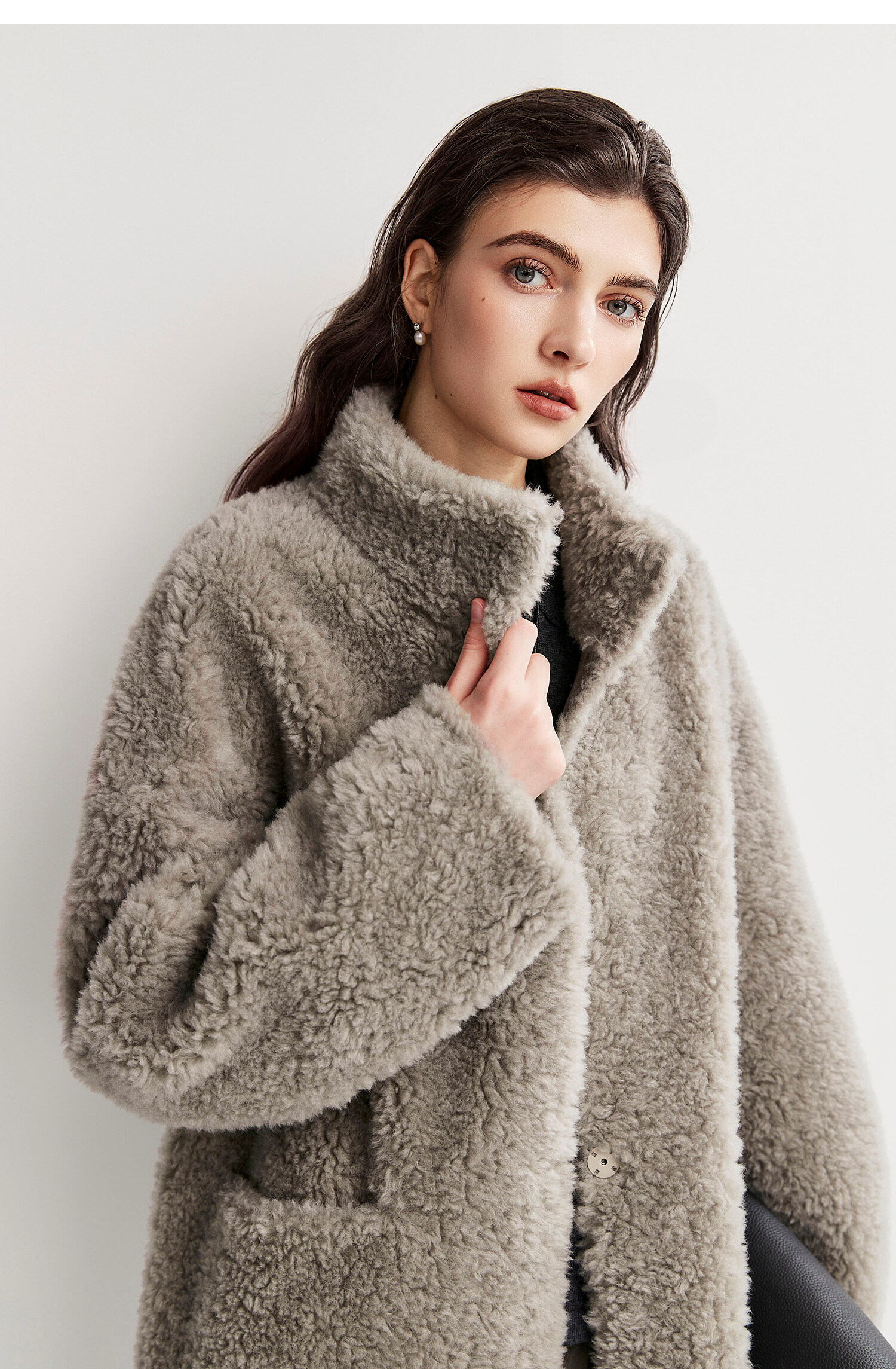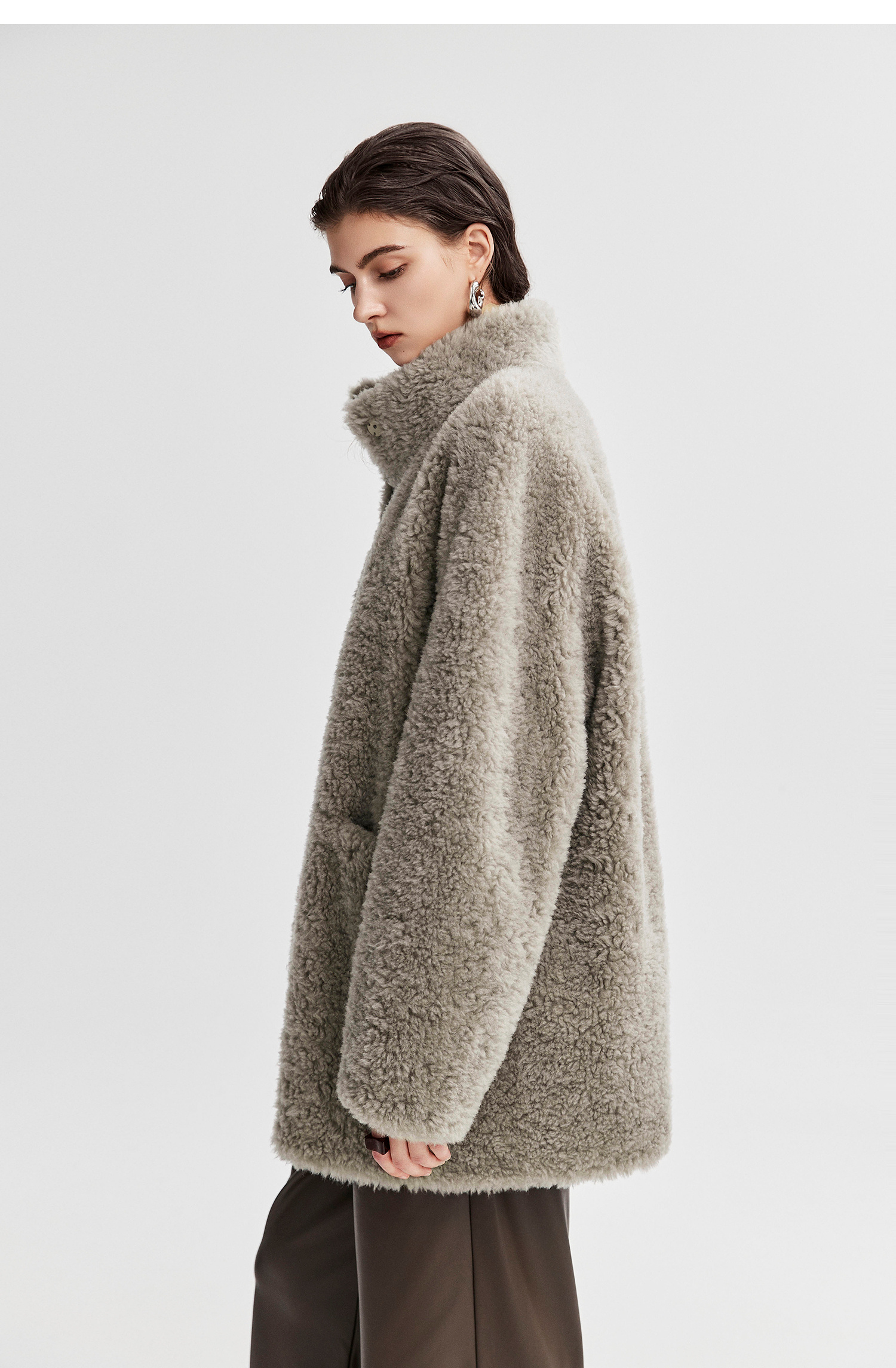 棉仓366666005-中长款驼绒卷皮毛一体外套