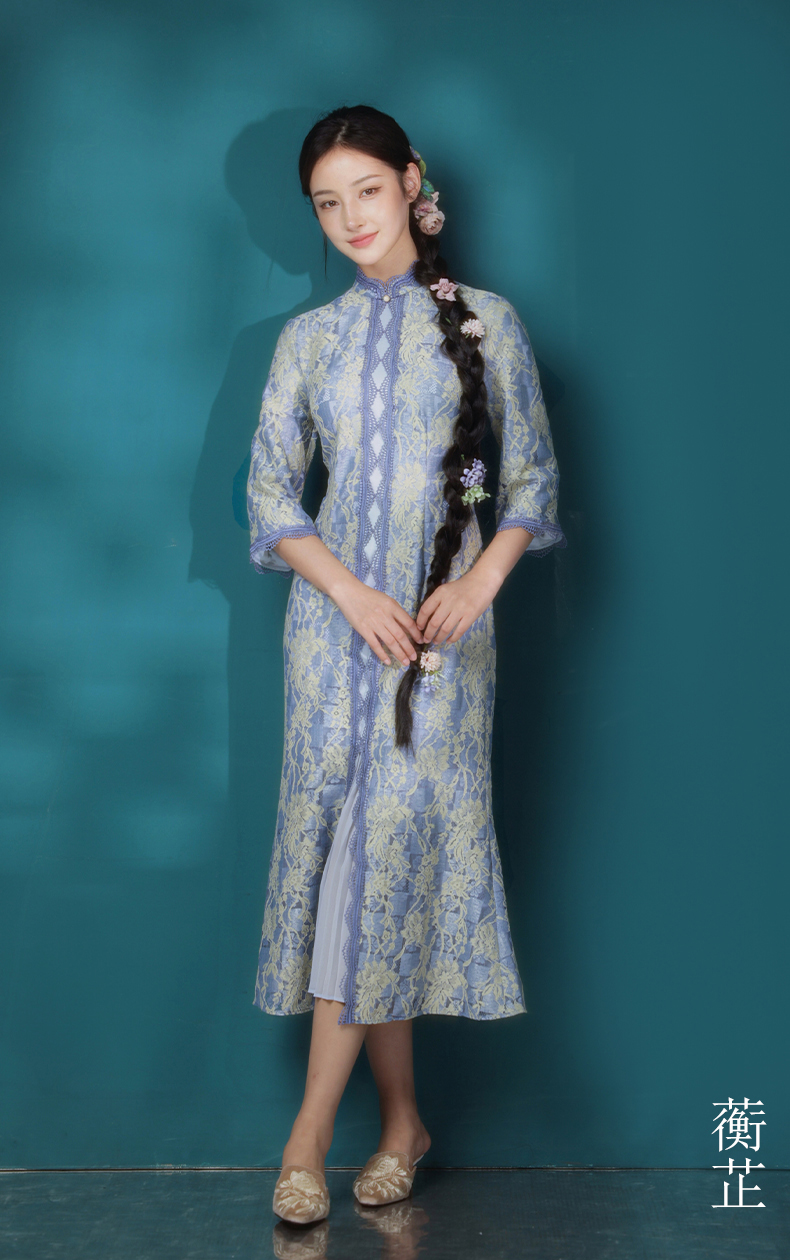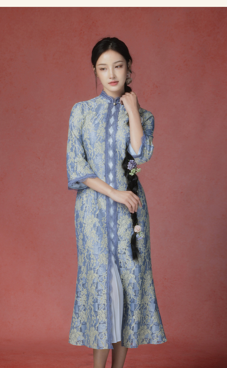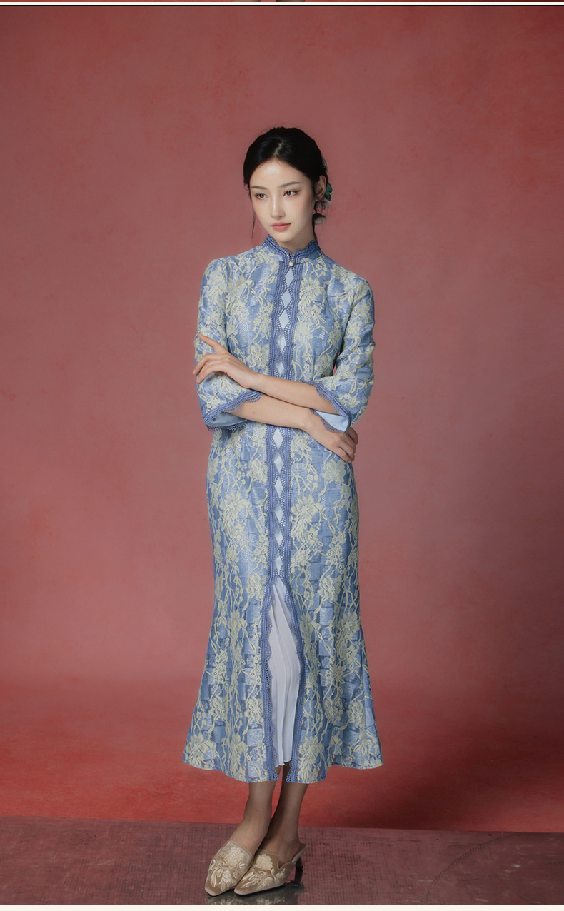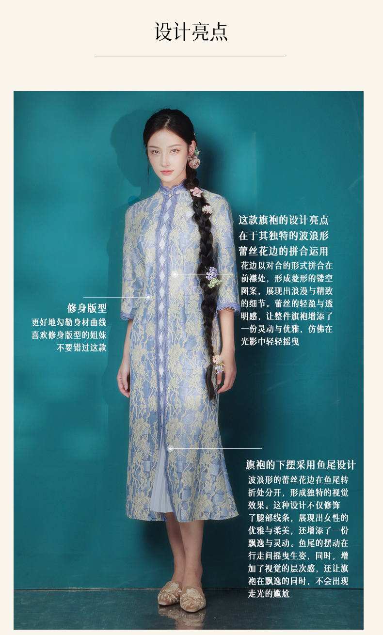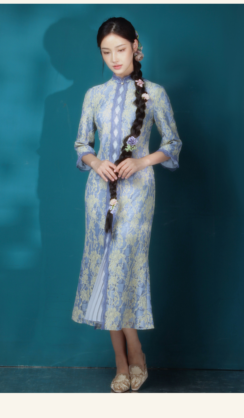 逸红颜蘅芷2025秋新款唯美浪漫宫廷复古蕾丝压褶改良鱼尾旗袍裙女