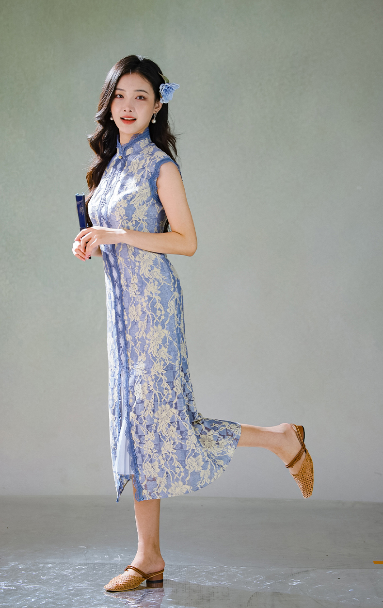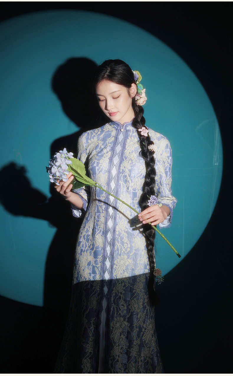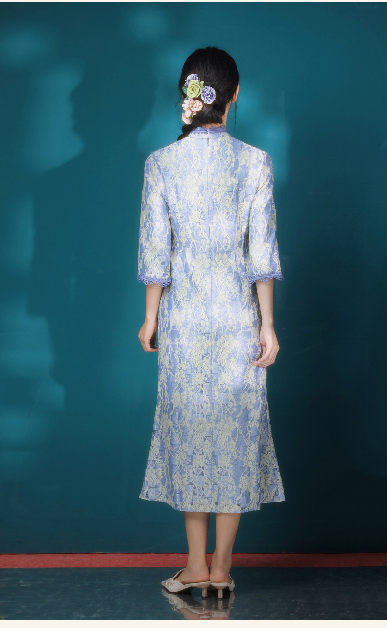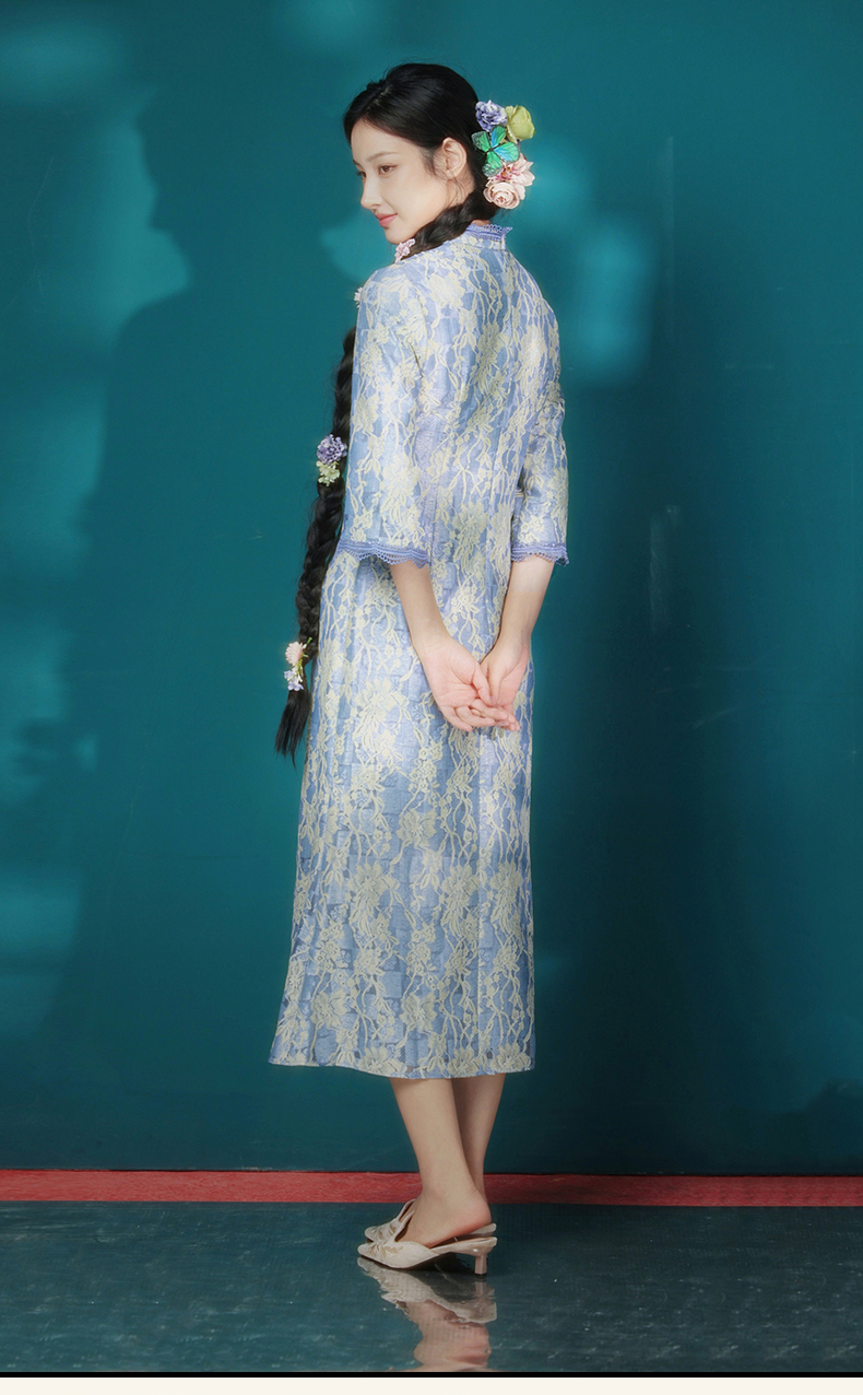 逸红颜蘅芷2025秋新款唯美浪漫宫廷复古蕾丝压褶改良鱼尾旗袍裙女